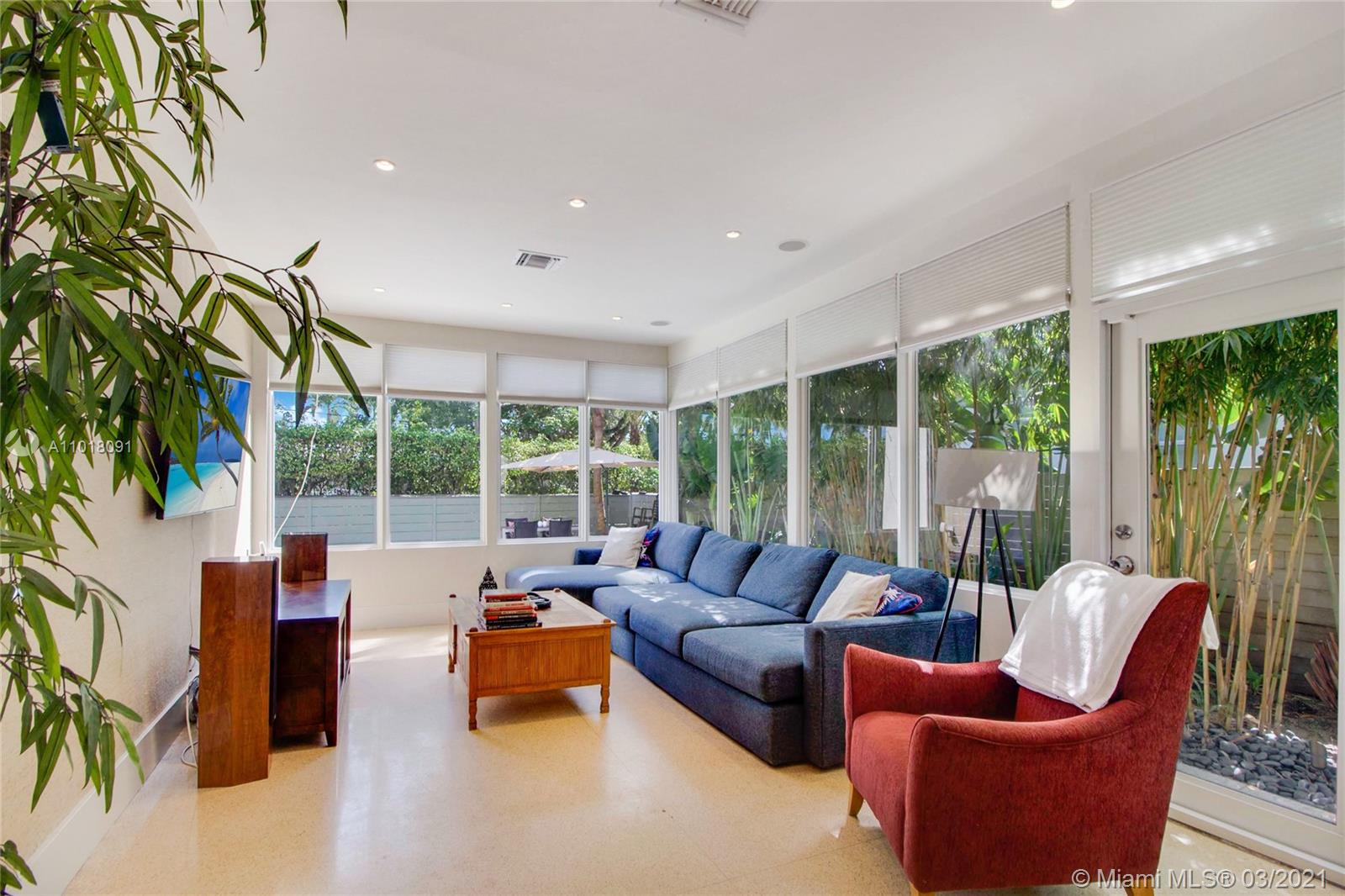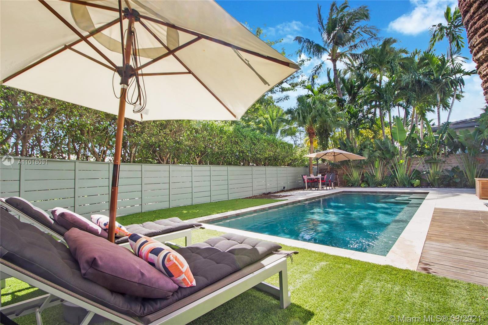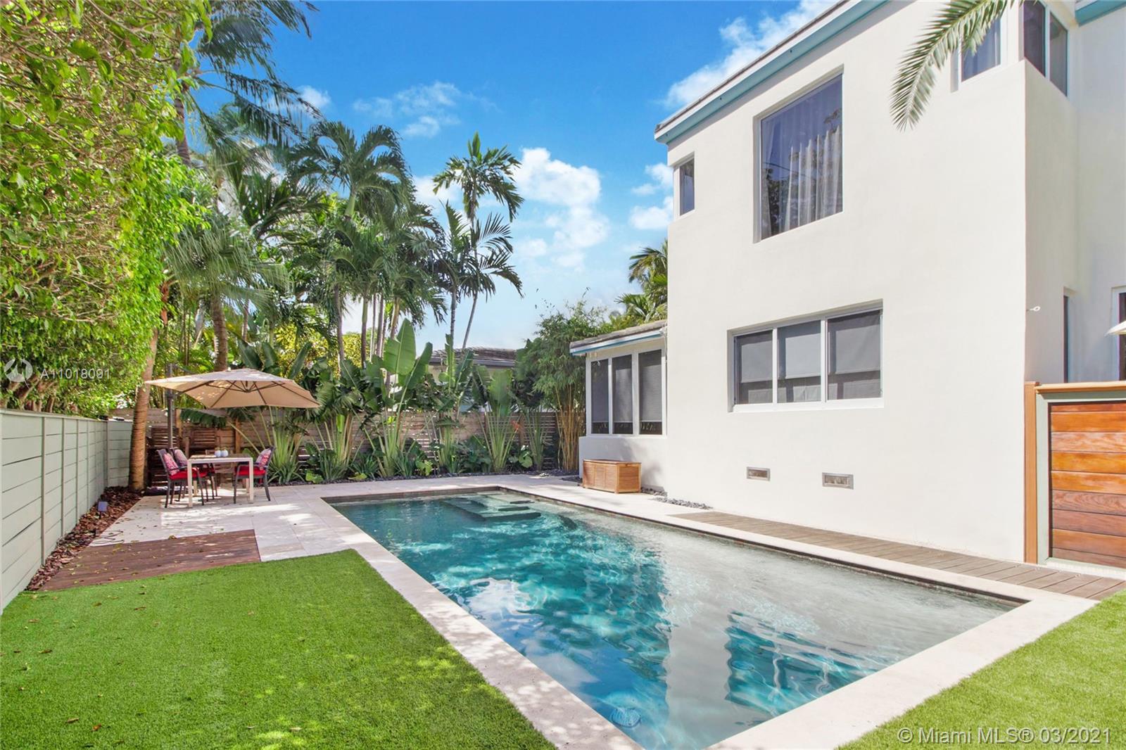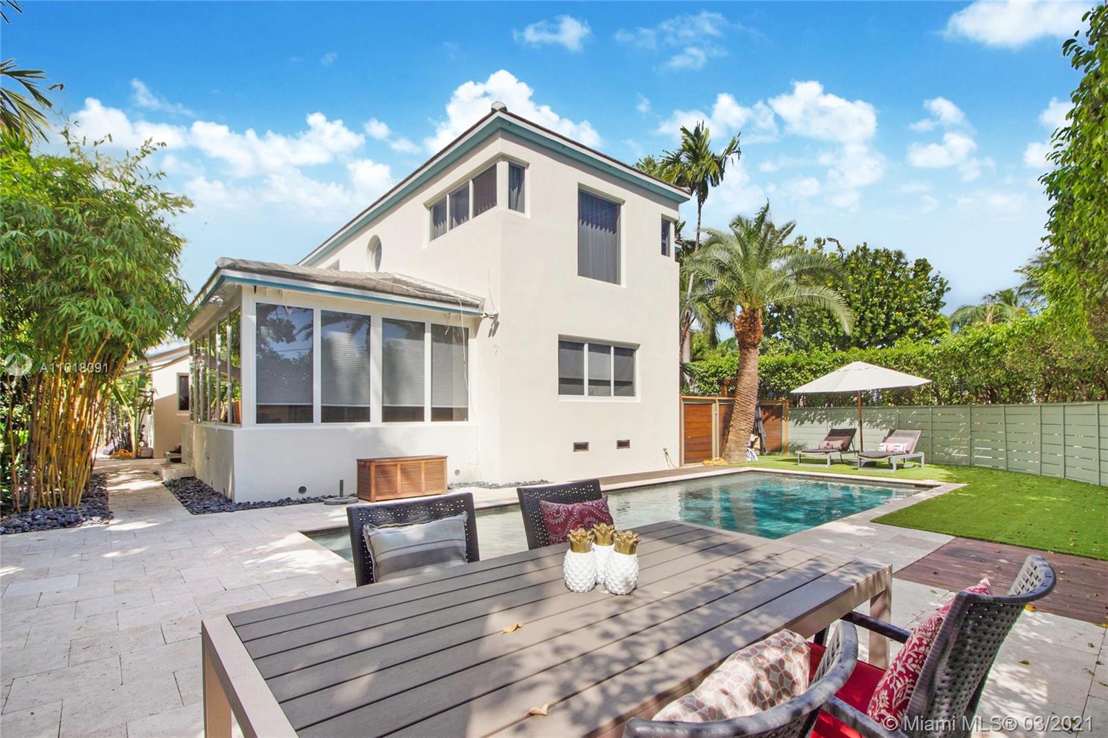 This fully renovated and meticulously upgraded 4 bedroom pool home is located on one of only a handful of "flow-thru" corner lots in Miami Beach. Tons of natural light in every room! Professionally manicured, the outside space includes a fully gated and beautifully landscaped yard, an oversized salt water pool, lush tropical trees, retractable awnings, and a BBQ area. Impact windows throughout. New roof, custom drapes and blackout shades, new kitchen, fully remodeled bathrooms, master bath with tub and steam shower, upstairs wet bar, hardwood floors, and lots of custom detail. House also has a huge sunroom, an office, and a full sized laundry/storage room. Walking distance to the park, beach, golf course, and more. Click link for 3-D virtual tour. Call listing agent to schedule showing.
