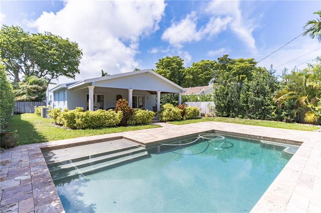 Wonderfully spacious 3 bedroom, 2 bathroom family home overlooking a tranquil pool and back yard area. This property has an added family room and master suite, making it very comfortable for a family. Wood cabinets, large kitchen Island with bar seating, updated bathrooms, wood floors throughout. Outside offers an expansive pool with a large covered patio and outdoor kitchen. Beautiful tree lined street with nice surrounding homes. Walk to Fresh Market and Flagler Village. Minutes to the shops and restaurants of Las Olas and close to the beach. Sought after east side neighborhood. Comes with generator.