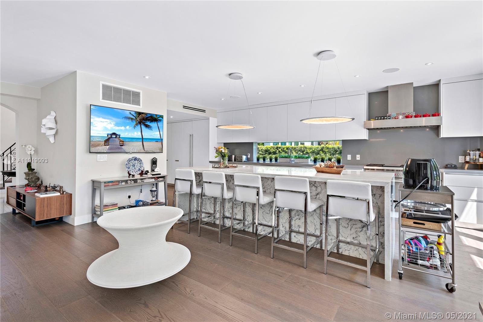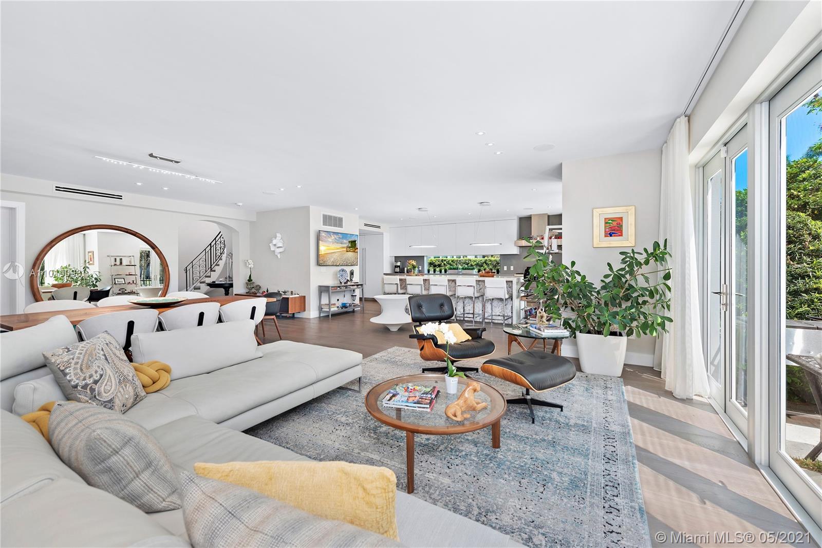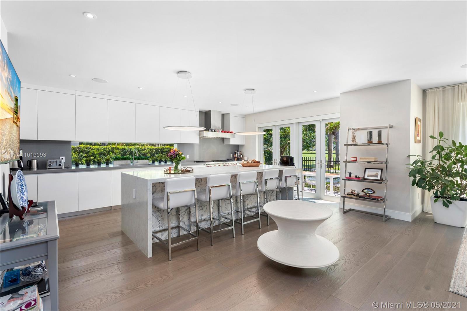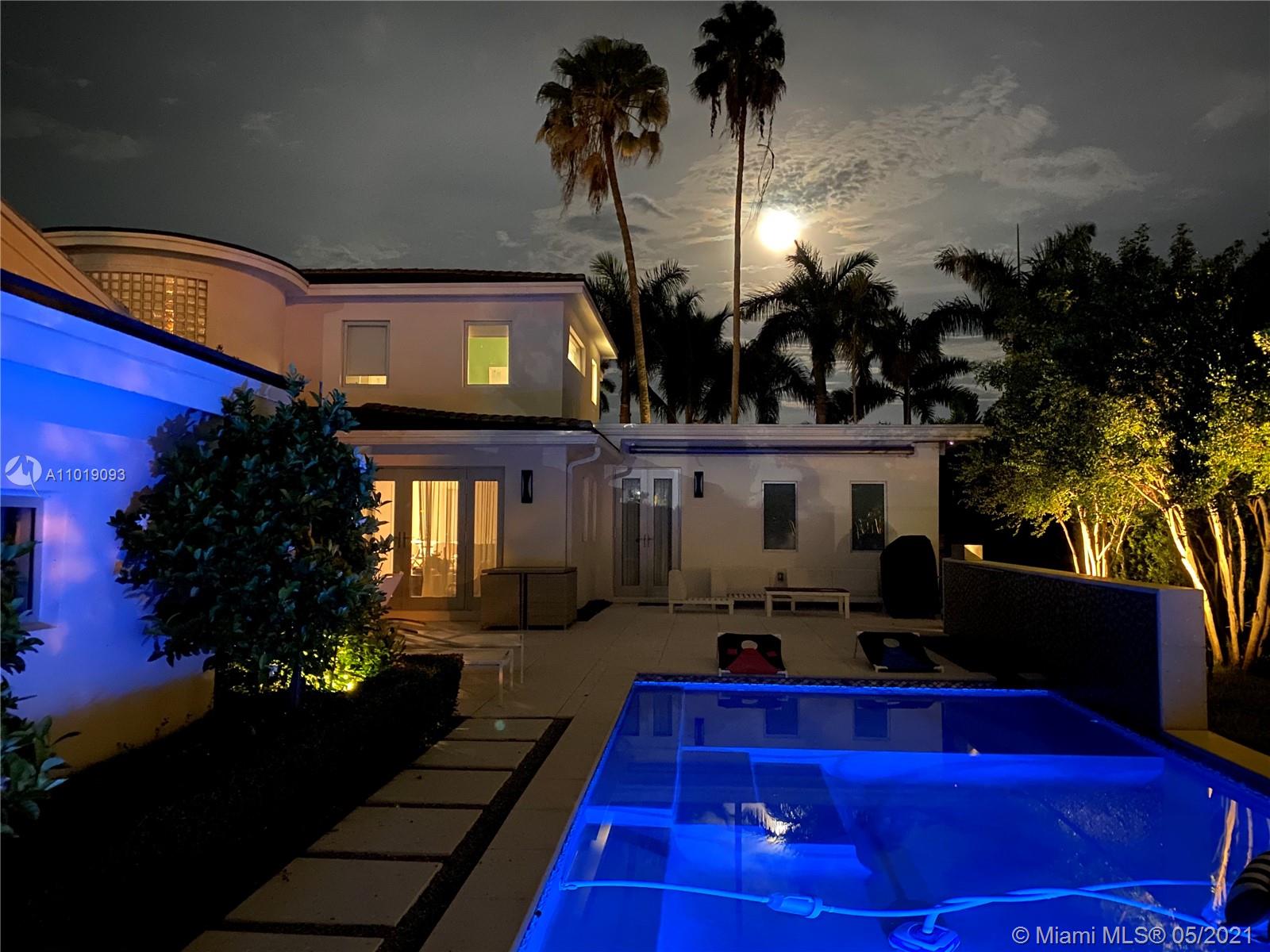Impeccable, modern and stylish two story home with expansive views of La Gorce Golf Course. Resort like feeling and completely renovated by architect Robert Gallagher, this property combines generous spaces with wonderful landscaping, heated salt water pool with waterfall feature and automatic pergola for outdoor gathering. The interior floor plan includes double entry foyer, with separate entrance for in laws/maids quarters, great room, family/media room and 2 separate covered garages. Principal room is located in the first level with private terrace facing the golf course and with a separate sitting area. Fabulous Intirium designed open kitchen with gas stove, wine cooler and Wolf and Sub Zero appliances complete the private lifestyle.