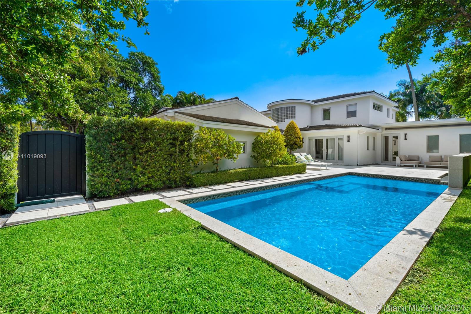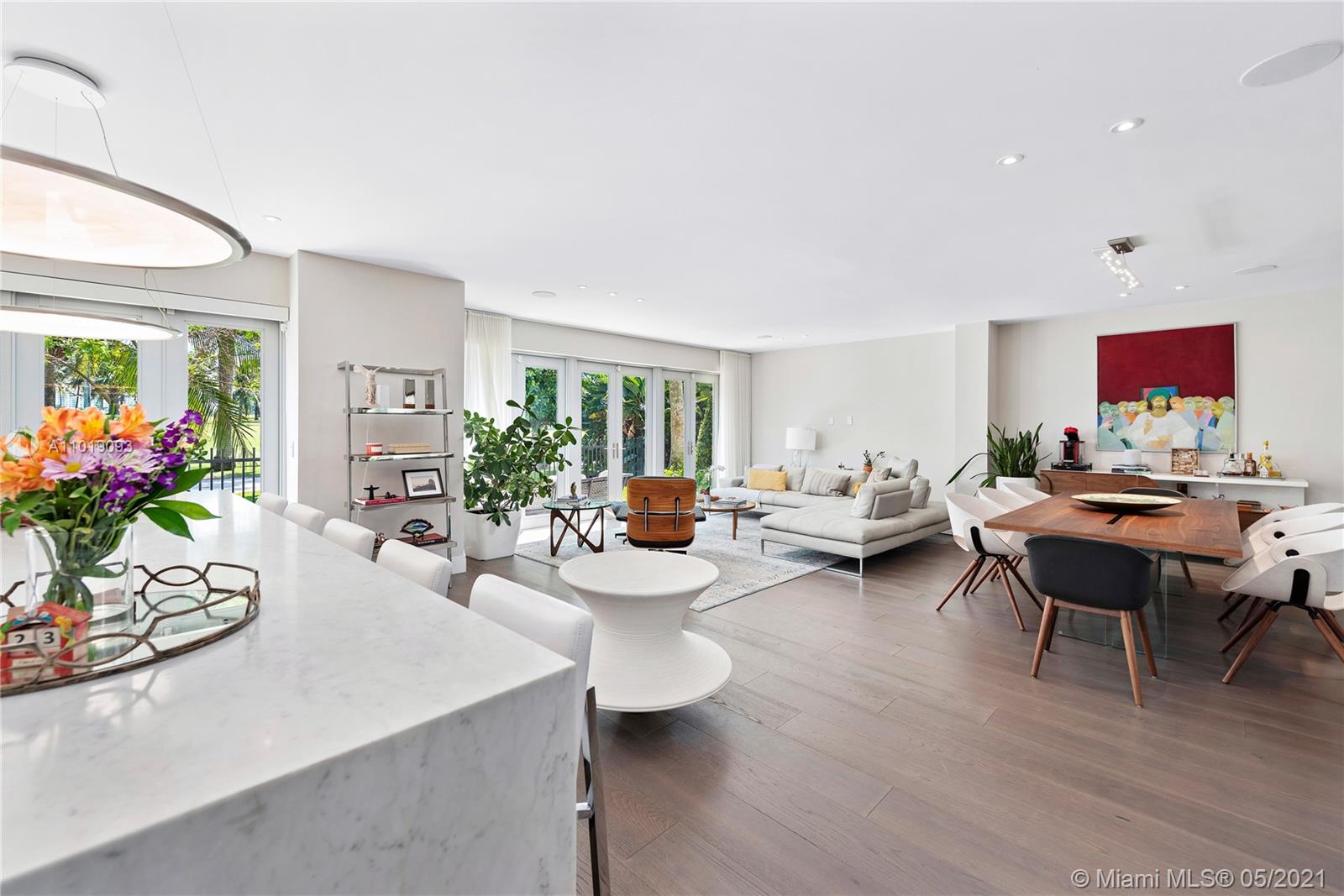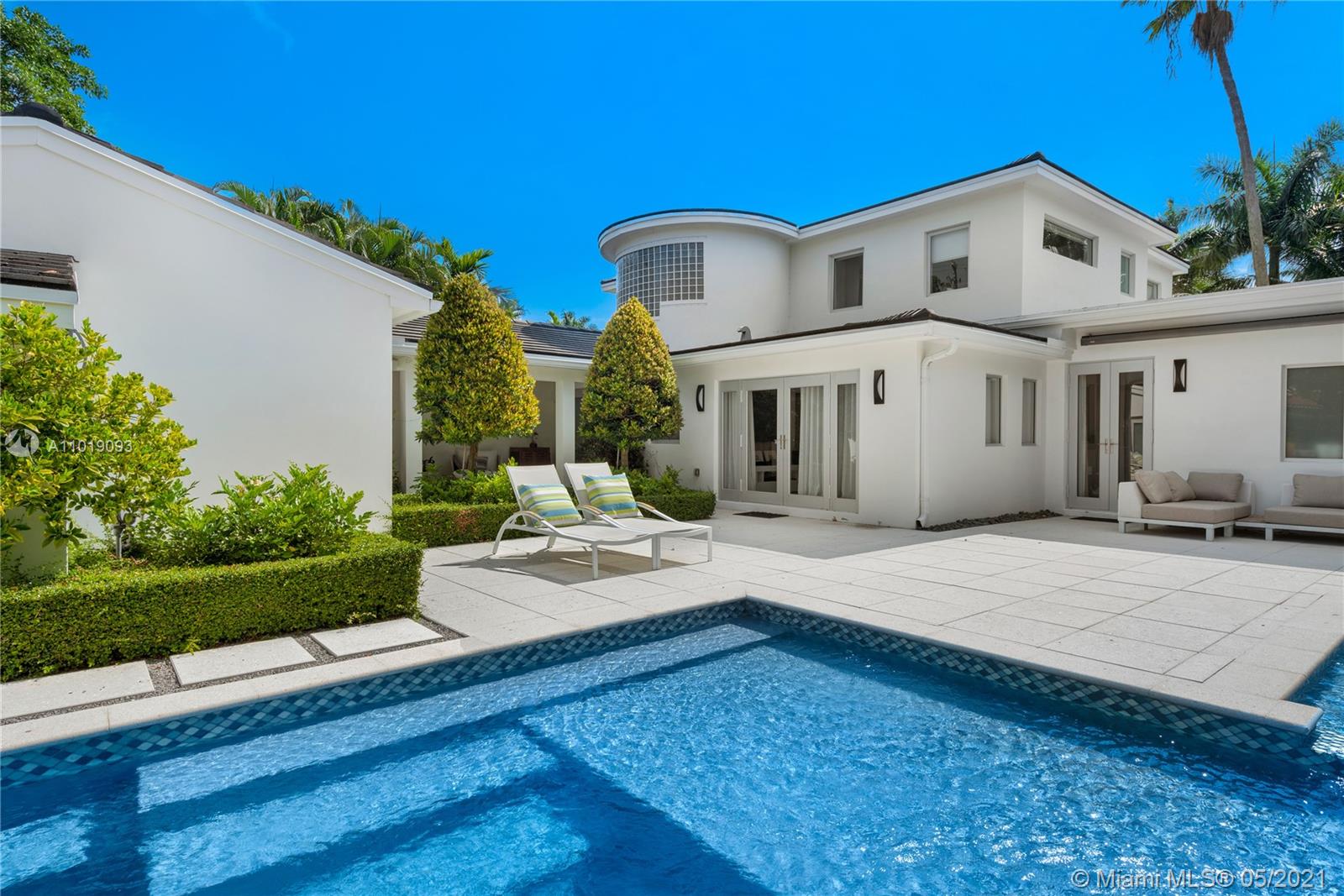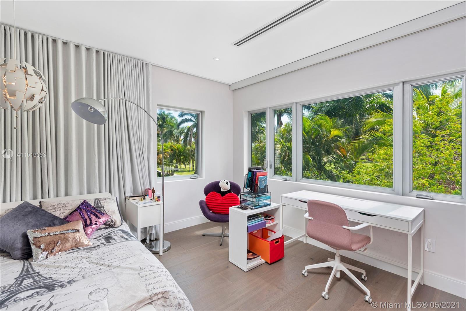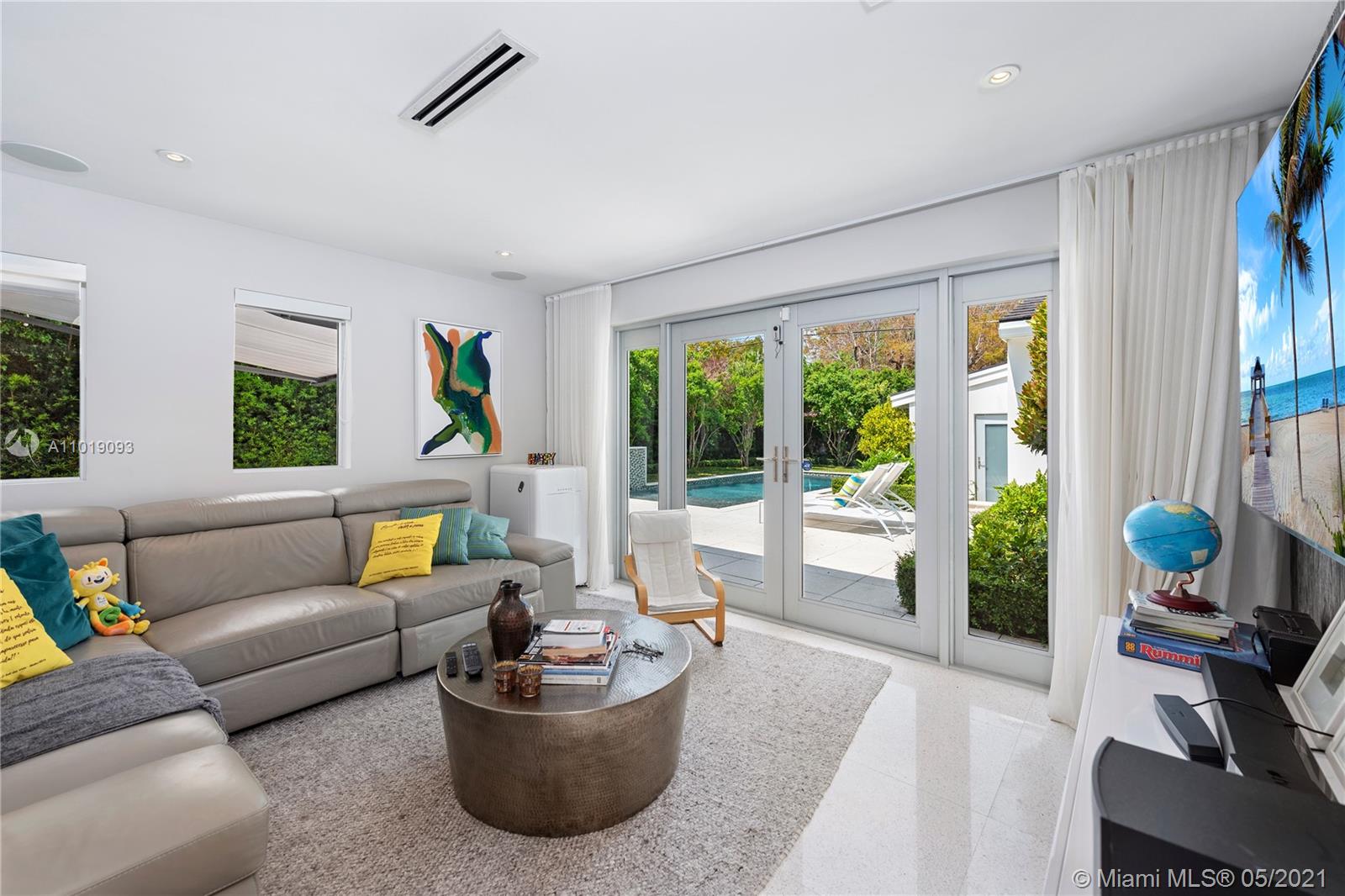 Impeccable, modern and stylish two story home with expansive views of La Gorce Golf Course. Resort like feeling and completely renovated by architect Robert Gallagher, this property combines generous spaces with wonderful landscaping, heated salt water pool with waterfall feature and automatic pergola for outdoor gathering. The interior floor plan includes double entry foyer, with separate entrance for in laws/maids quarters, great room, family/media room and 2 separate covered garages. Principal room is located in the first level with private terrace facing the golf course and with a separate sitting area. Fabulous Intirium designed open kitchen with gas stove, wine cooler and Wolf and Sub Zero appliances complete the private lifestyle.