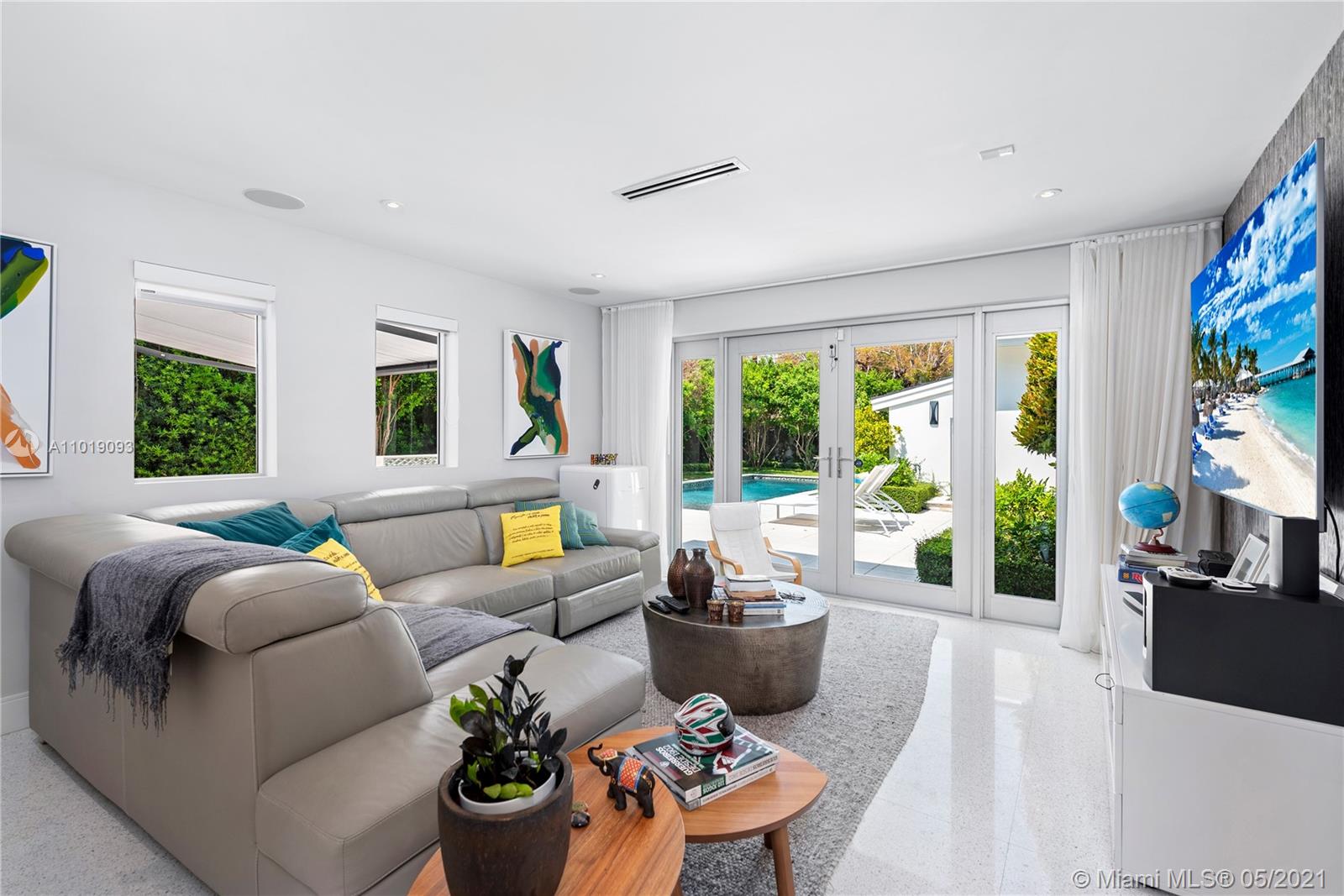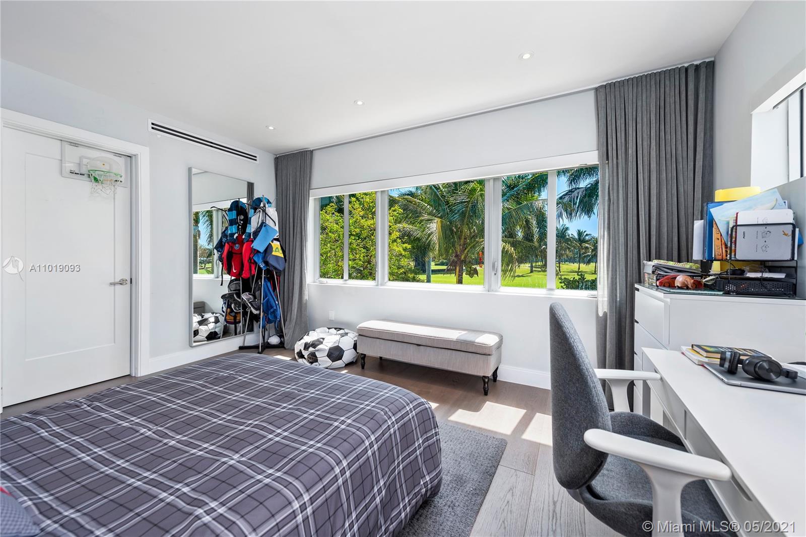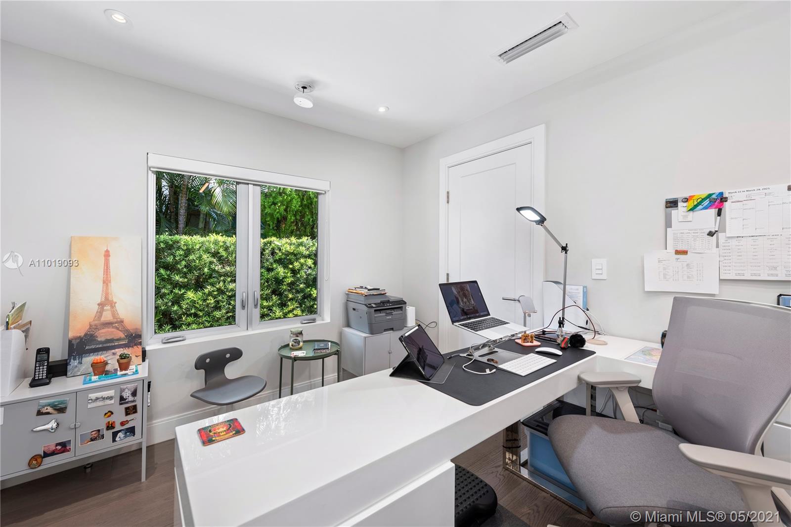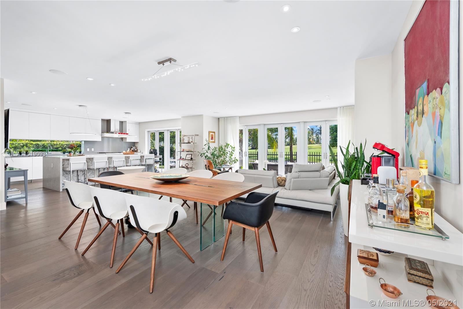 Impeccable, modern and stylish two story home with expansive views of La Gorce Golf Course. Resort like feeling and completely renovated by architect Robert Gallagher, this property combines generous spaces with wonderful landscaping, heated salt water pool with waterfall feature and automatic pergola for outdoor gathering. The interior floor plan includes double entry foyer, with separate entrance for in laws/maids quarters, great room, family/media room and 2 separate covered garages. Principal room is located in the first level with private terrace facing the golf course and with a separate sitting area. Fabulous Intirium designed open kitchen with gas stove, wine cooler and Wolf and Sub Zero appliances complete the private lifestyle.