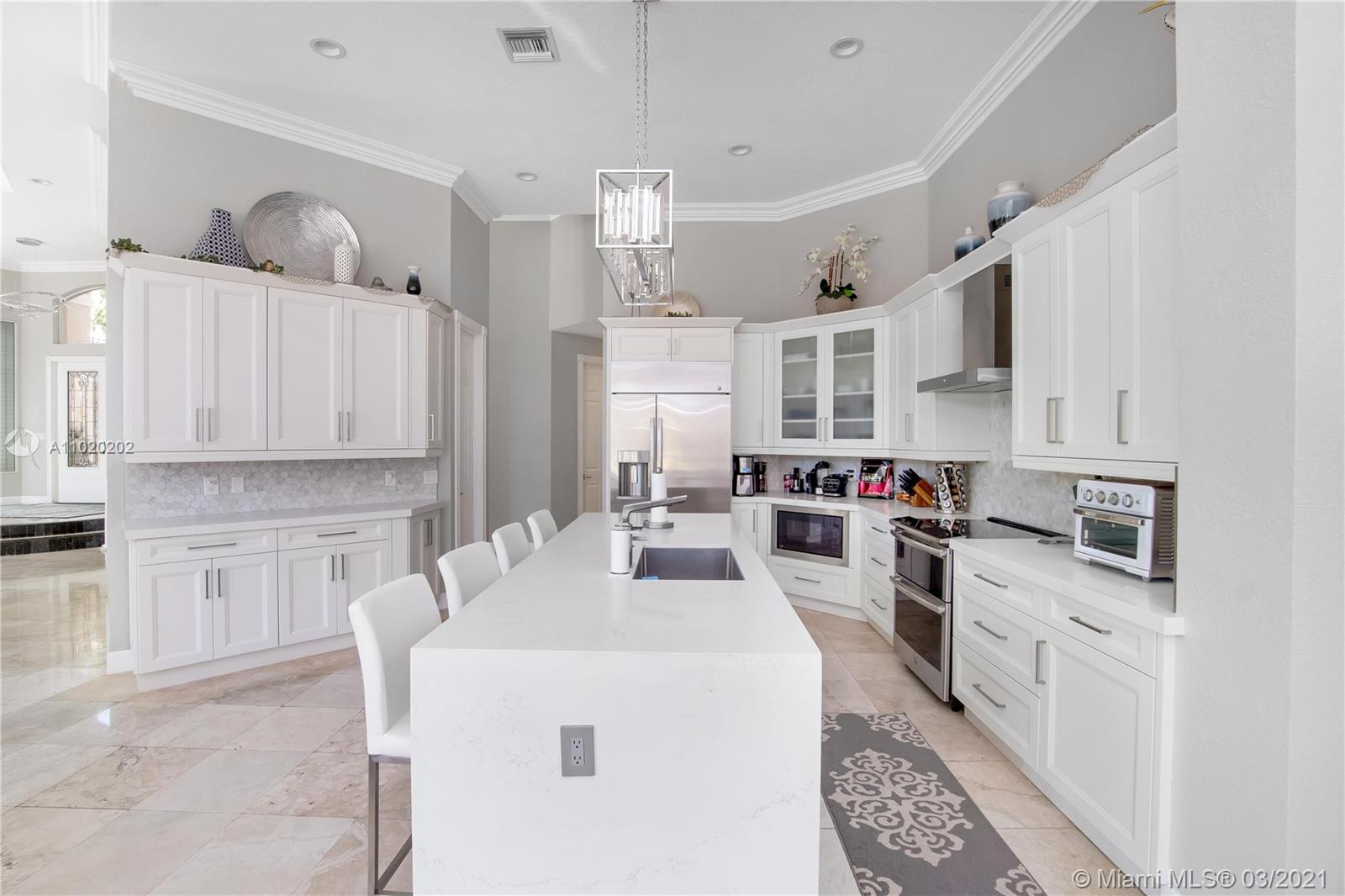 This stunning 4BD/5BA w/office sits on 0.74 acres in the highly desirable gated community of Cypress Head. Easy access to shopping, dining, and the highest rated school district. The marble tile foyer and open living area feature high tray ceilings, floor to ceiling windows, wet bar & lounge entraining area. Chef kitchen has upgraded S.S. appliances, waterfall-style island, quartz counters & a honeycomb backsplash. The master suite features coffered ceilings, private patio access & a huge WIC. The spa en-suite has double vanities, tub & glass shower. Added bedrooms can become a home gym/office. Outside, relax next to a remodeled gas-heated pool(w/ a 250 gal tank & new pool pumps)or putt on the golf green. Enjoy the large new pool deck & al fresco dining in the screened-in lanai.