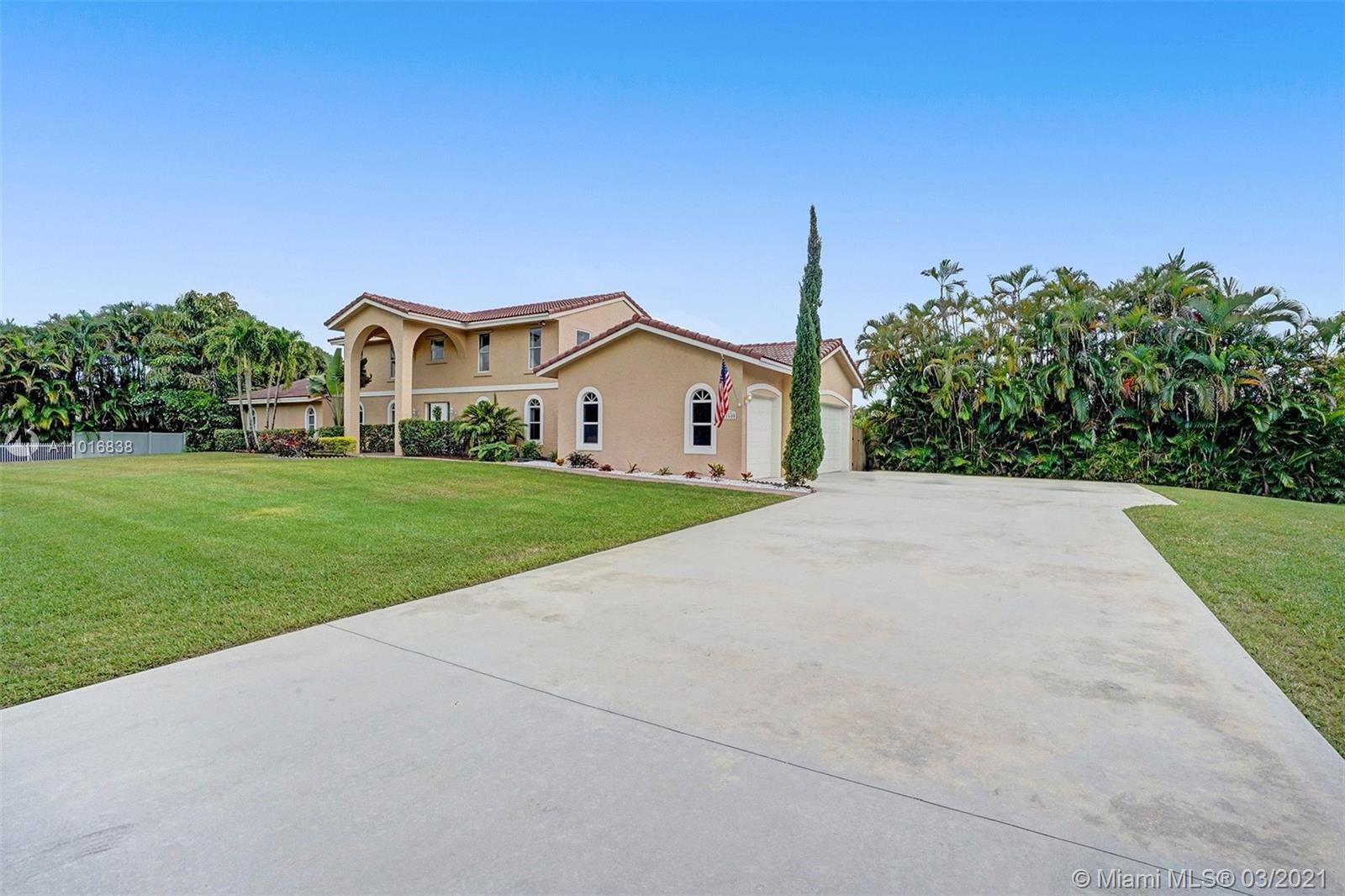 Prestigious Plantation Acres 2-story home in sought-after Horse Community, on a builder's wide acre, situated on a beautiful cul-de-sac street perfect for kids and pets. Property boasts: grand covered 1st-floor entry; 4 huge bedrooms incl 2 masters, 1 upstairs & 1 downstairs; 3 full, 2 half baths; 2,876 sft of living space; 3 A/C zones; eat-in kitchen with granite countertops, wood cabinets, all NEW SS appliances, pantry, snack bar/counter; laundry & storage room with NEW W/D; 2nd floor offers 2nd master, spacious 3rd and 4th bedrooms, & loft area for desk/homework station, hallway bathroom fully renovated; over-sized covered patio to enjoy Florida lifestyle; pool with built-in spa, NEW heater; 3-car garage with huge driveway; privacy gate perfect for RV, Boat, etc; detached shed; and more