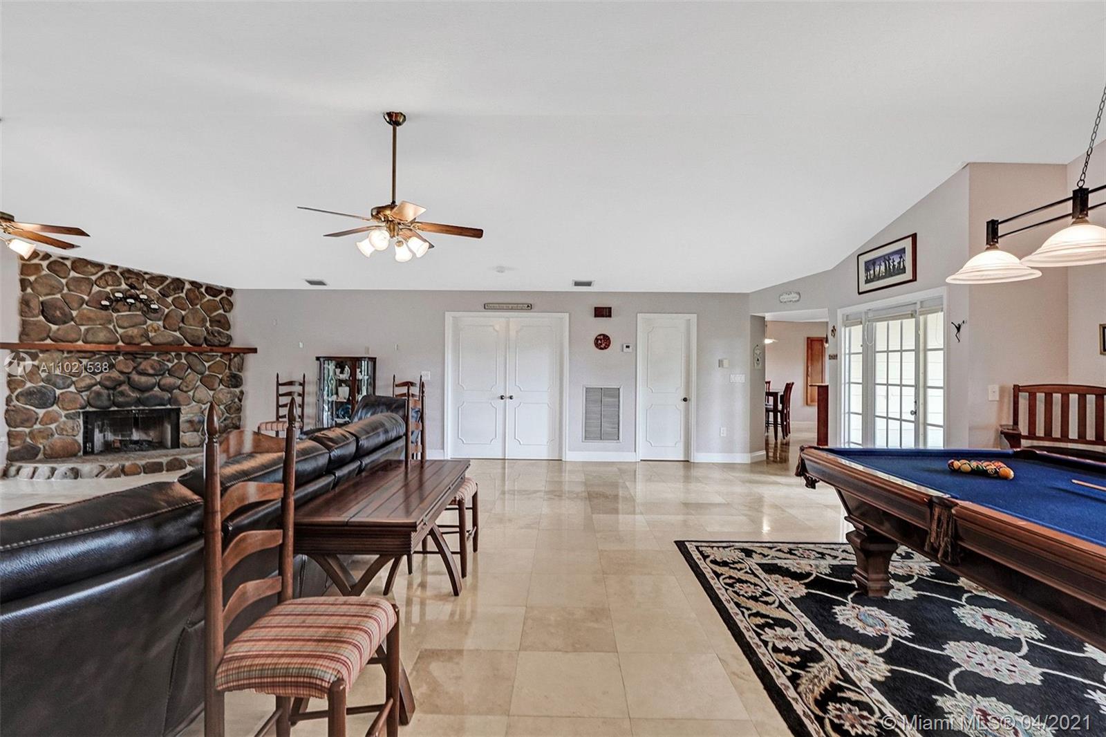 Beautiful equestrian estate in the coveted community of Calder Farms. This lushly landscaped home is situated on a builder’s acre, and boasts 5 bedrooms, 2.5 baths, 2 car garage, with a beautiful dome screen enclosed pool. Pool area has tumbled marble throughout and lots of space to entertain. Impact windows, and doors, including the garage door. Home has been freshly painted inside and out. Very generous sized eat in Kitchen with beautiful wood cabinetry and granite counters, stainless steel appliances and double ovens. Travertine floors through main living areas and laminate flooring in bedrooms. Master bath is clad in beautiful slate stone. Jacuzzi tub and separate shower with double sinks and makeup area makes this the perfect master bath. You may board your horse or keep on property!