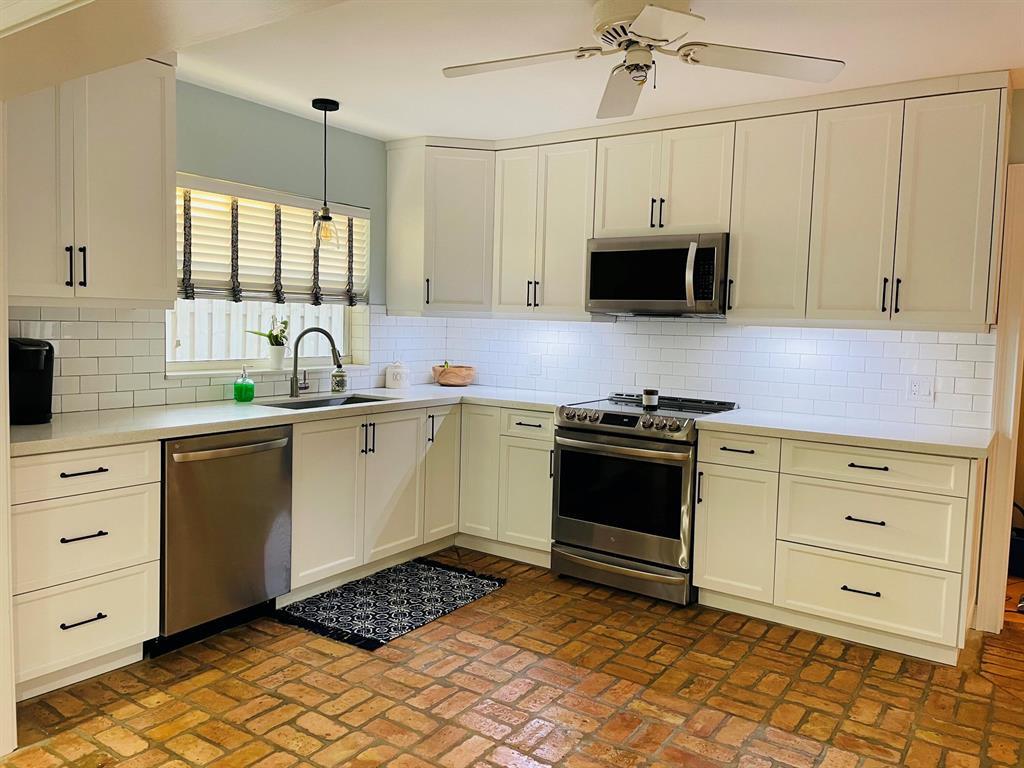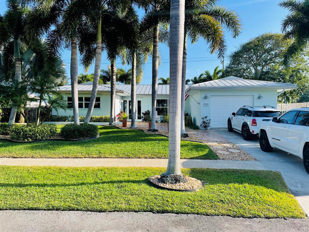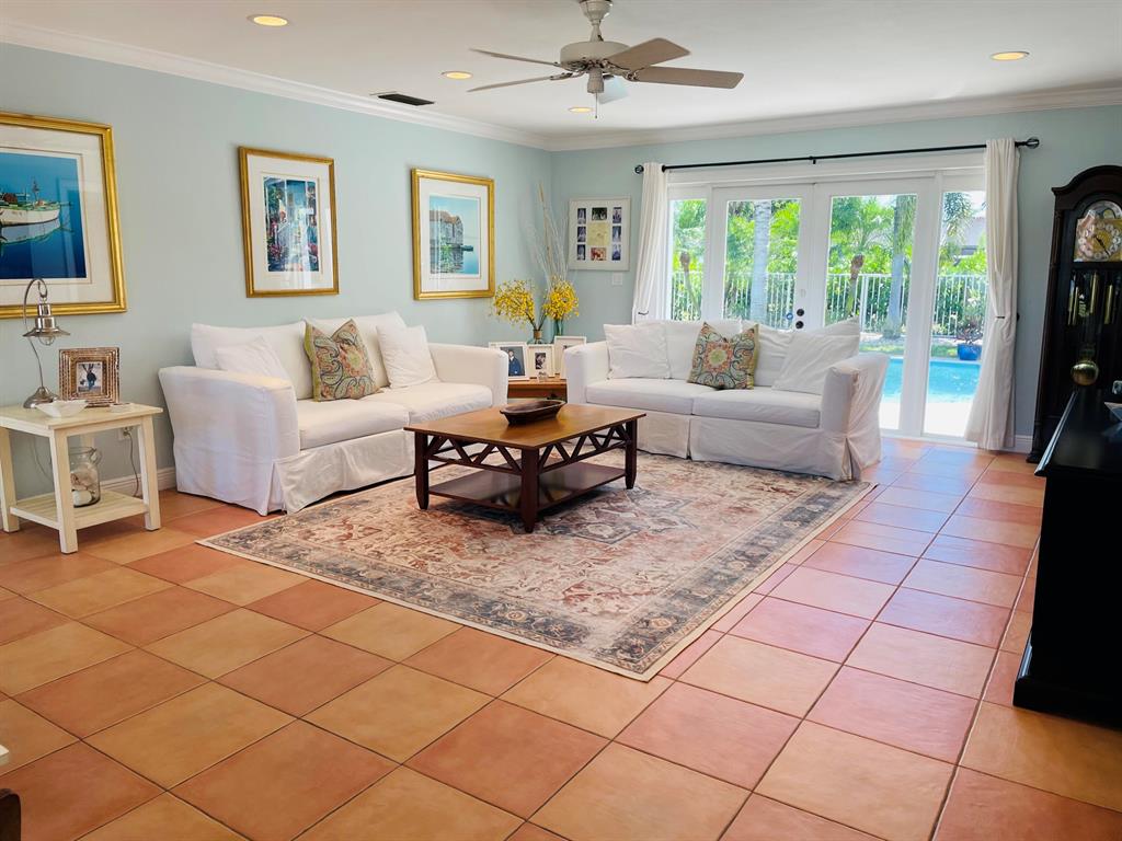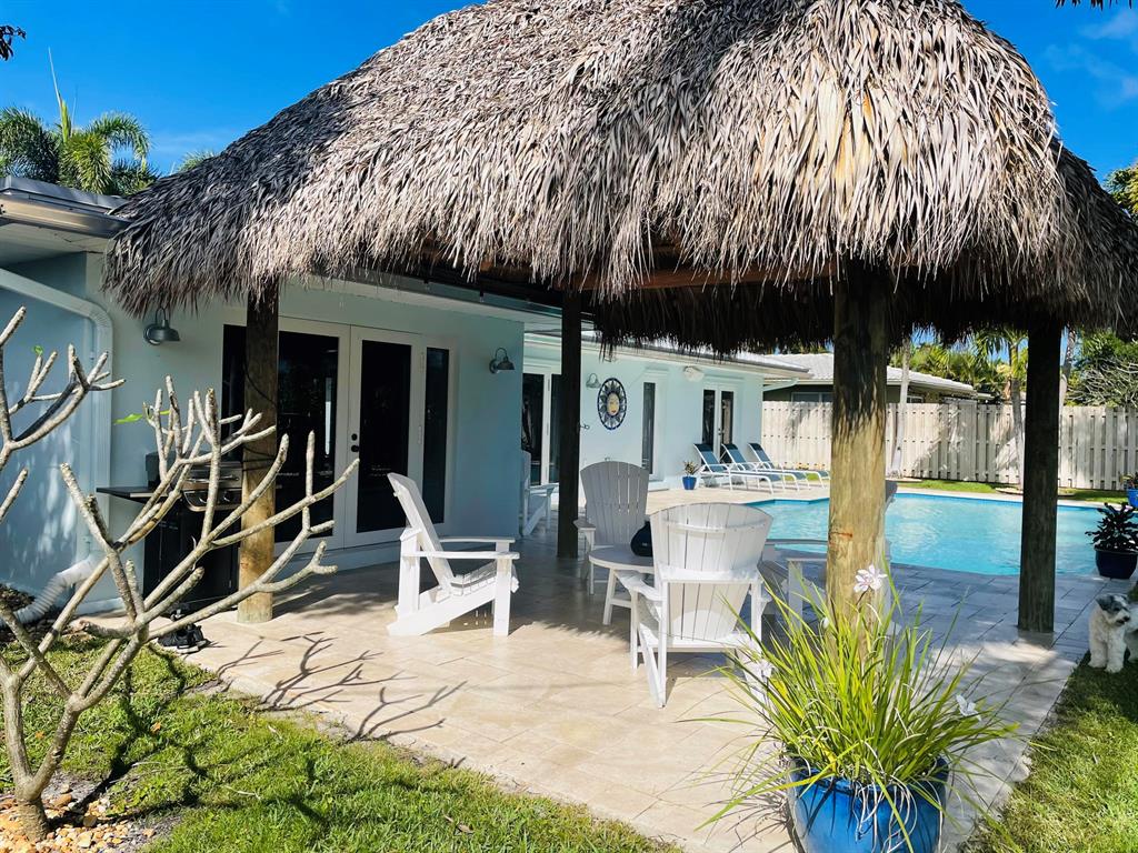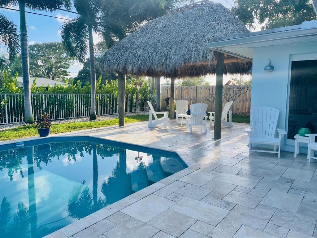 Pride of ownership! This immaculate, spacious 2/2 home is open and airy with room to expand. It features a spectacular private pool area, tumbled marble deck and new Tiki Hut. No rear neighbors. This home has a large, updated kitchen with custom cabinets, stainless steel appliances and white quartz countertops. Interior laundry room with newer washer/dryer and storage cabinets; newer bathrooms, newer A/C (summer 2020), and metal roof (2008). Large rooms with natural light throughout, open floor plan, cabana bath off master. Home has solid wood core interior doors with tons of organized closet space. Vintage Anderson Wood floors in bedrooms, Chicago brick floors in kitchen and dining area; and tile in large living area. Chicago brick front patio. Oversized 1 car garage with built-in