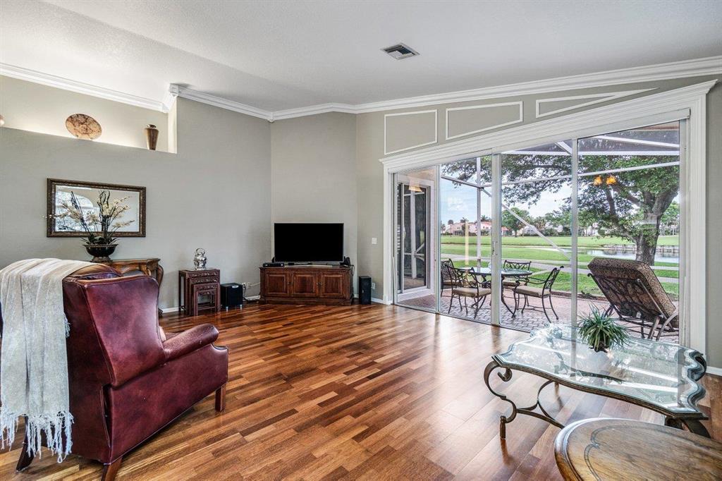 BREATHTAKING! This 3 bed, 2 bath LAKEFRONT home ON THE GOLF COURSE w/ 2 YEAR OLD ROOF & NEWLY REMOLDED BATHROOMS has been kept in PRISTINE CONDITION & is located in the highly desirable Boca Golf & Country Club w/ NON-MANDATORY MEMBERSHIP. The beautifully landscaped entryway invites you inside where the vaulted ceilings, custom architectural details & panoramic lake & golf course views take your breath away & you instantly know you are home. Gleaming wood floors, high-hat lighting & custom crown molding throughout give this unique home a high-end feel, & the split bedroom plan offers space and privacy. Take in the picturesque views of the lake from the oversized living room or head out back and relax under the covered/screened patio & entertain family & friends as you watch nightly sunsets