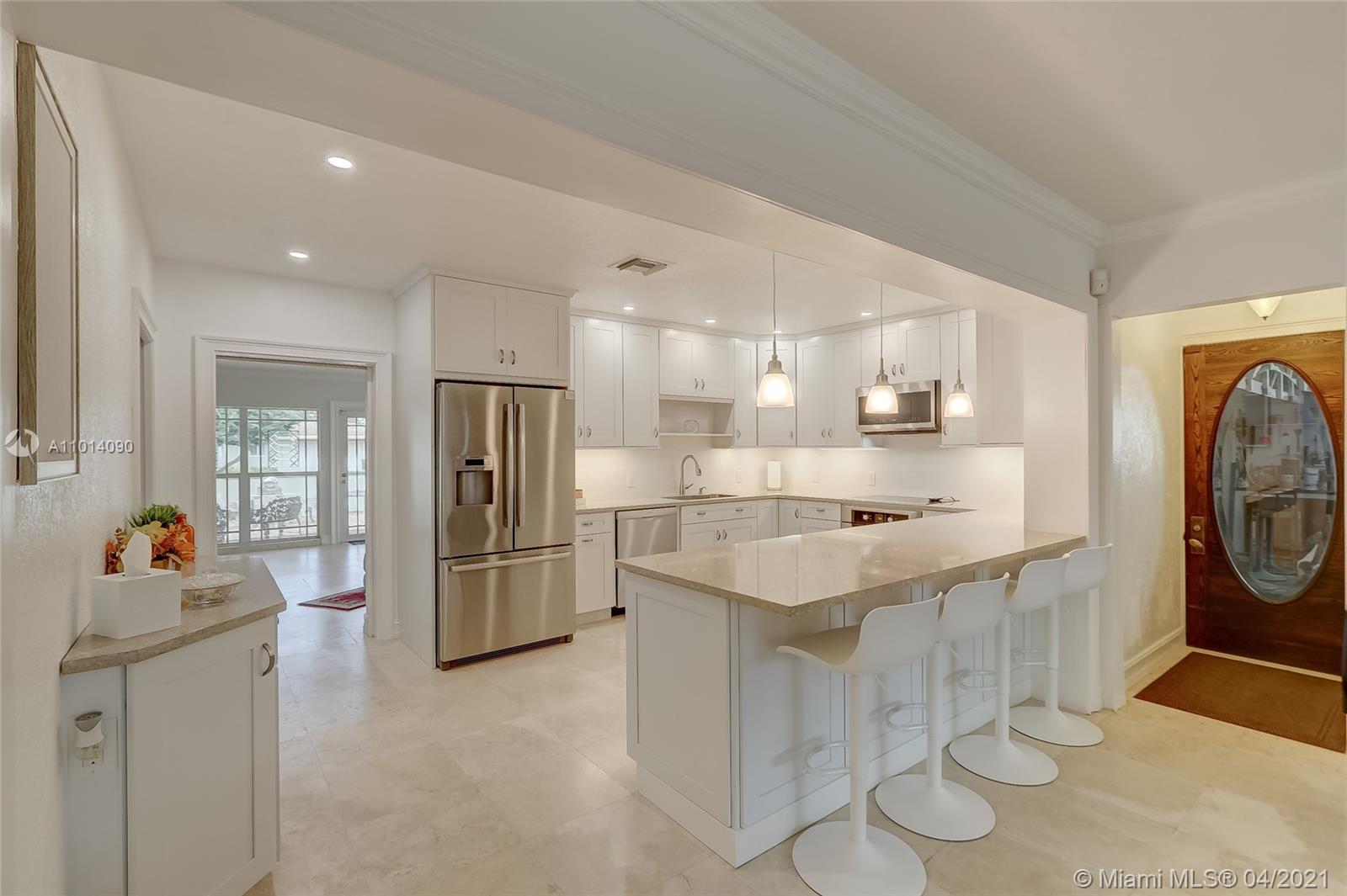 Looking for a beautiful home in a quiet neighborhood? This one story home with pool in Coral Ridge Country Club Estates would serve you well. Features new kitchen(2021), quartz, stainless steel Bosch appliances, new dishwasher, beverage cooler, microwave, Top Zero seamless edge sink, charging drawer, blind corner swing-outs, under-cabinet lighting. Barrel tile roof(2013), new electrical panels, LED lighting, water heater. Plumbing inspected and in good condition. Den/dining/living/family room. Could add 4th bedroom. 2 car garage with workshop + new mini-split. Chicago paver driveway and paths. Stainless Steel gas grill on granite, outdoor shower, gazebos, fountains, courtyards.