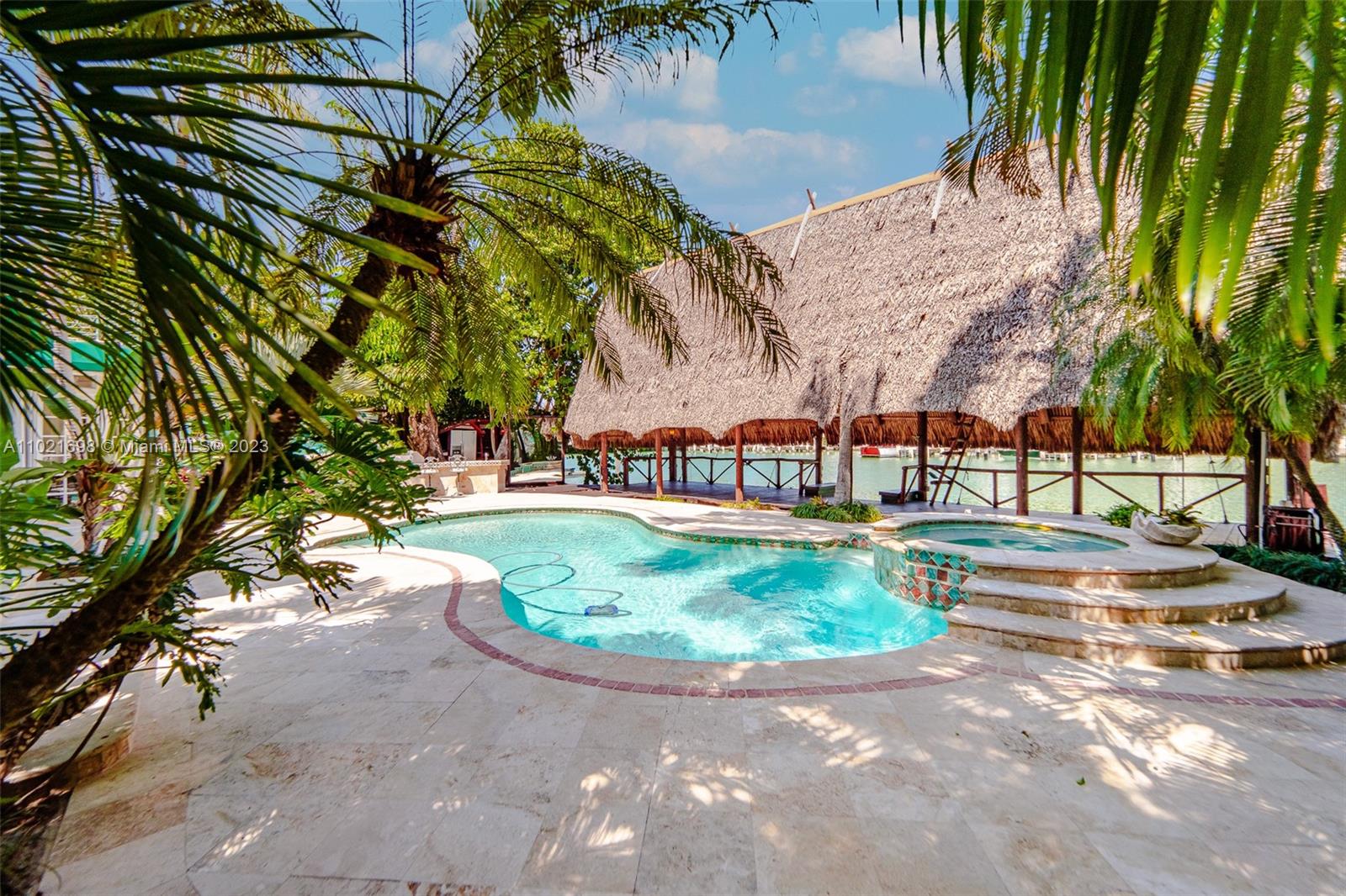 Live out your Miami dream at this waterfront property. 75 ft water frontage on 9,150 SF Lot. The home features 5 BD, 4.5 BA with 3,857 SF of interior space with a pool deck that is perfect to host outdoor gatherings. Incredible amenities such as unique Tiki Hut, wet bar, outdoor shower, and gas grill. Inside, proper formal dining room, open living room, breakfast nook that all face the pool deck. Upstairs, the Master Suite is accompanied with 2 additional bedrooms that share a jack and jill bathroom. Each bedroom upstairs provides outdoor balcony access to enjoy the water views, with Master bedroom patio providing direct access to the pool. This Art Deco home is a great opportunity for those ready to enjoy the Miami lifestyle or for those looking for an opportunity to renovate.