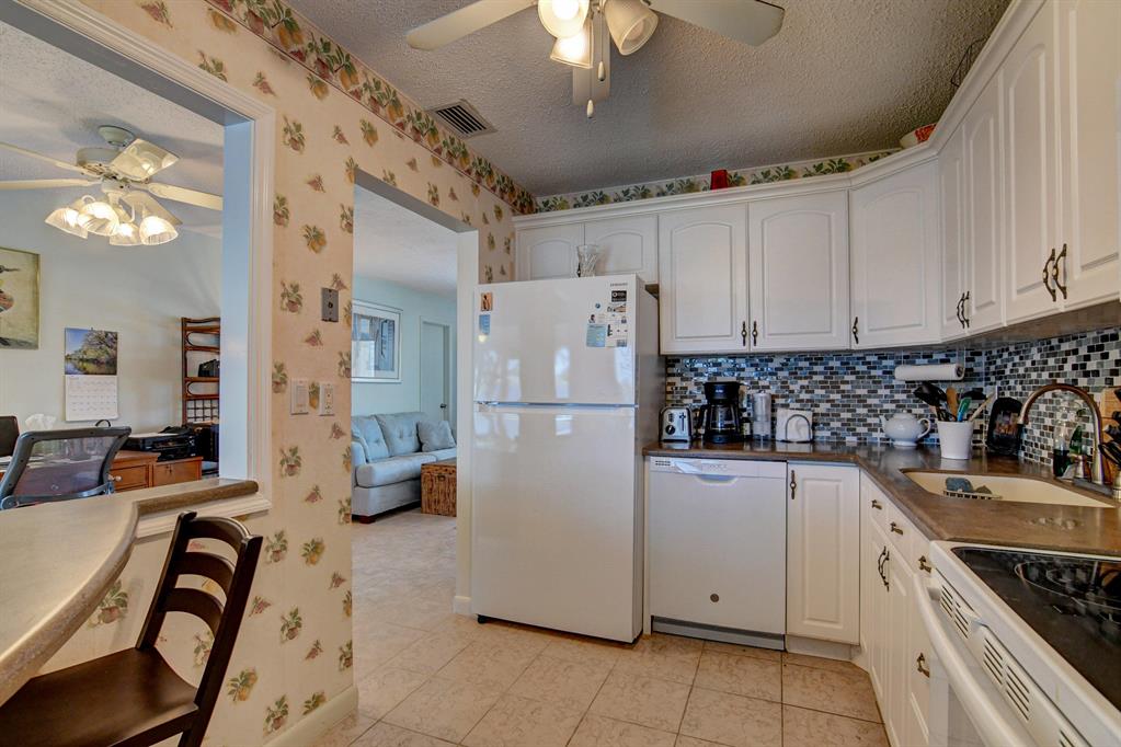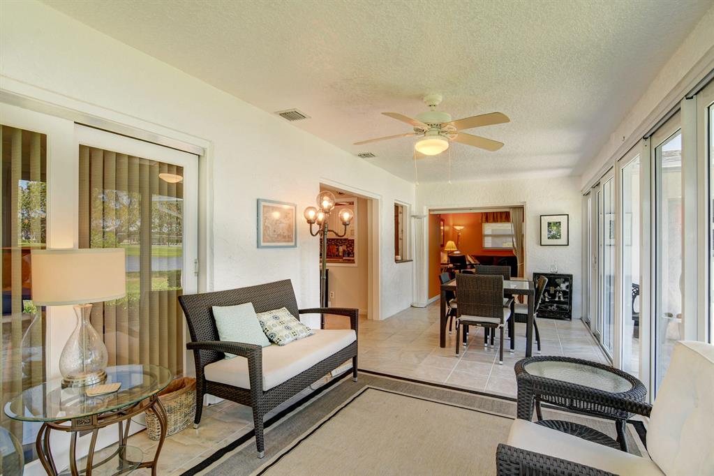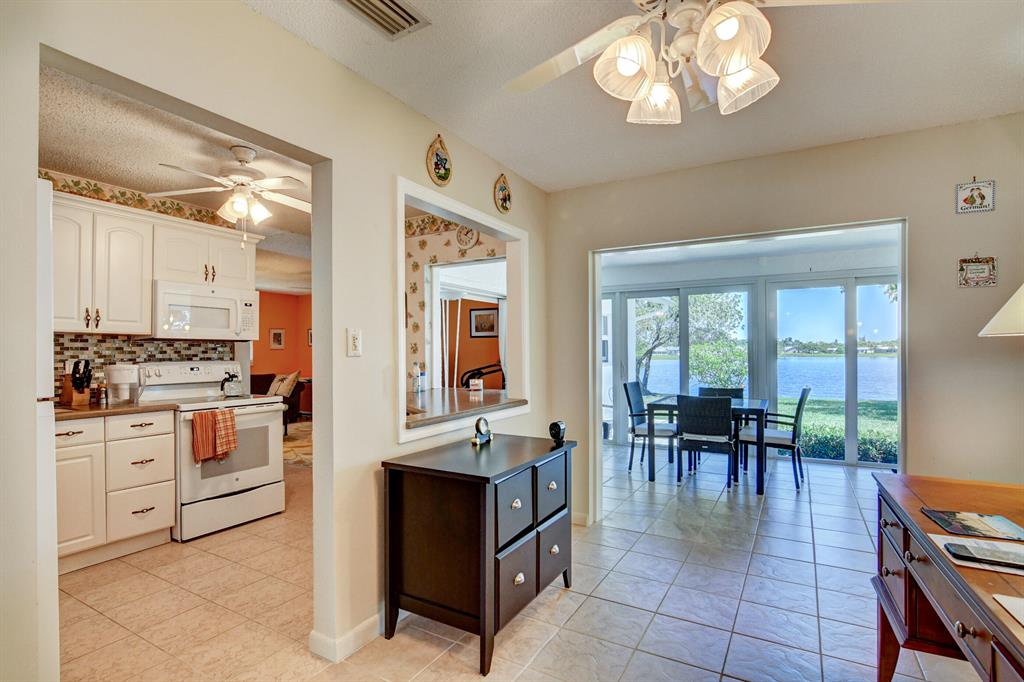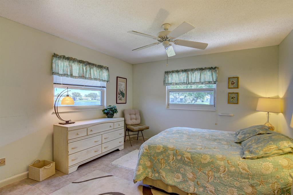 Picturesque broad water views w/deep backyard. Bird watchers delight! Completeimpact windows, open patio also has (see more cont'd) shutters for shade. Kitchen updates w/eat in breakfast bar & pantry. K/appliances 2018, A/C system 2020, glass enclosed tiled patio has a/c vent. Driveway/garage & home painted April 2021. Jack & Jill bath w/step down shower, dual sinks. 5 fans, walk-in closet in master br, tiled throughout. Seasonally occupied for 10 yrs.Min. to post office, grocery. Close to majorarteries, 15 min. to Discount mall & PBIA, 20 min. to beaches & a lot of Restaurants.