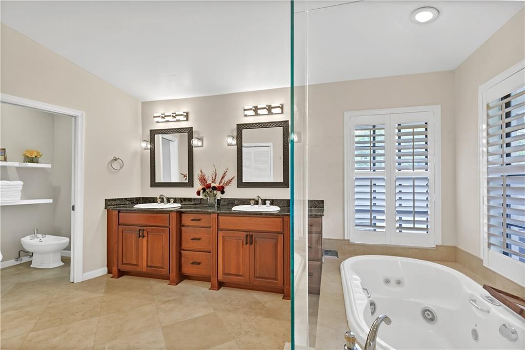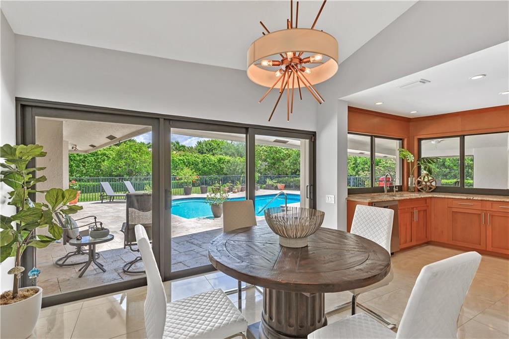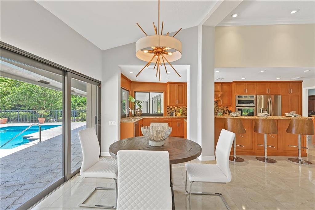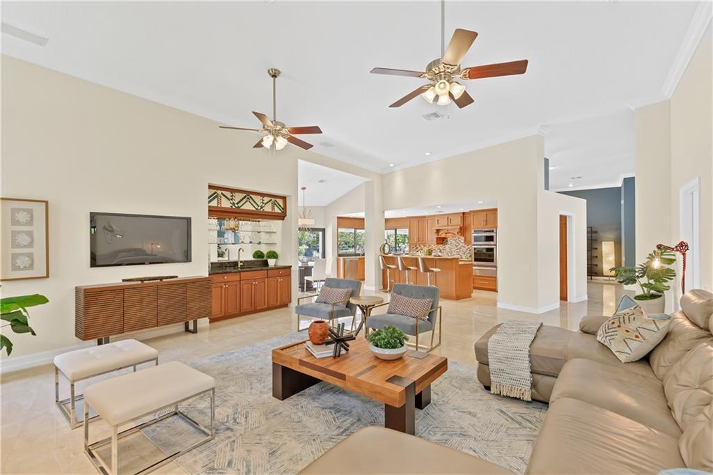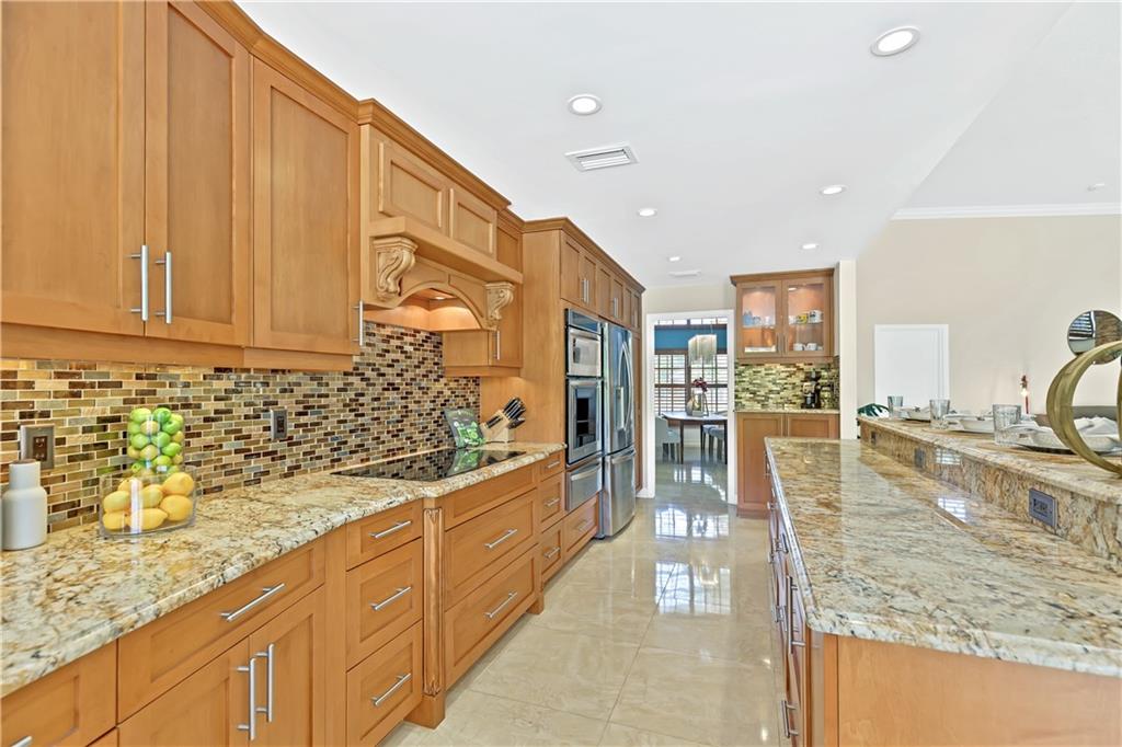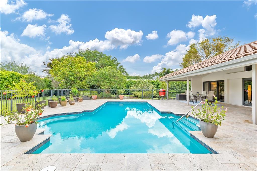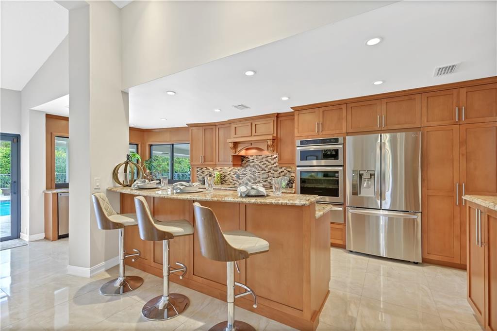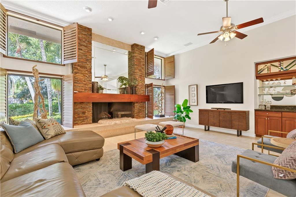 This home exudes Fine Details: Plantation Shutters, Crown Molding, Wet Bar, Travertine Pavers, Porcelain Tile, Clerestory Windows, Plant Shelves, Stacked Stone & Wood Mantle for Wood Burning Fireplace & wide, open S.P.A.C.E! Kitchen is a chef's dream: Stainless Steele Appliances, Carved Wood Hood, Induction Stove Top, Convection Oven&Microwave, Warming Oven, Soft Close Custom Cabinets, Granite Countertops, Reverse Osmosis Filter. Step out to the Summer Kitchen: Sink, Refrigerator, Grill & Burners. Long Driveway, sidewalks & 500 sqft Patio are all Travertine Pavers. Fenced Free form Heated Pool with Cuddle Cove. Roof '07, Impact Windows on back of home. Low HOA: Gated, Security, Comm Pool, Tennis/Pickleball Ctr, & Fishing Pier. Come enjoy the Florida Lifestyle on this quiet cul de sac lot!
