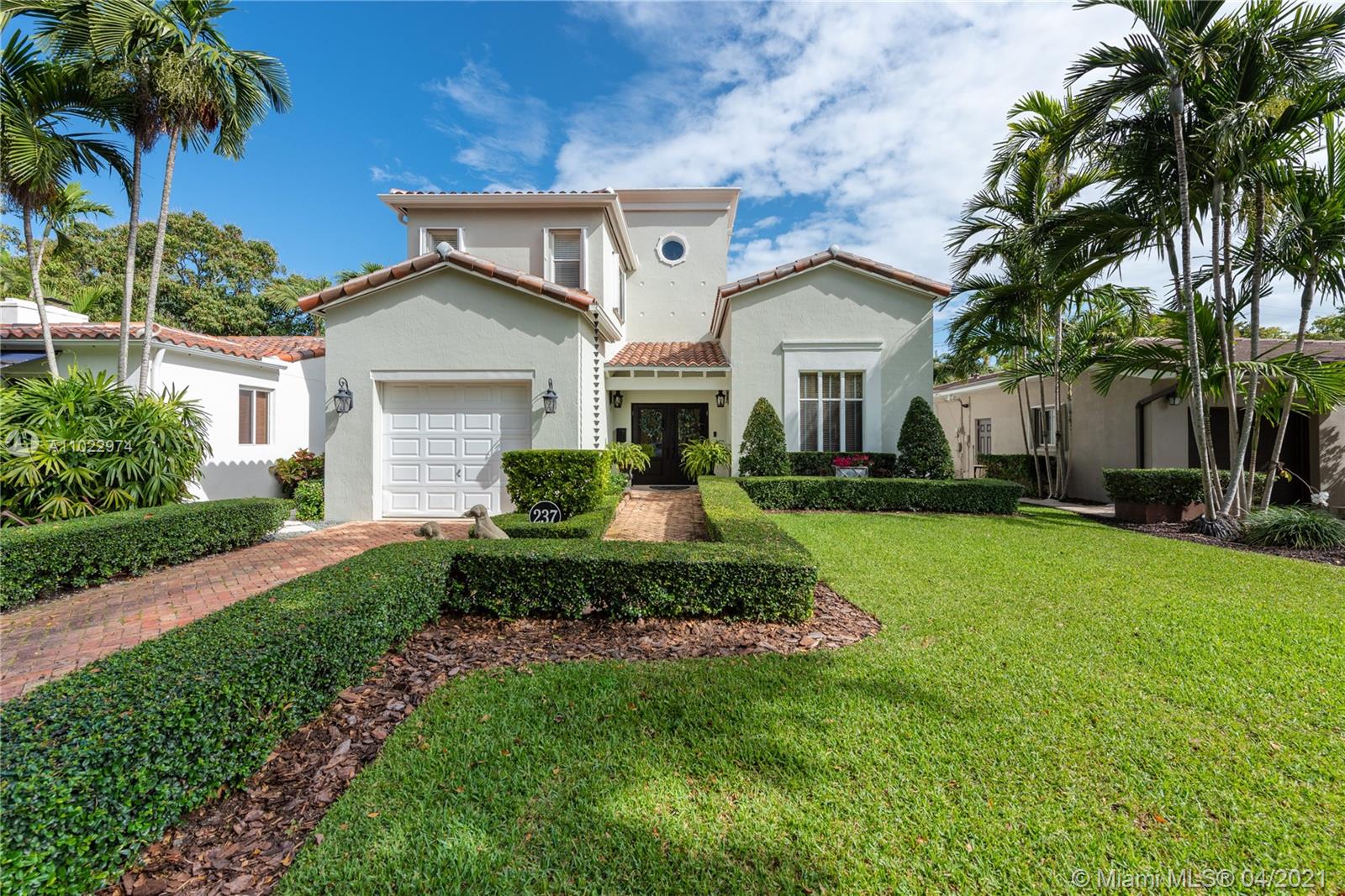 Stunning two-story home just east of Ponce south of University Dr. on a quiet, tree-lined street. Built-in 1997, this home features 3 bedrooms/2.5 baths. Foyer entrance through double doors. Formal living room, hall with half bath next to the staircase, updated kitchen that overlooks the dining room. The large master suite is downstairs with French doors to a private patio. Upstairs are two large bedrooms with a hall bath. High ceilings throughout the home and many windows that allow lots of light. Chicago brick driveway, sidewalk, and spacious interior courtyard. Finished one-car garage, now a playroom, is fully usable as a garage. Split a/c units, Shutterr. Brand new roof. Home is exquisite and move-in ready. 5,000-foot lot with 1,837 adj. sq. ft. Well priced for today’s market.