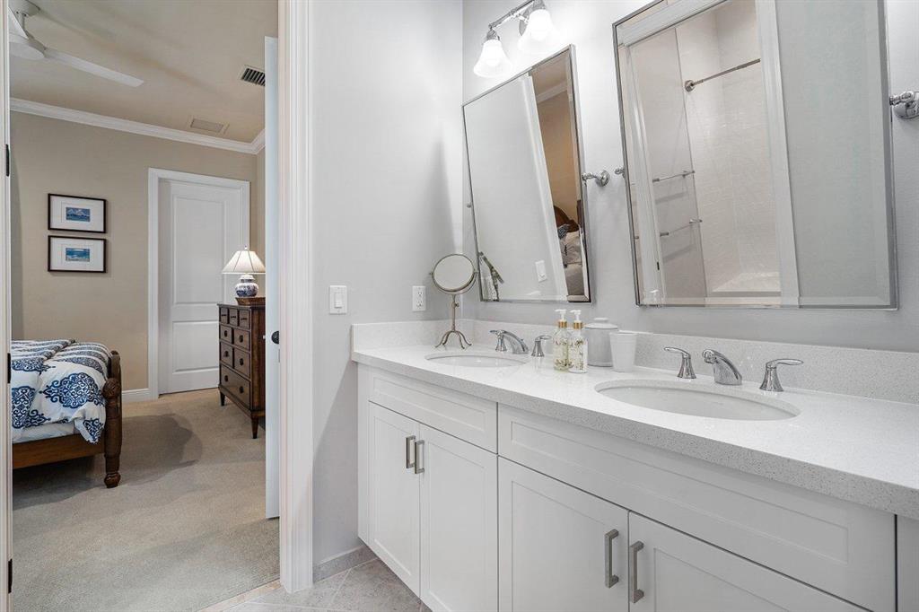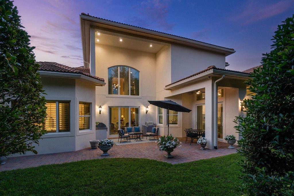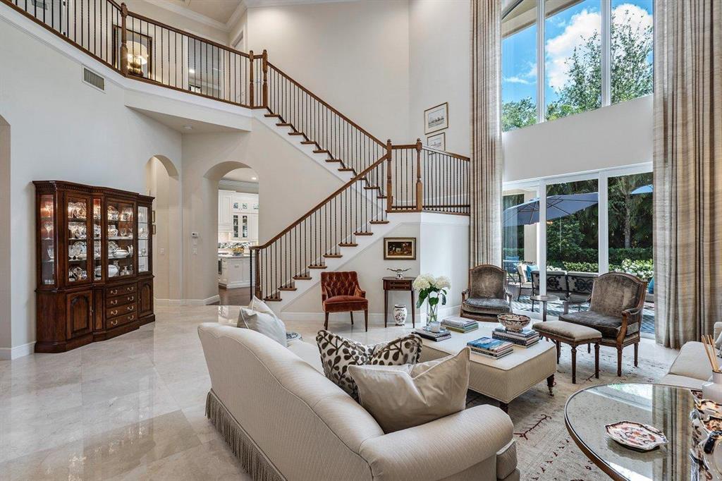 Every inch of this amazing residence is finished to perfection in a timeless transitional style! The facade presents with crisp clean lines and the home is surrounded by beautiful new lush landscaping. The brick paved driveway leads to a double door entry which opens to a welcoming foyer and to the large formal living room with 24'' polished Crema Marfil marble floors, volume ceilings and 2- story window wall filling the home with natural light. The formal dining room with tray ceiling and crown moldings is adjacent. The light, bright library/media room with wood flooring and plantation shutters features a beautiful custom designed wall unit with LED lighting. The sumptuous Master Suite features hard wood flooring, plantation shutters, tray ceiling and crown moldings and the Master bath