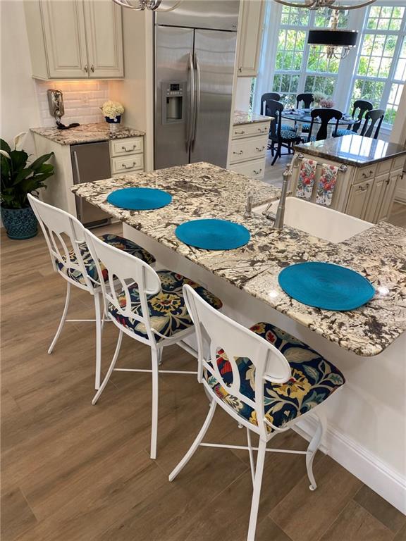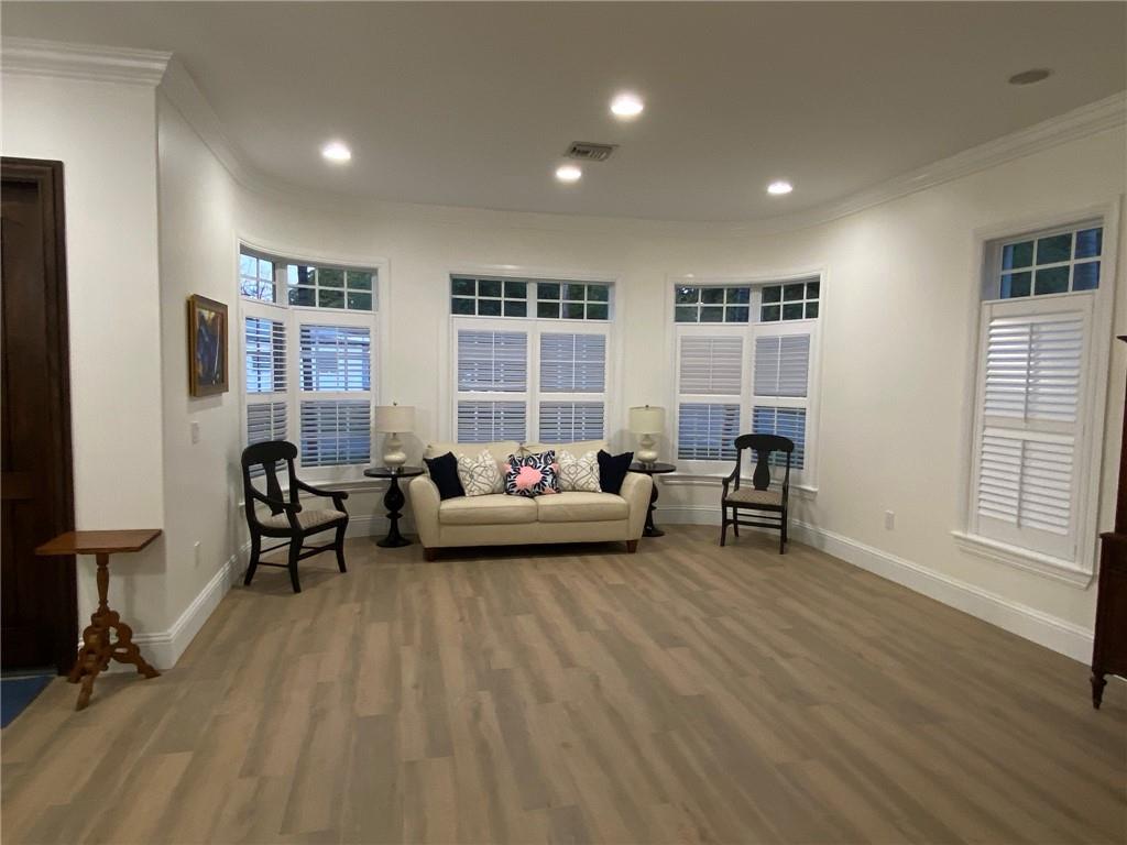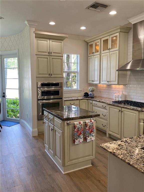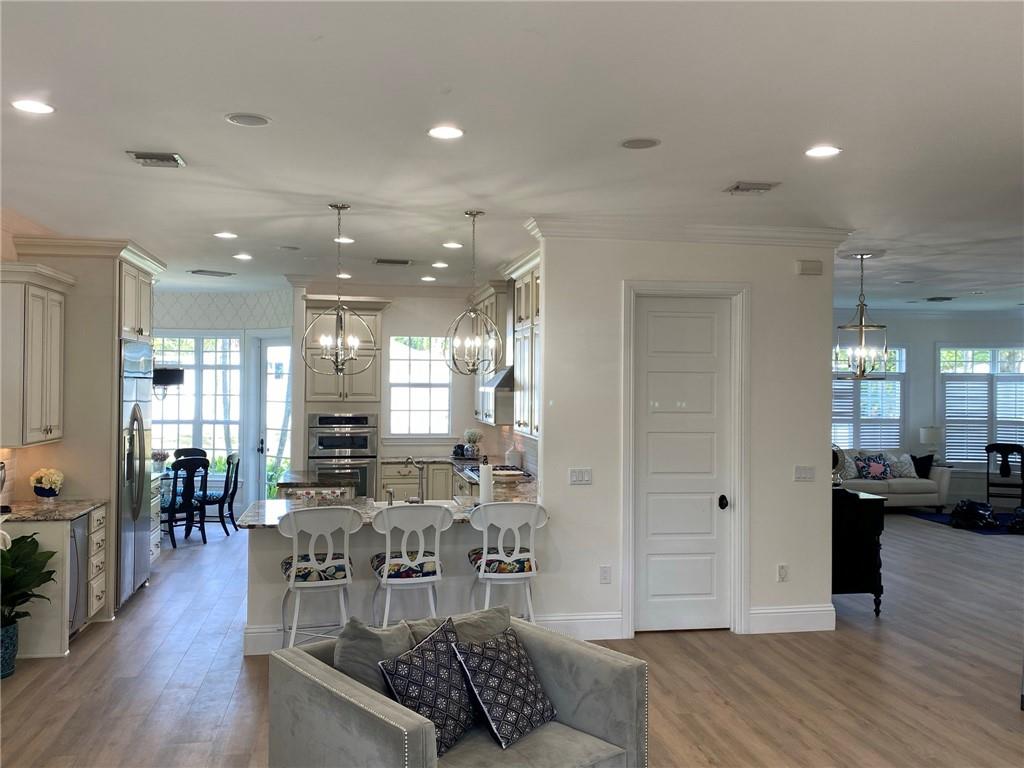 Gorgeous 2 story Tropical Spanish home built by Gulf Construction. Home originally built in 2010 has been fully restored. High ceilings and open floor plan on first floor with amazing natural light that floods in from the many impact windows and French doors. Large sleek kitchen softened with traditional touches. Natural gas stove. Charming round breakfast room, half bath and brand new porcelain tile flooring throughout the first floor. The family room has 2 sets of French doors looking out onto lushly landscaped gardens and patio. Upstairs has 5 bedrooms and 3 baths, large closets, Romeo and Juliet balconies and laundry room. Elegant Master suite has large bathroom, with tub and shower, his and her closets, round sitting room and balcony. Extra large 2 car garage