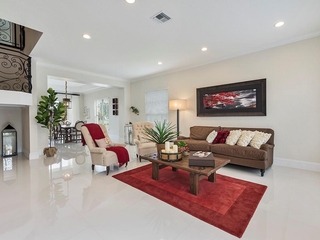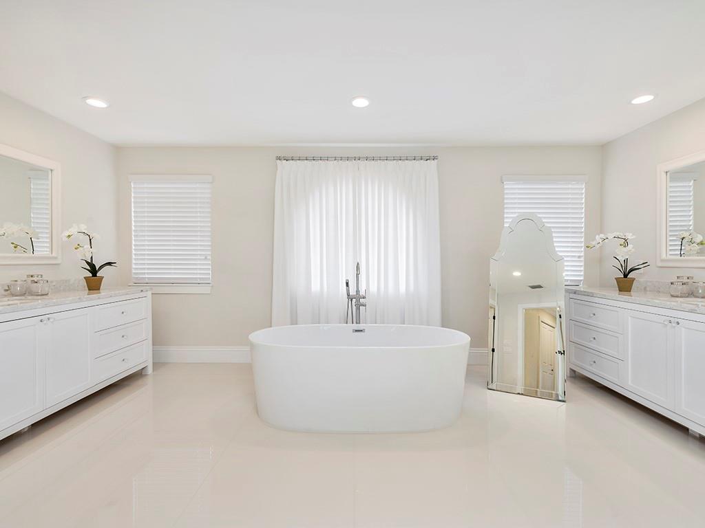 Gorgeous home completely remodeled in a 13,374 SF oversized lot with 120 degree peaceful lake views in a cul-de-sac. New porcelain and wood floors throughout the entire house. New kitchen with real wood cabinets, new light fixtures, new window treatments, high vaulted ceilings. New 2 H.E. A/C units, new water heater, new S.S. appliances & washer and dryer. Soft close cabinetry. All bedrooms have built in California closets and new bathrooms. Amazing opportunity to own one of the highest quality homes in the community. The living areas are bright and spacious making this space ideal for entertaining guests or making memories with your family. Walk/bike to parks, ''A'' rated schools & shopping.