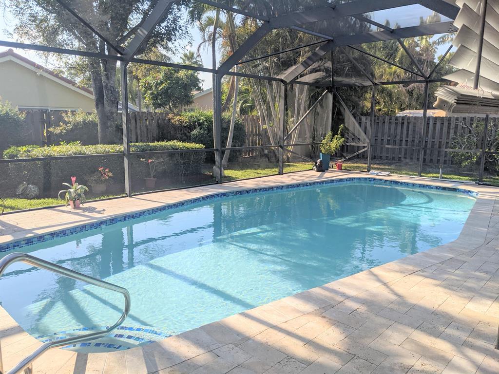Beautifully remodeled home with an open floor plan and vaulted ceilings. 4 bedrooms, 2.5 baths, 2 car garage, pool, large screened-in patio, oversized lot with fenced in back yard. Polished marble floors in the kitchen, living room, dining room, bathrooms, and one bedroom. Tile floor in the bedrooms. Kitchen and bathrooms are renovated. The pool and patio are completely redone in March 2021 with new diamond brite and stone pavers. Timbercreek is a wonderful, friendly neighborhood, centrally located close to the best shopping and restaurants. Excellent schools: Calusa, Omni, Spanish River. Roof replaced 2006. HVAC replaced 2017, Epoxy garage floor 2020, salt chlorinating pool 2019, microwave 2020, refrigerator 2017, and dishwasher 2016.