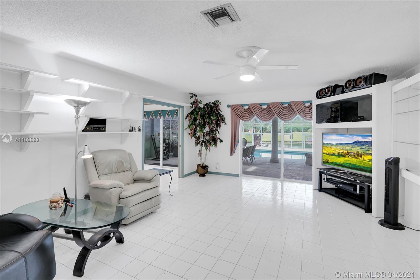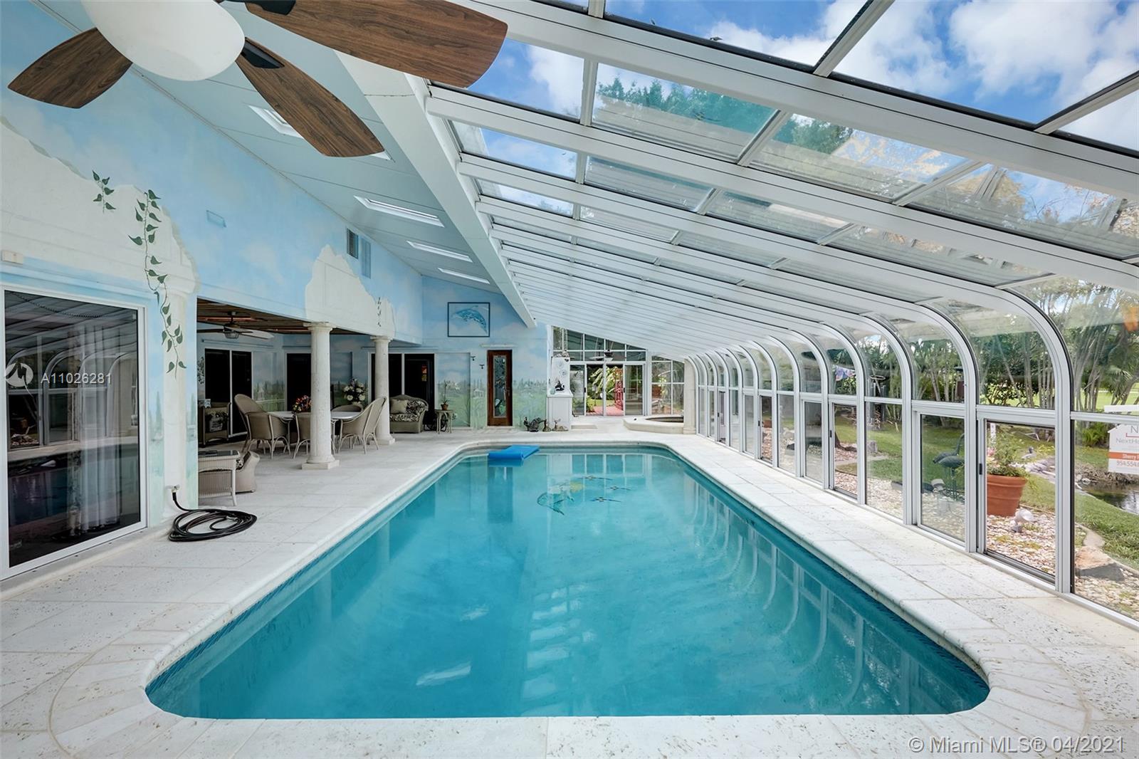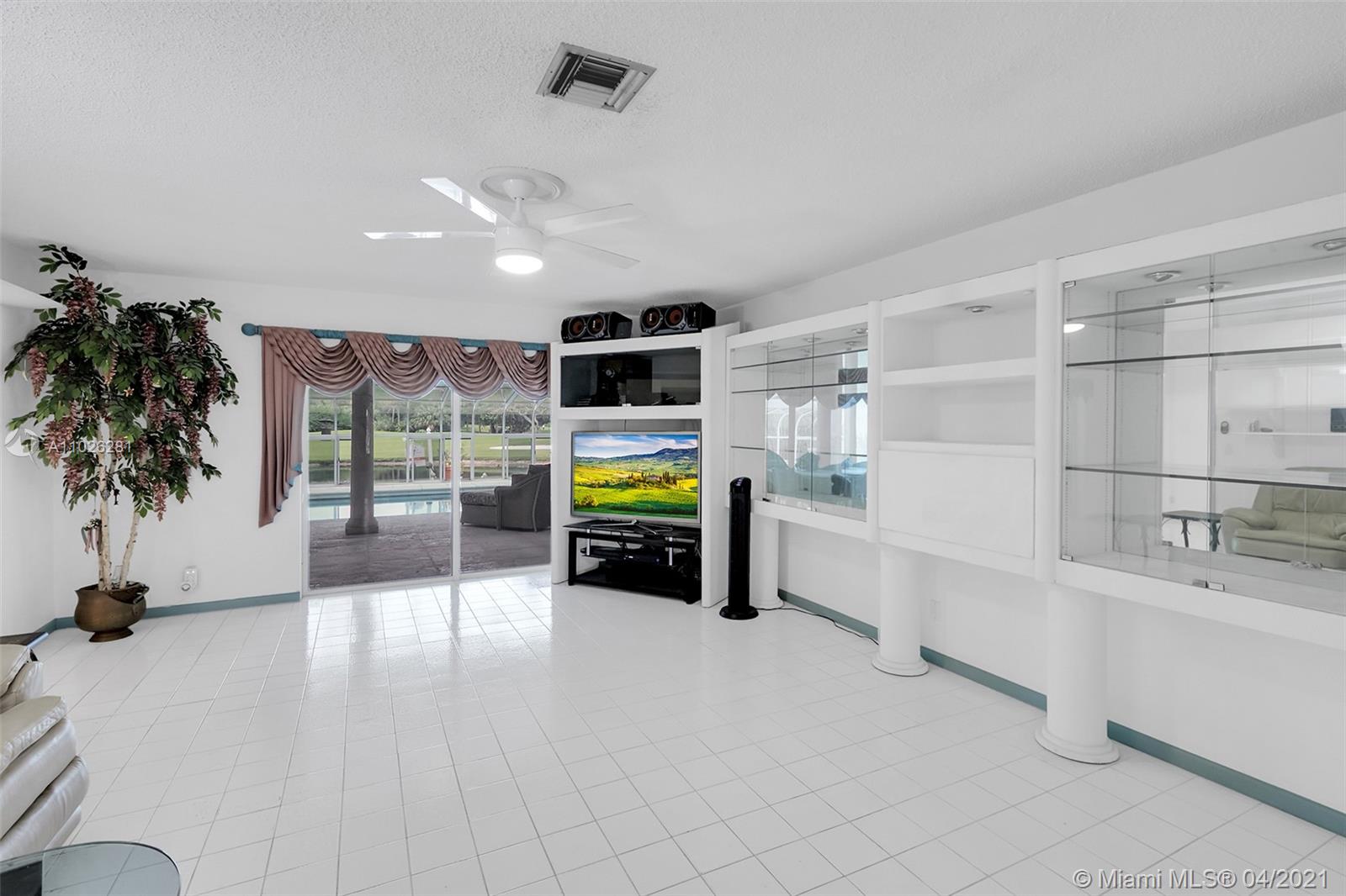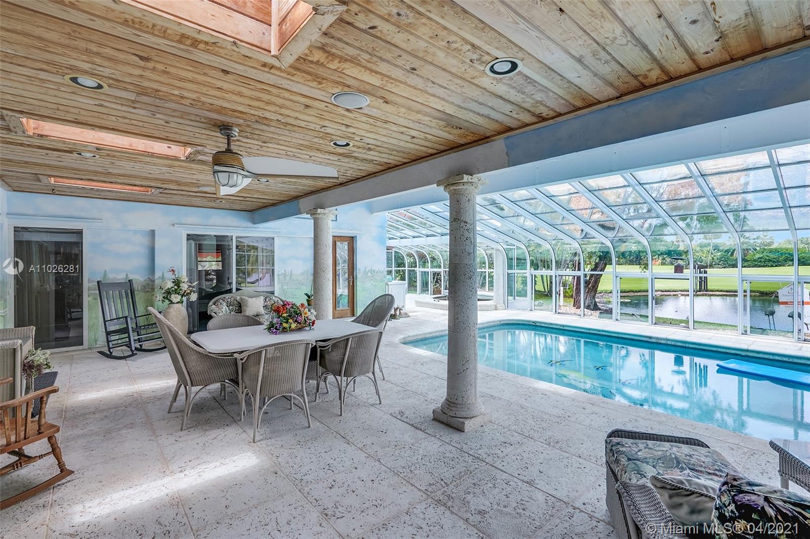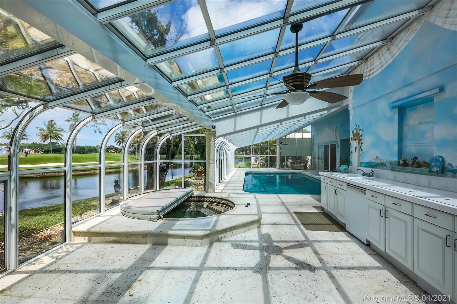 Home 4 sale in Jacaranda/Plantation. Over 4000sqft (perseller) 4/3 lakefront golf course home. Glorious outdoor entertaining area overlooks 2nd hole at Jacaranda Country Club. Beautiful mermaid mosaic diving size pool w/ new pump under a giant glass domed 1300sqft patio. Outdoor kitchen,refrigerator& huge covered seating area w/ AC for your outdoor pleasure. Huge super large bedrooms. 2 master suites. Sliders(but 1)are all pocket doors. Fabulous location on cul-de-sac dead end street. Xtra land purchased from golf course to water line. Access to golf course. New underground power lines, new AC w/ 10yr warranty, flat roof re-topped w/ 3yr warranty. Roof 12 yrs. Copper plumbing, floor safe, hurricane shutters, inside laundry room. Locking screen doors for entire garage. Some tlc needed.