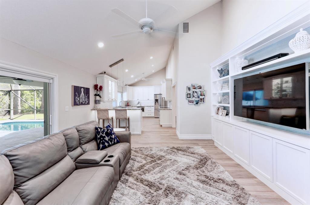 Luxurious, fully-renovated 4 Bed (En Suites), 3.5 bath Ranch-Style home in distinguished and centrally located Millpond; leaves nothing to be desired. Spacious lot situated on a peaceful canopied cul-de-sac. Richly-appointed open spaces include stunning kitchen & laundry room w/ high-energy performance appliances, spectacular 15' vaulted ceilings, energy-efficient hurricane-rated impact doors/windows, plantation shutters, high-end porcelain tile flooring, premium custom cabinetry/countertops, elegant molding, recessed LED lighting, storage galore, custom walk-in closets complementing each bedroom.