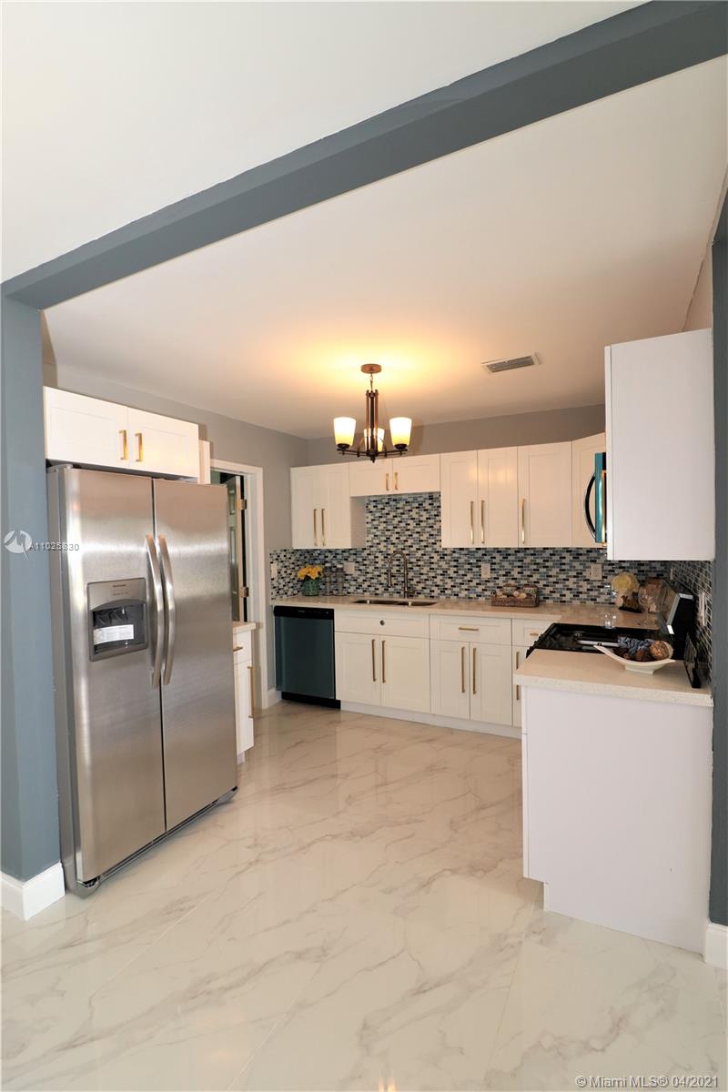 This unique GEM is in a league of it’s own in this area.Elegant Single family home,3 Bedrooms,2 Full Bathrooms completely remodeled whatever you can see.In Sunrise Golf Village beautiful neighborhood.New Roof on permit. New gas water heater on permit.New A/C.New Exterior and Interior Electrical panel.New hard wood vanities w/Glass Doors in bathrooms.New tile Flooring through home & Wood laminate in bedrooms.New quartz counter top on hardwood cabinets with New SS Appliances.New full size Washer and Dryer.New wiring almost entire of the house.New plumbing in Kitchen and Bathrooms.New insulation on ceiling and most of the walls.New irrigation system with new piping, timer and heads.New landscaping.Freshly painted interior and exterior building. Centrally located in Heart of Sunrise Must See..