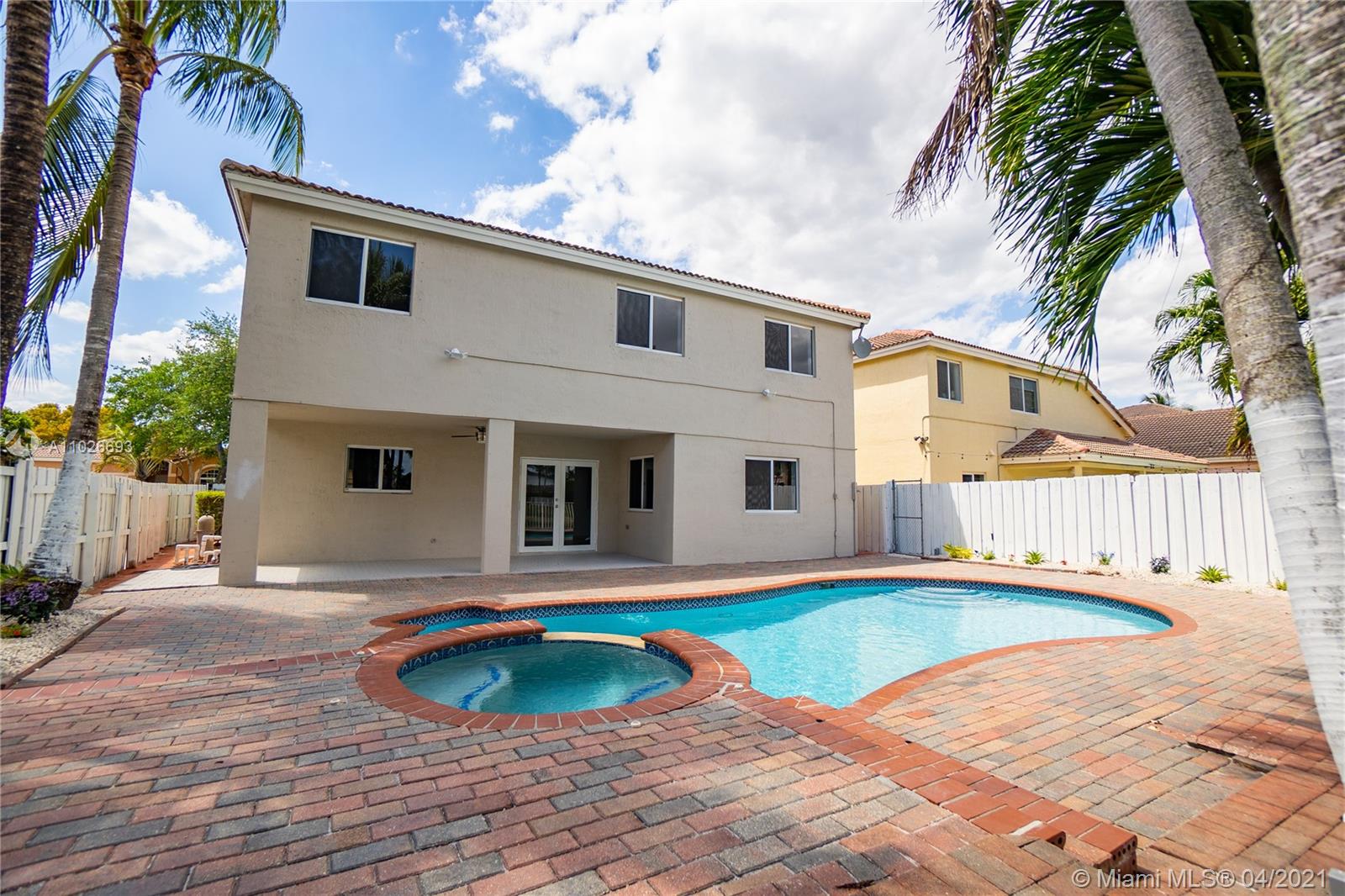 Magnificent 2-story home in the desirable Doral City. This elegant and spacious corner unit features 4 bedrooms, 4 bathrooms, a large kitchen with marble countertops, and a huge pool. Enjoy the comfort of this sprawling master bedroom with additional space for a home office or nursery, as well as scenic views overlooking the water. This home is also located minutes away from some of Doral's best schools, shopping centers, banks, and with quick access to the Turnpike. Home includes low association fees and is located inside a gated community. Agents please see Brokers Remarks.