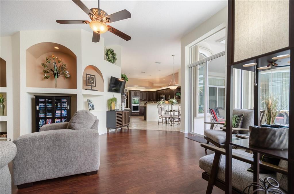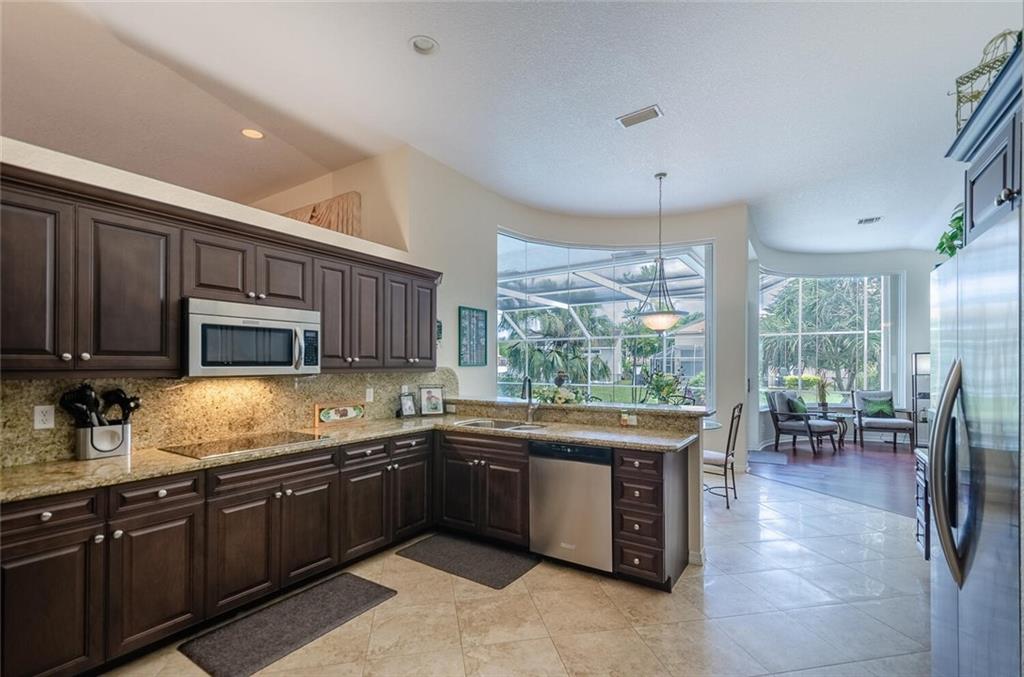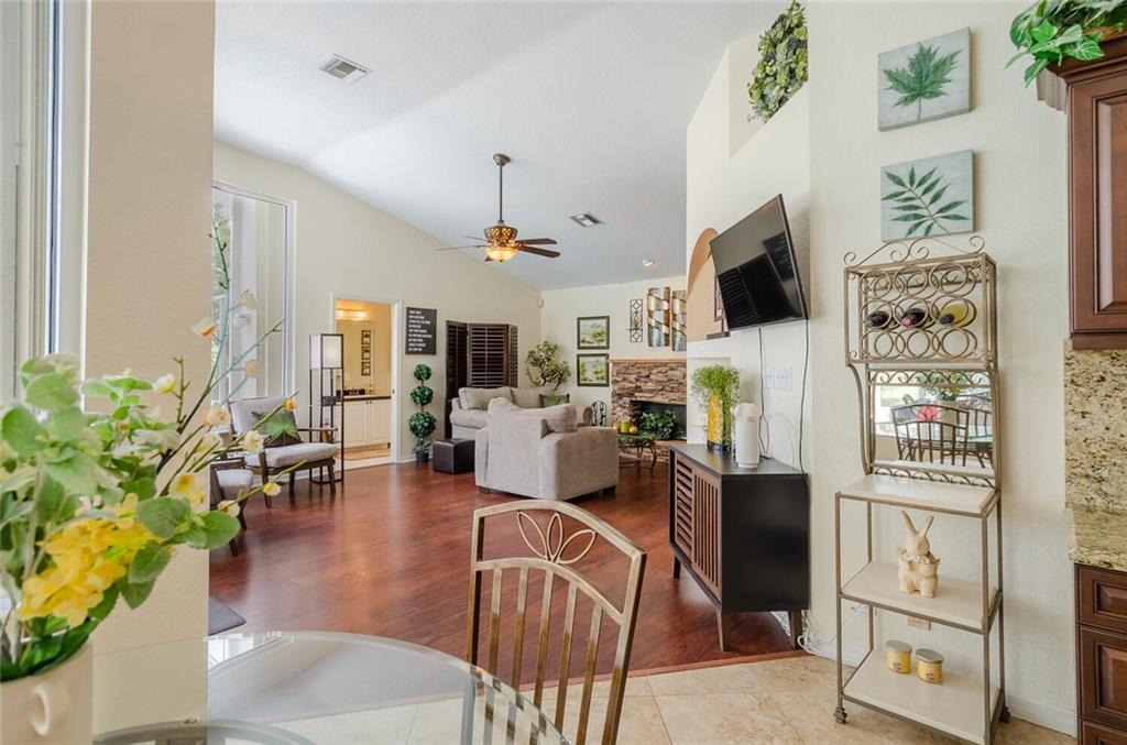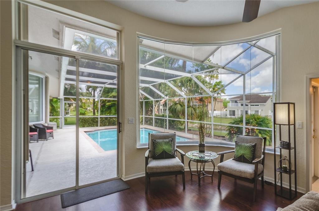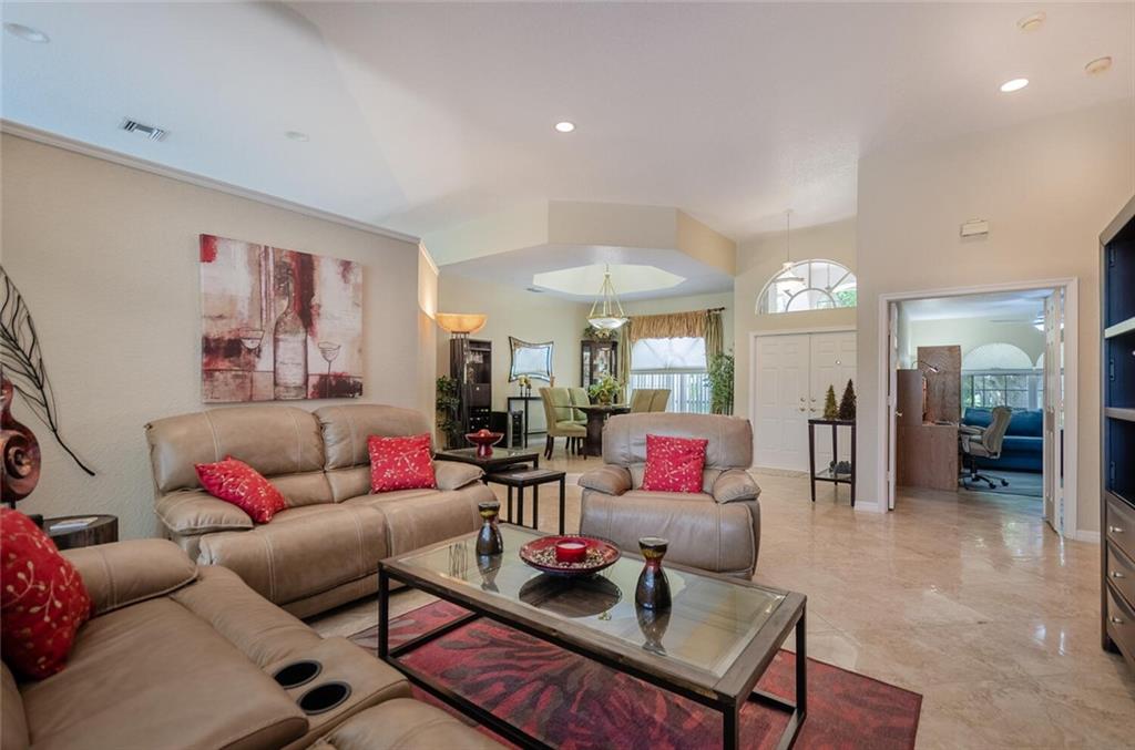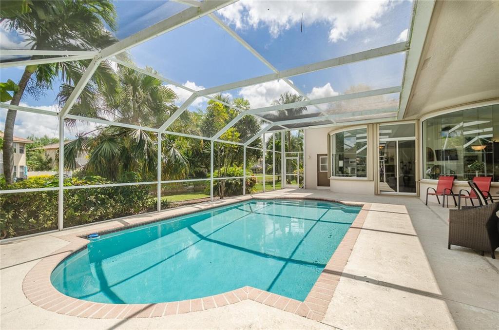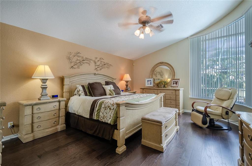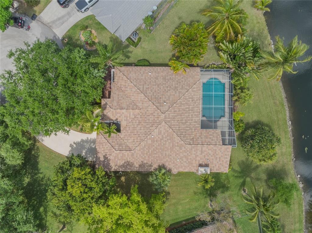 Within the gated Country Point Estates community, this .36 acre estate boasts a beautiful cul-de-sac, waterfront location! Desirable features include: split bedroom plan--MBR & BR2 split from BR 3 & 4; marble look tile throughout main living area & BR2, hardwood in MBR & BR 3; updated kitchen w/dark wood cabinets, granite counters & backsplash & stainless steel appliances, including double ovens; renovated bathrooms; butted glass windows in breakfast room, family room & MBR sitting area; stacked stone fireplace & wood-look floor in FR; NEW Rheem 4 ton a/c 2018, Rheem 50 gal. water heater 2018, & new Entegra tile roof 2016. Full house Accordion hurricane shutters! Fully screened spacious covered patio and expansive pool deck, providing stunning water views!