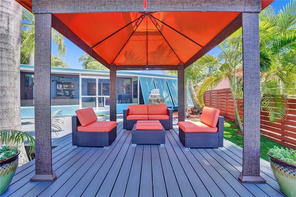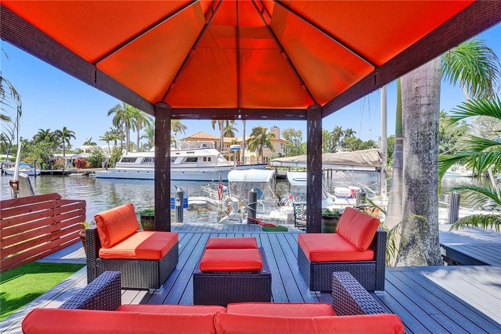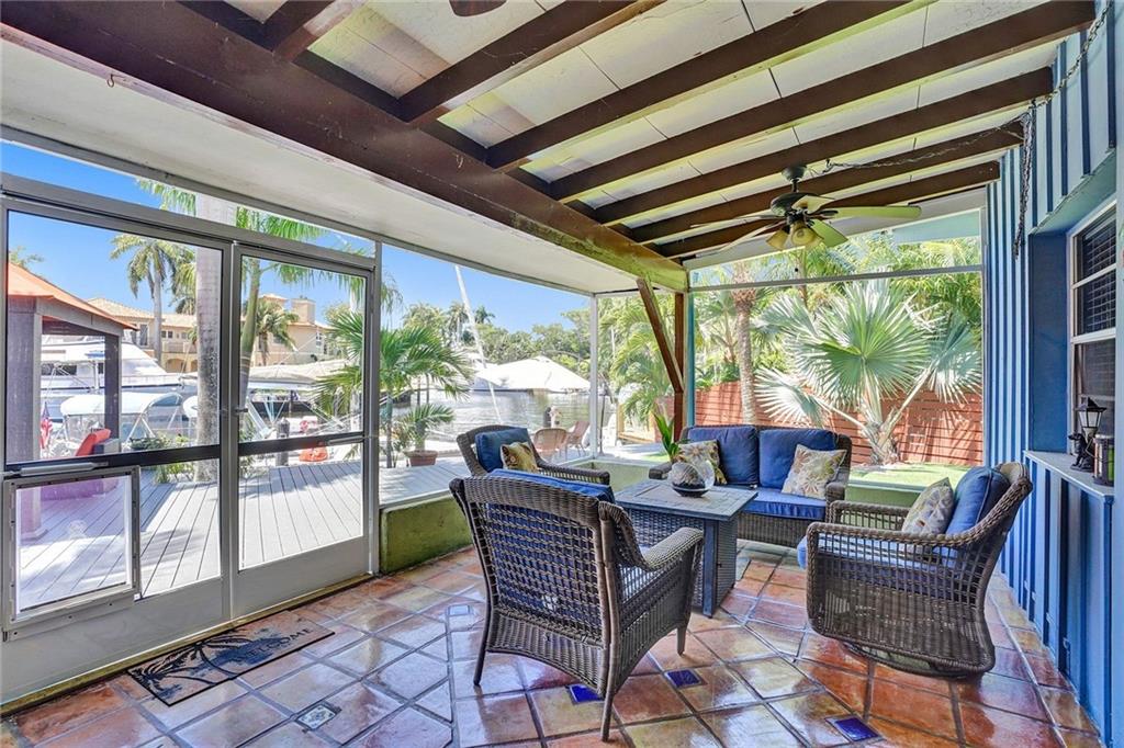 Tropical Waterfront Paradise on the North Fork of the New River in Sought After Sailboat Bend. Vaulted Exposed Beam Ceilings, Updated Open Kitchen, 2 Bedrooms Plus a Den. 2 Baths, with a Walk- in Steam Shower, & a Whirlpool bath. New commercial grade washer & dryer, tankless water heater. Big Screened Porch overlooking the River. The Back Yard Oasis has new turf(maintenance free)new Trex dock & deck(20yr warranty) New Gazebo.60 ft of Waterfront No Fixed Bridges. Secluded, Private Entry with Electric Gate, the home is set back 100+ft from the road w/paver driveway. Detached 357sf Garage. Feel like you stepped back in time to Old Florida while living minutes to all of the Downtown Ft Lauderdale Amenities. Walking Distance to the Performing Arts Center, Restaurants & Entertainment District