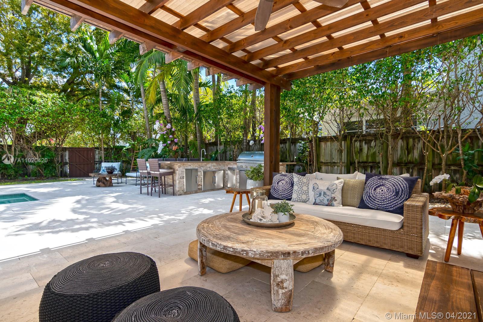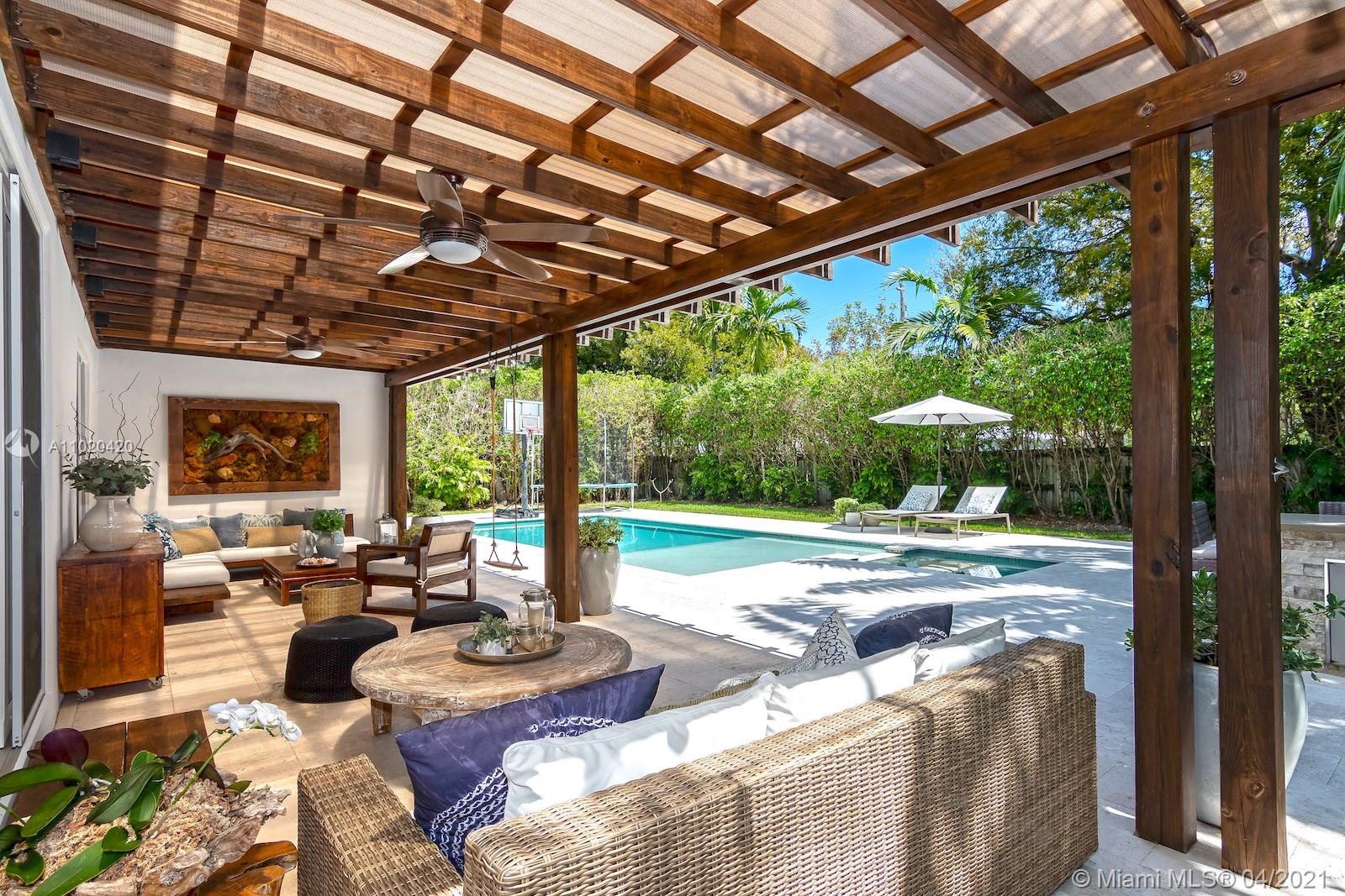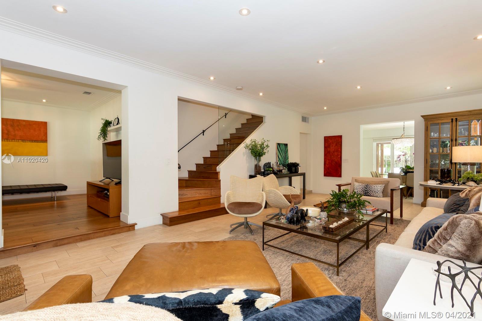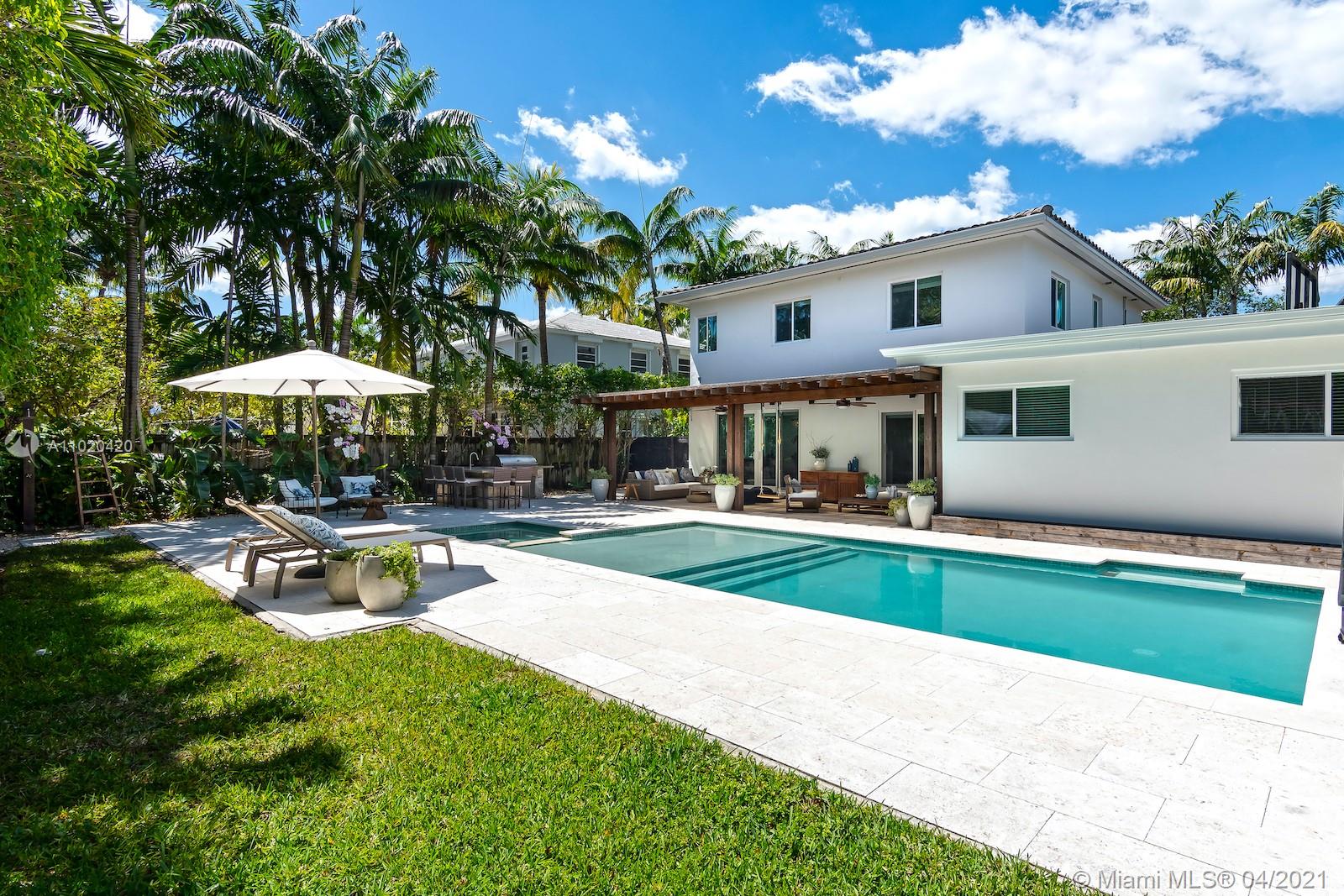 Stunning classic mid-beach home with modern elegance and mid-century architectural details. Two spacious master suites plus 3 additional large bedrooms and 4.5 bath. Elegant and bright with natural light, this home has original pristine terrazzo floors ac companied by hardwood and stone. Huge flow-through lot provides privacy to enjoy the large pool and spa. Updated, meticulously maintained and perfect for entertaining. Close to A rated schools, houses of worship and minutes from South Beach.
