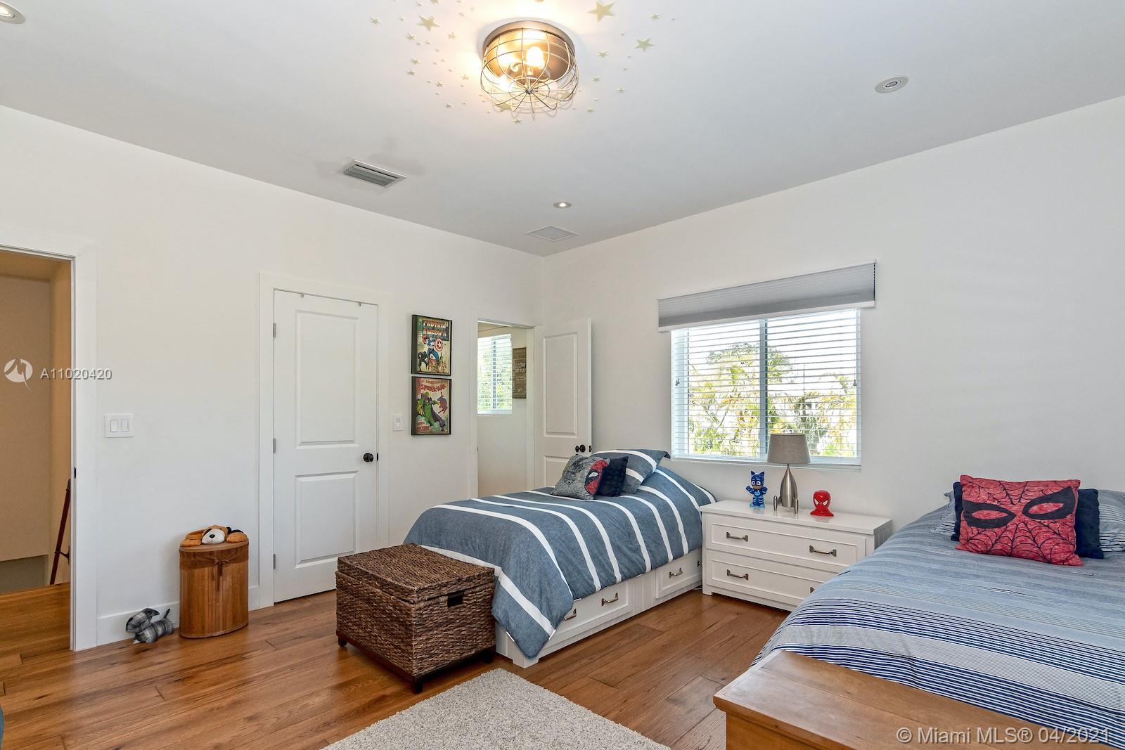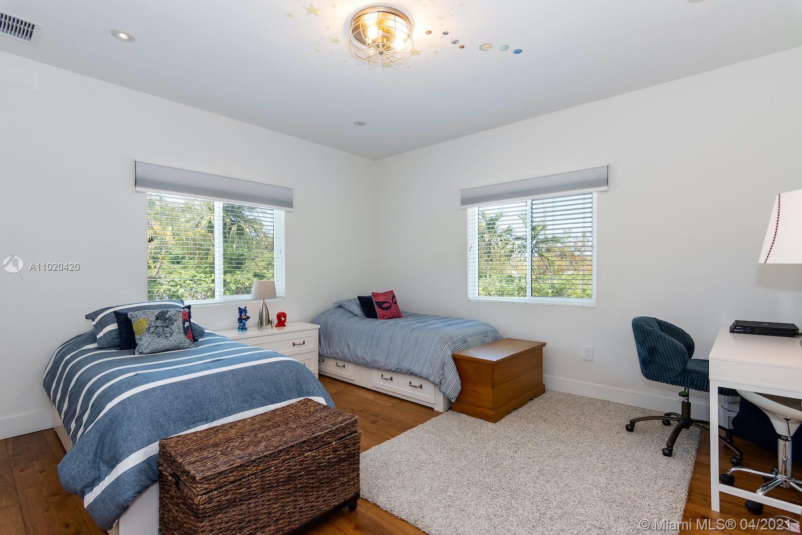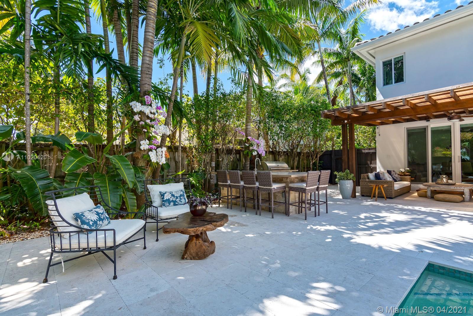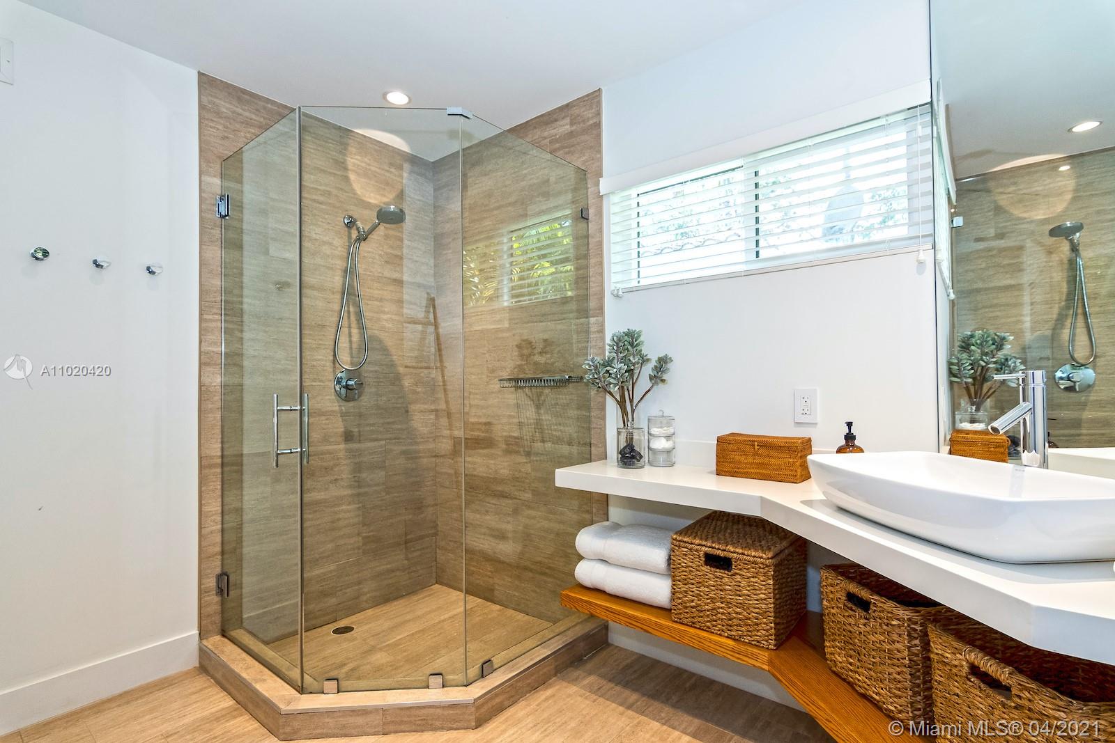 Stunning classic mid-beach home with modern elegance and mid-century architectural details. Two spacious master suites plus 3 additional large bedrooms and 4.5 bath. Elegant and bright with natural light, this home has original pristine terrazzo floors ac companied by hardwood and stone. Huge flow-through lot provides privacy to enjoy the large pool and spa. Updated, meticulously maintained and perfect for entertaining. Close to A rated schools, houses of worship and minutes from South Beach.