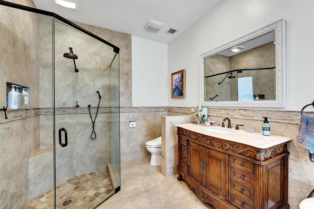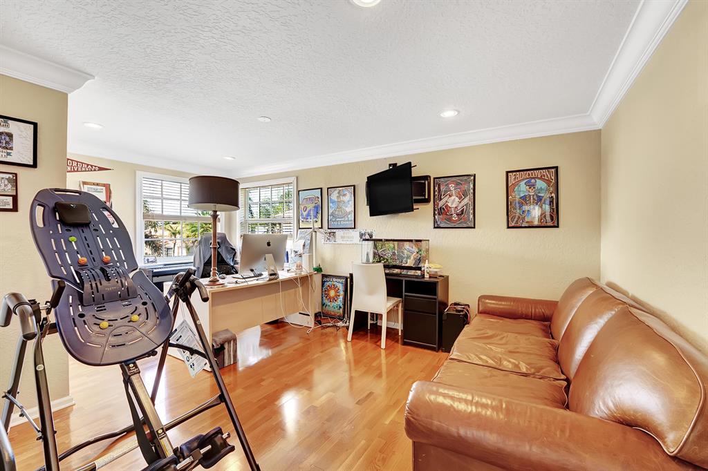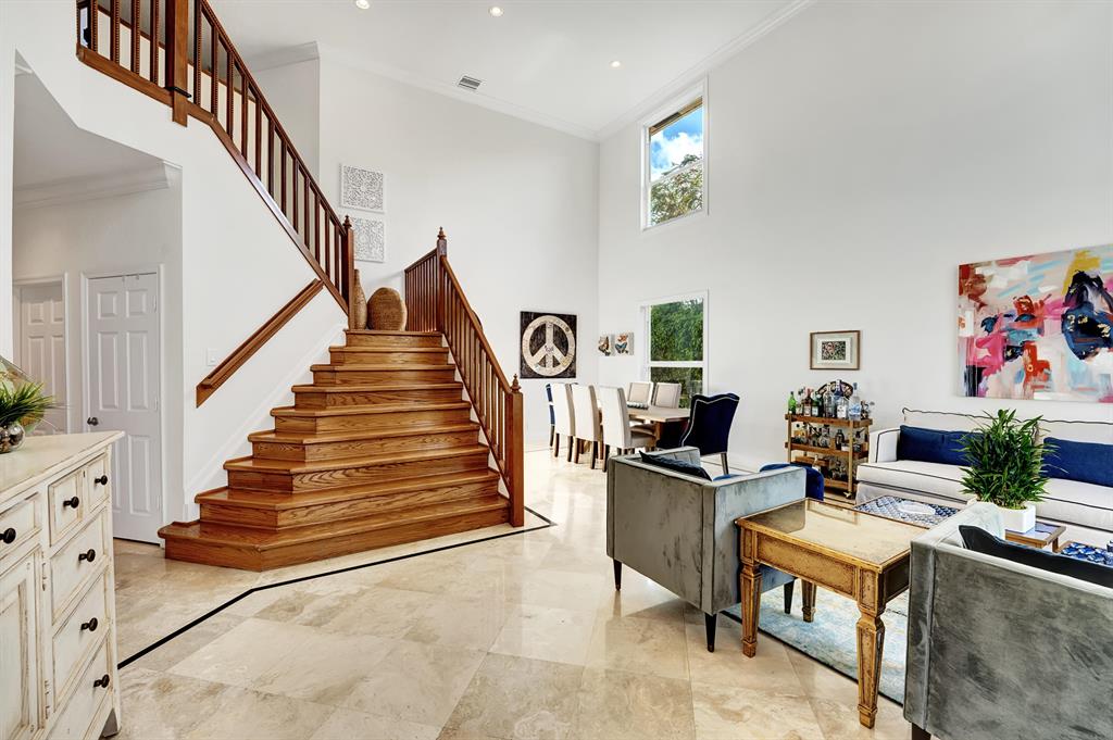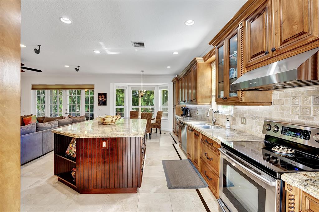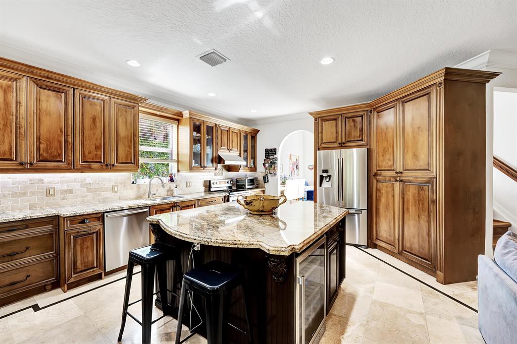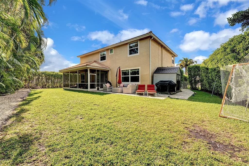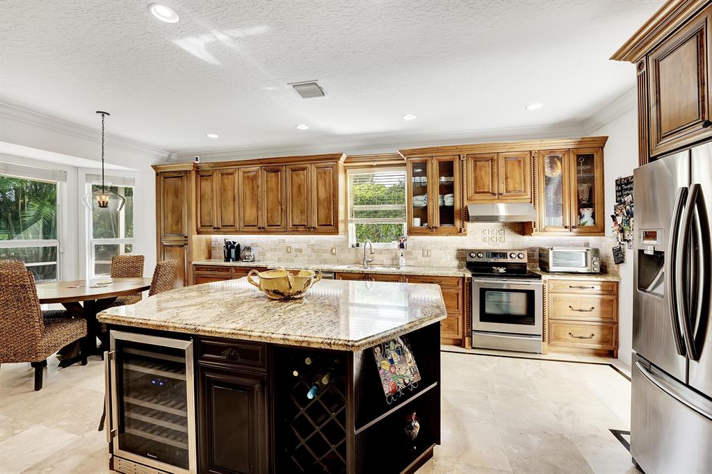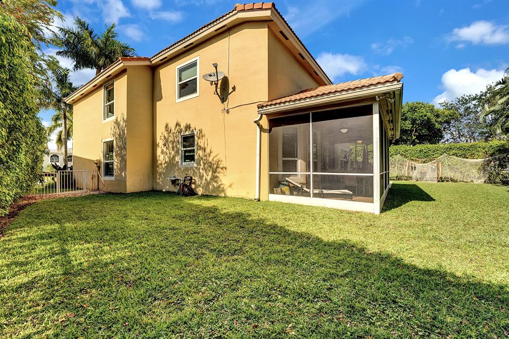 Situated on a cul de sac with an oversized private tree-lined backyard in Boca Raton's highly desirable gated Boca Falls neighborhood and sought after Emerald Pointe subdivision, this stunning two story upgraded popular Kingston Model, boasting over 3,300 sf with 5 bedrooms, has all the bells and whistles for the most discerning buyer. You are greeted by a soaring bright and airy two story entrance, gleaming marble floors, charming crown molding, hallmarked by a large custom eat-in kitchen with granite counters, abundance of wood cabinets, oversized island with wine fridge, stainless appliances, opening to the lushly landscaped private back yard, with a beautifully screened in patio, extended pavers and wood burning fire pit surrounded by a tropical paradise and plenty of room to add