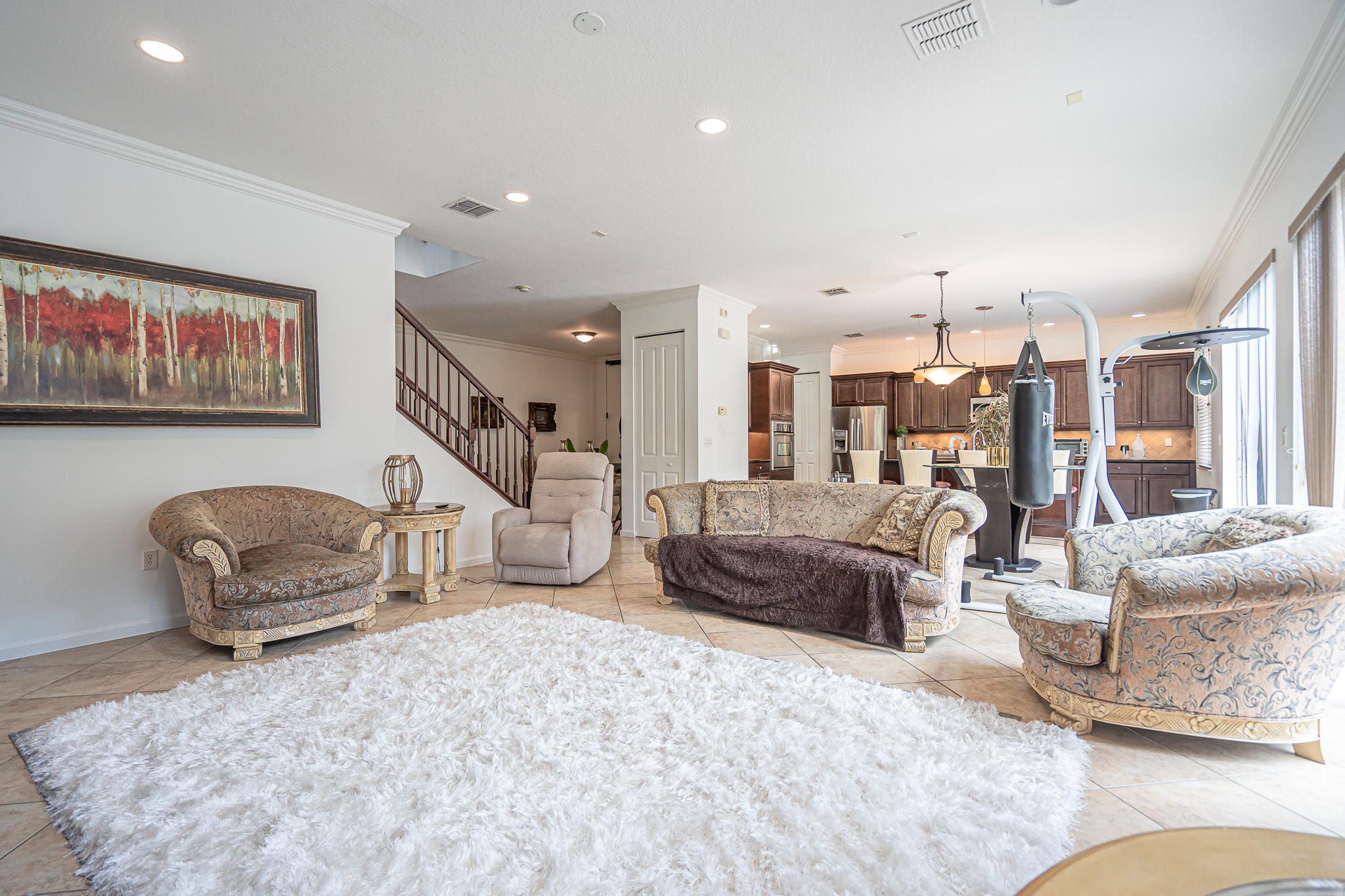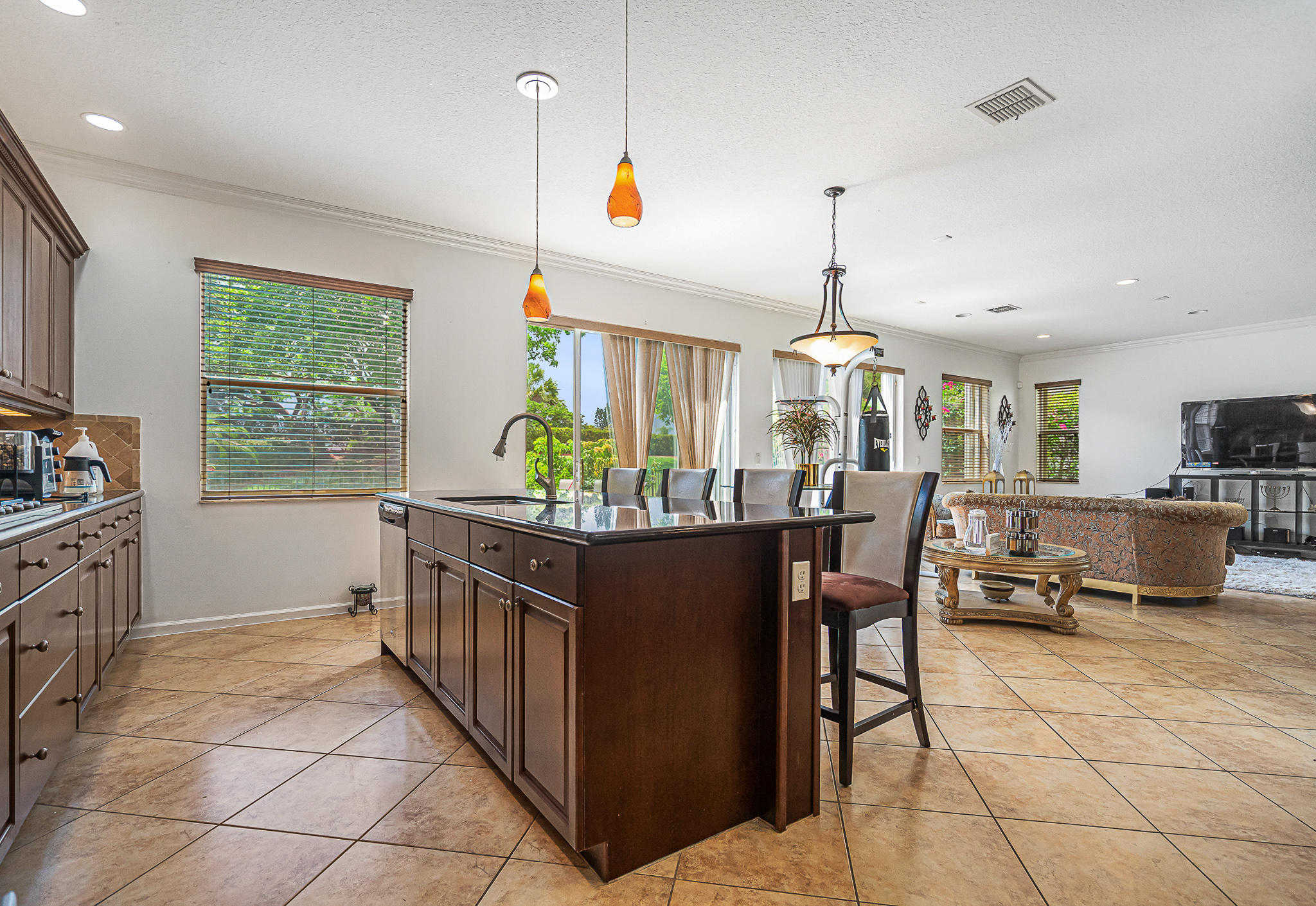Wonderful 4 bed, 3 ba with loft Waterfront Pool Home in Portosol! Prepare to be dazzled by the spacious layout and stunning pool view as you enter the foyer. The high-end crown molding continues downstairs. The formal dining room is elegant and includes a butler's pantry, making it ideal for entertaining and hosting dinner parties