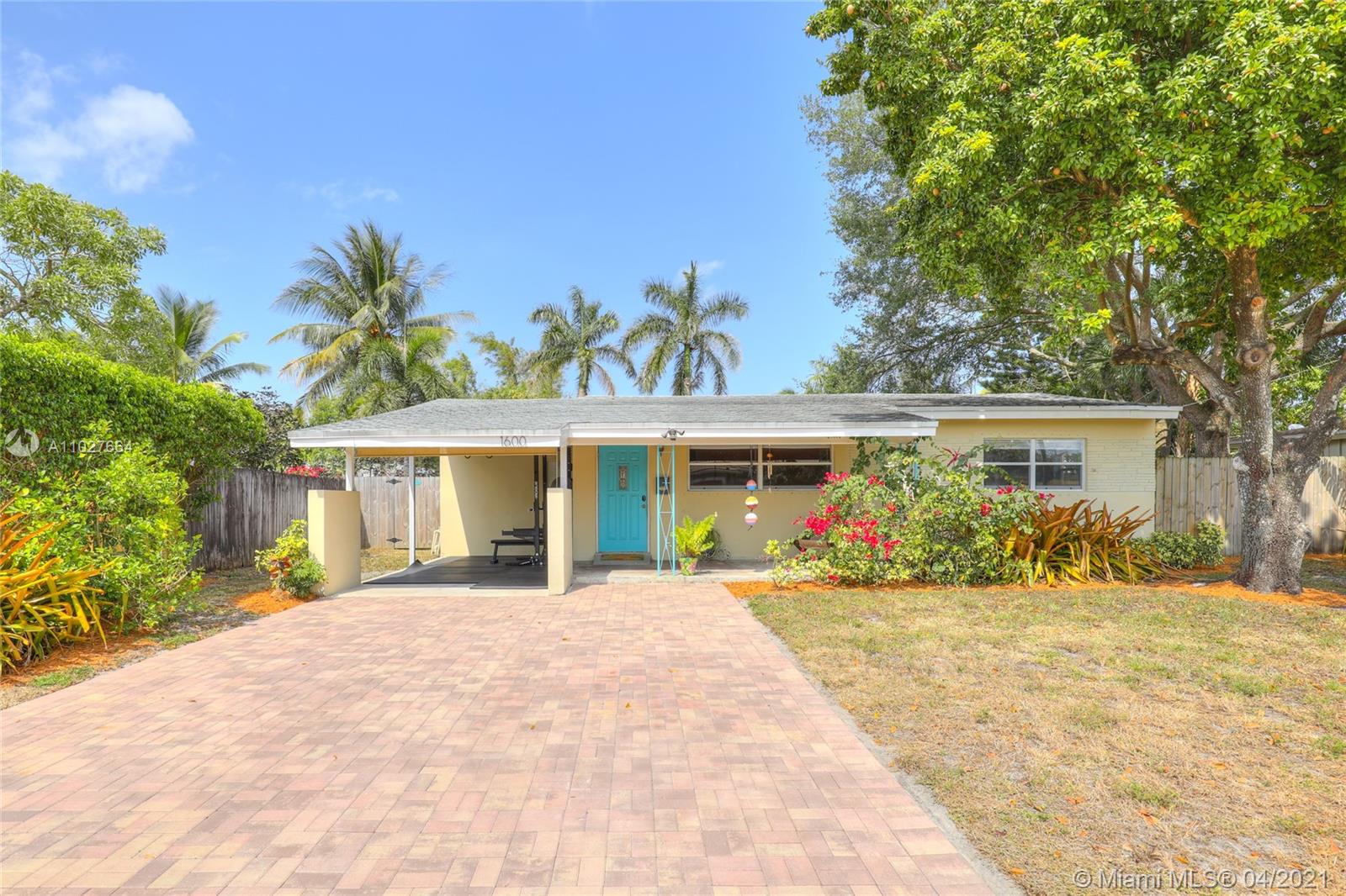 2 bedroom / 1 bathroom single-family home in Flamingo Park in Fort Lauderdale. Terrazzo floors throughout. Great updates: new roof 2017, bathroom renovated in 2020, A/C installed in 2017, water heater installed in 2020, washer and dryer installed in 2017, and electrical panel updated 2017. All new lighting fixtures and ceiling fans. Large backyard with enough space for a pool. Mature trees on the property. Carport and new driveway with space for 3 cars. Located in a dead-end street that is surrounded by canals with ocean access. Close to Fort Lauderdale Airport, I-95, I-595, and minutes to the beach.