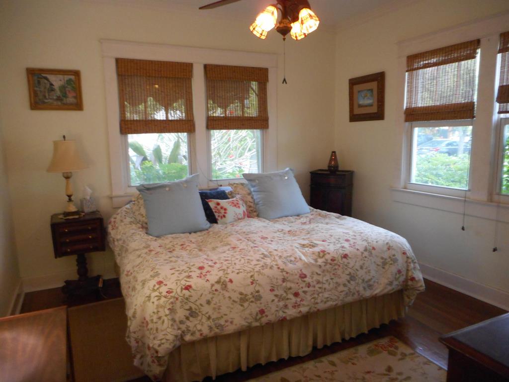 Charming historic Spanish mission style home with saltwater pool, hot tub, and lush back yard with Chicago brick patio. The house has wonderful features of arches, wood floors, wood-burning fireplace, French doors, crown molding, bamboo blinds - and updated electric, tankless gas hot water heater in house and gas hot water heater in cottage. The back building was built in 2004 housing a 1/1 cottage and storage area.