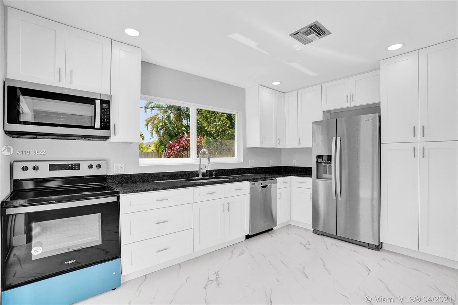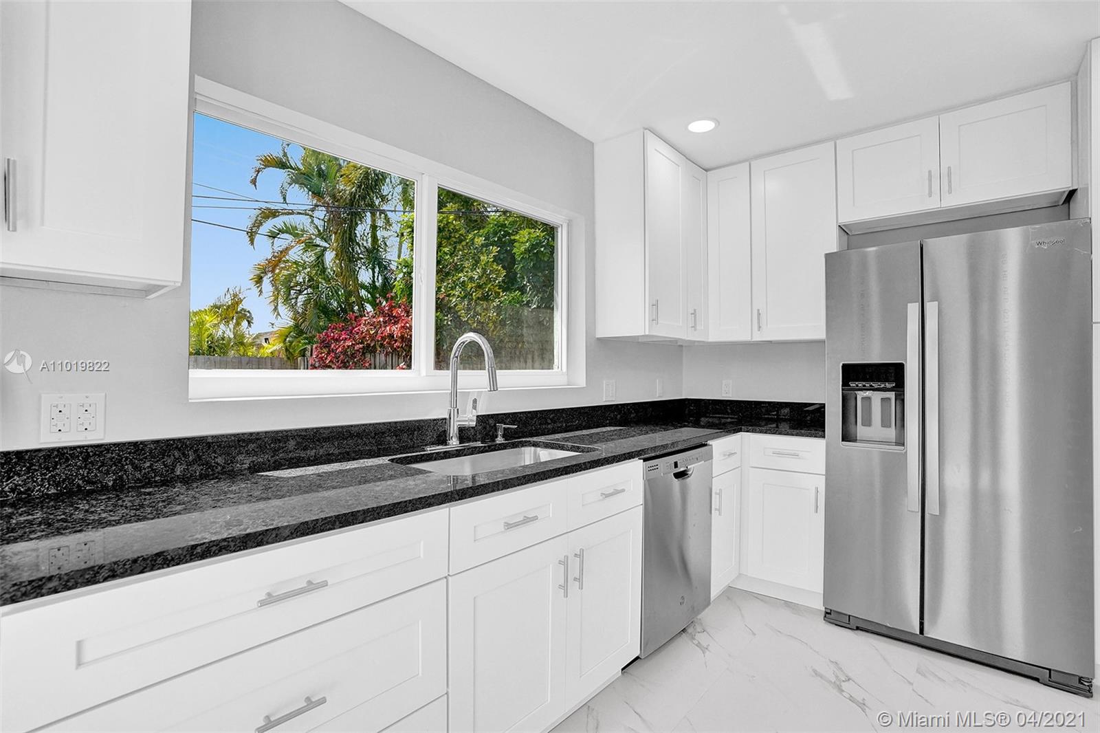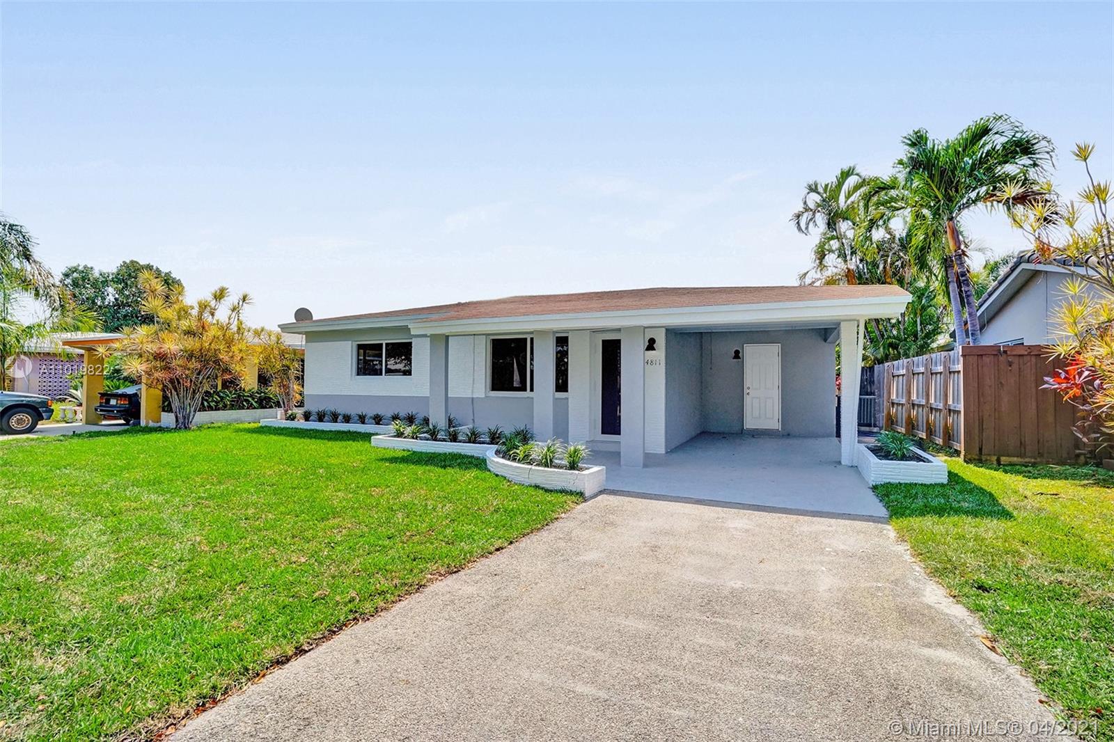 Newly renovated and properly permitted home in HOT North Andrews Gardens/Oakland Park. This BEAUTIFUL 2/2 home includes ALL new plumbing and electrical as well as new high impact windows & doors, custom bathrooms, new open kitchen with shaker cabinets and quartz countertops, high-end stainless steel appliances, and massive 24 x 48” tiles throughout home. New water heater and large separate laundry room with new washer & dryer. The landscaping and sprinkler systems have been newly installed as well. Newer roof and AC unit. Large, fenced in yard with patio. Plenty of room for pool. The home is move-in ready. Perfect location for rental opportunity or starter home. This home will not last.