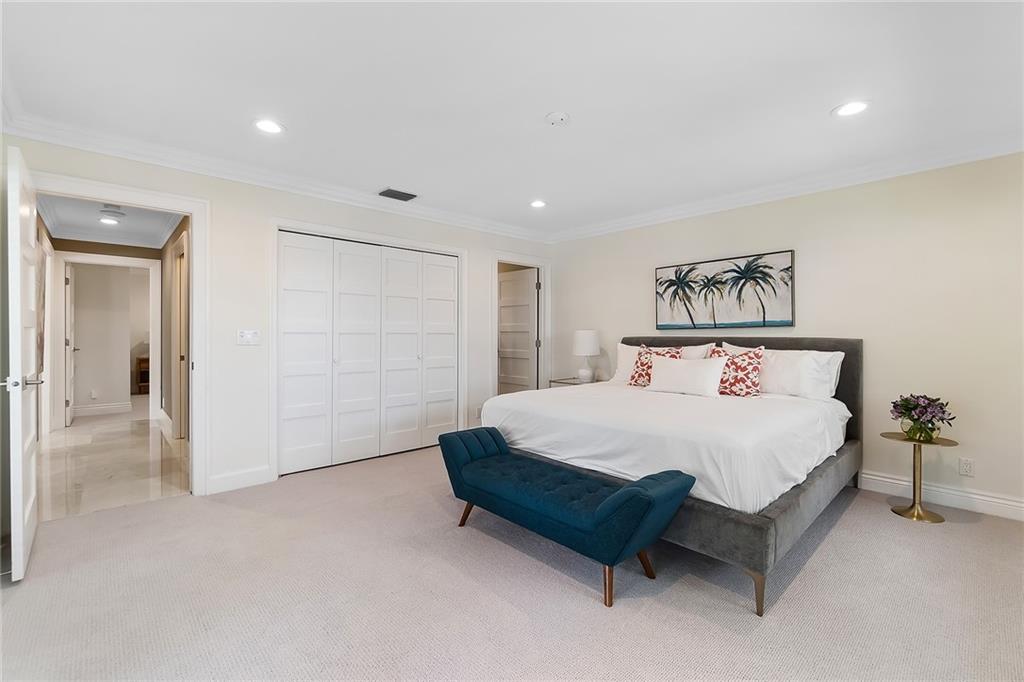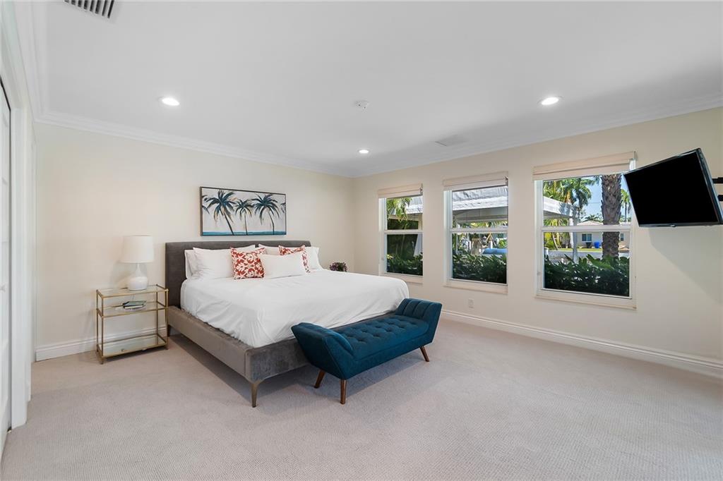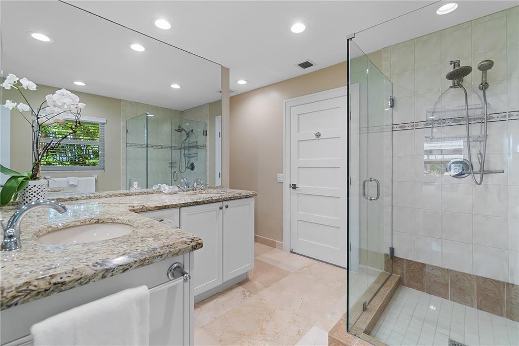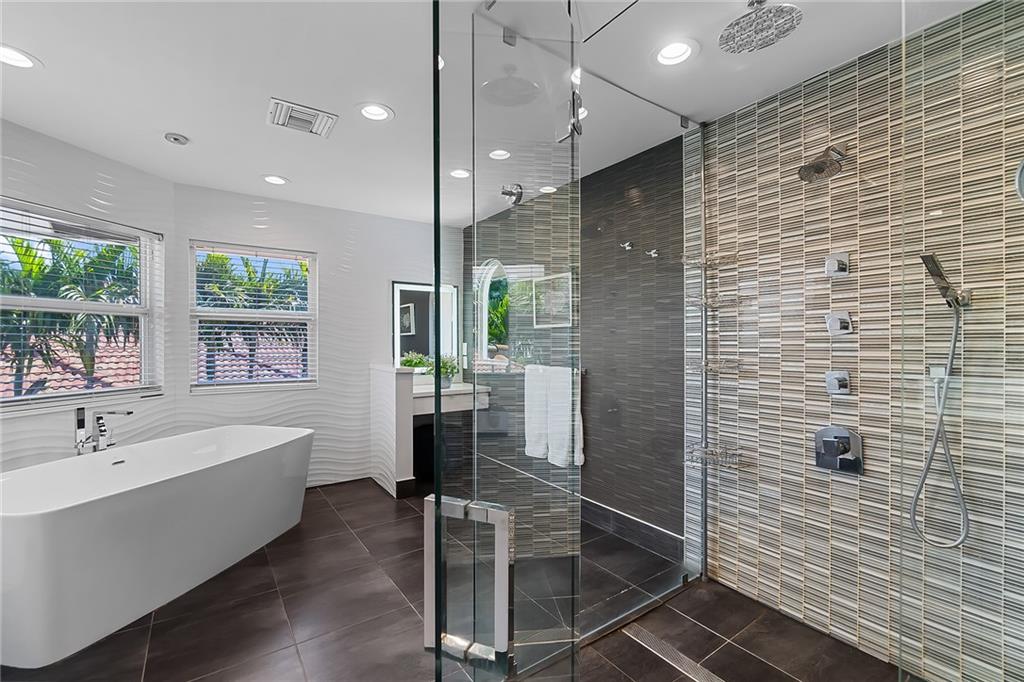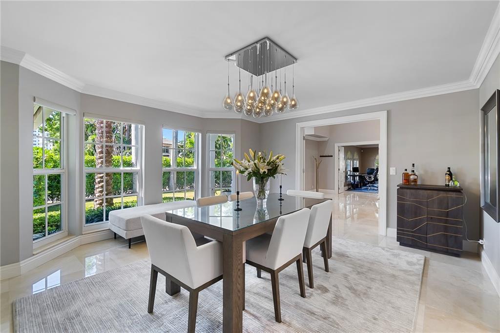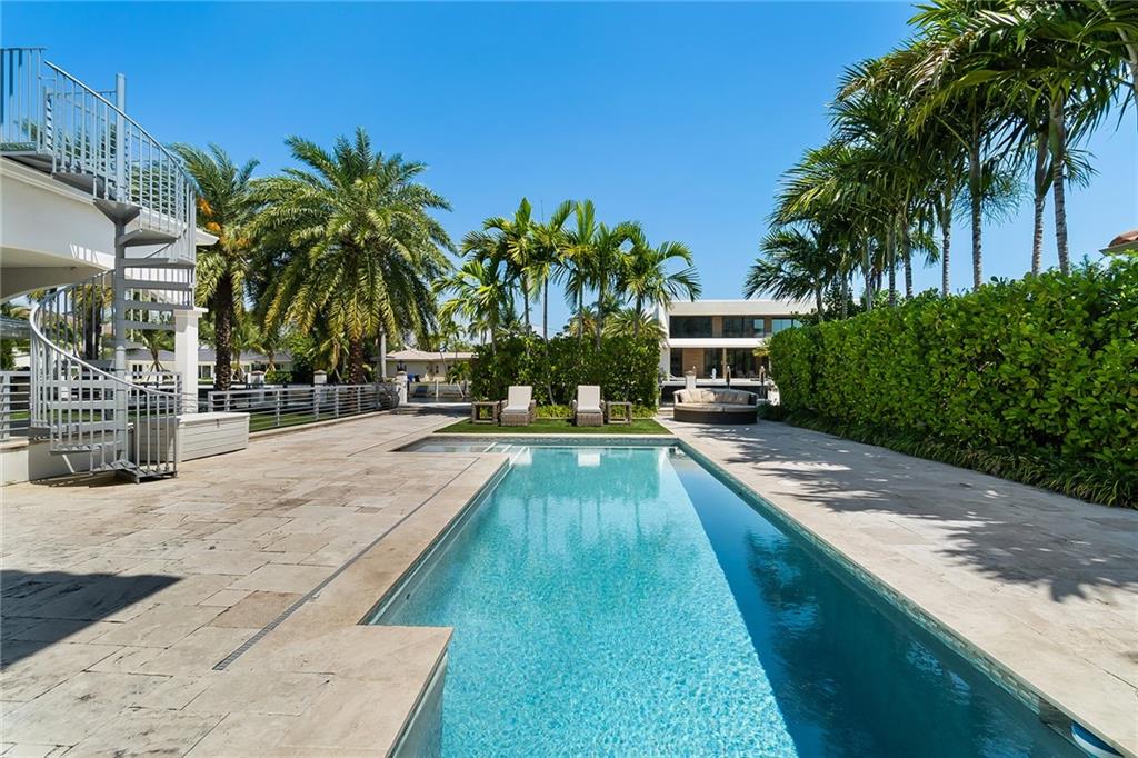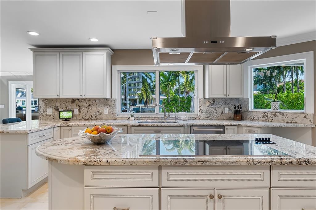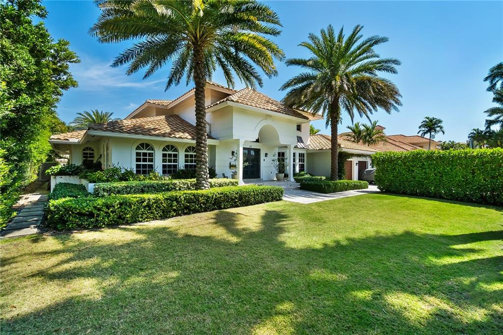 Beautifully remodeled home located on an oversized waterfront lot in the prestigious secure & guarded Seven Isles community. This home offers a bright and open floor-plan, large open kitchen features include double oven, Island with cooktop & hood and eat in area! Separate formal dining room, 3 bedrooms on first floor, one currently used as home office, master suite on second floor with huge closet, French doors to a private roof top terrace, and a spa like master bathroom. Additional en-suite bedroom on second floor. An oversized great room with double set of French doors opening to a fabulous covered patio, stunning pool area including an outdoor summer kitchen with a new 100ft dock/seawall with a 12000 lb boat lift!! Lushly landscaped for privacy with Pool and water views thru-out home!