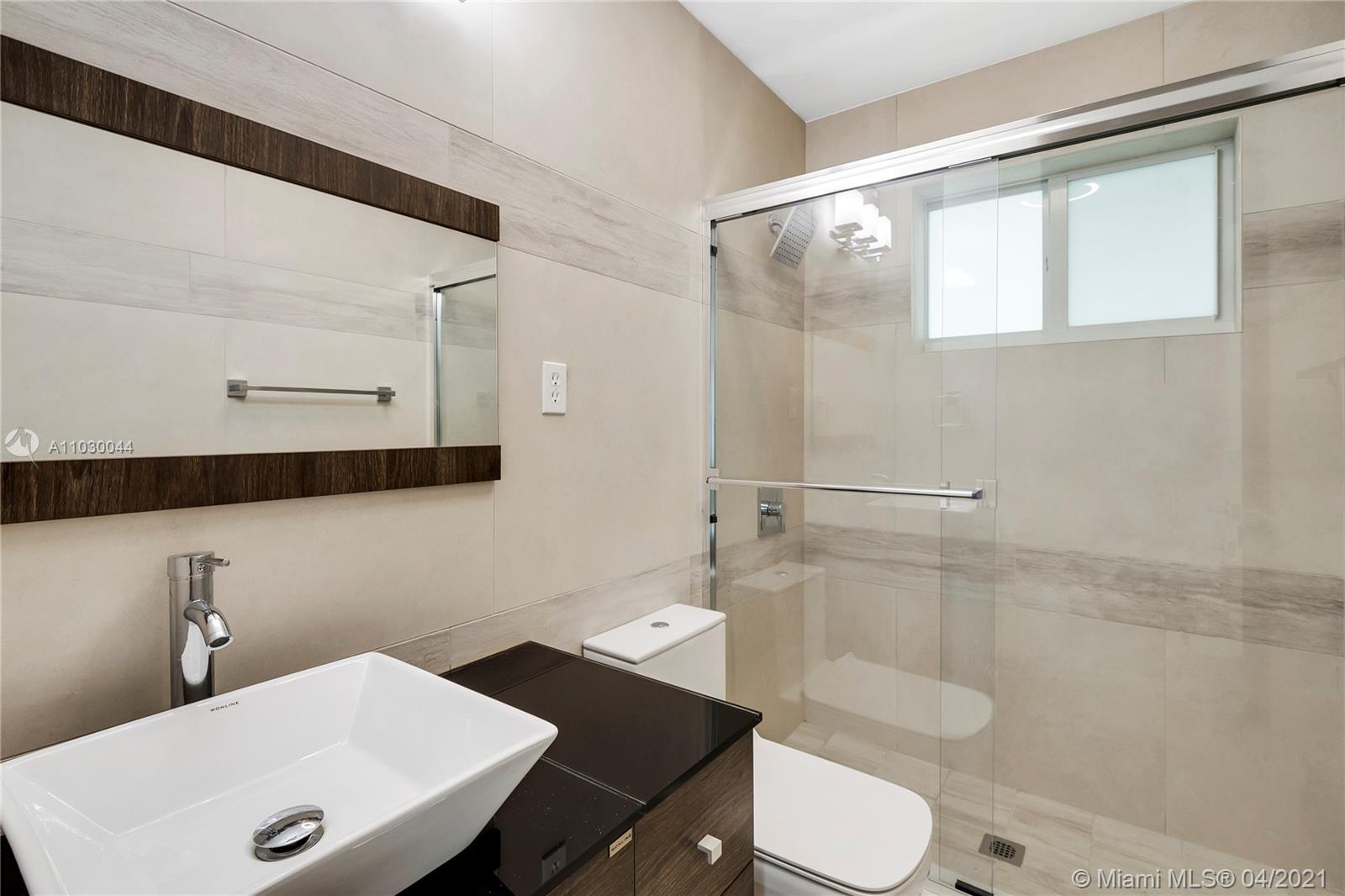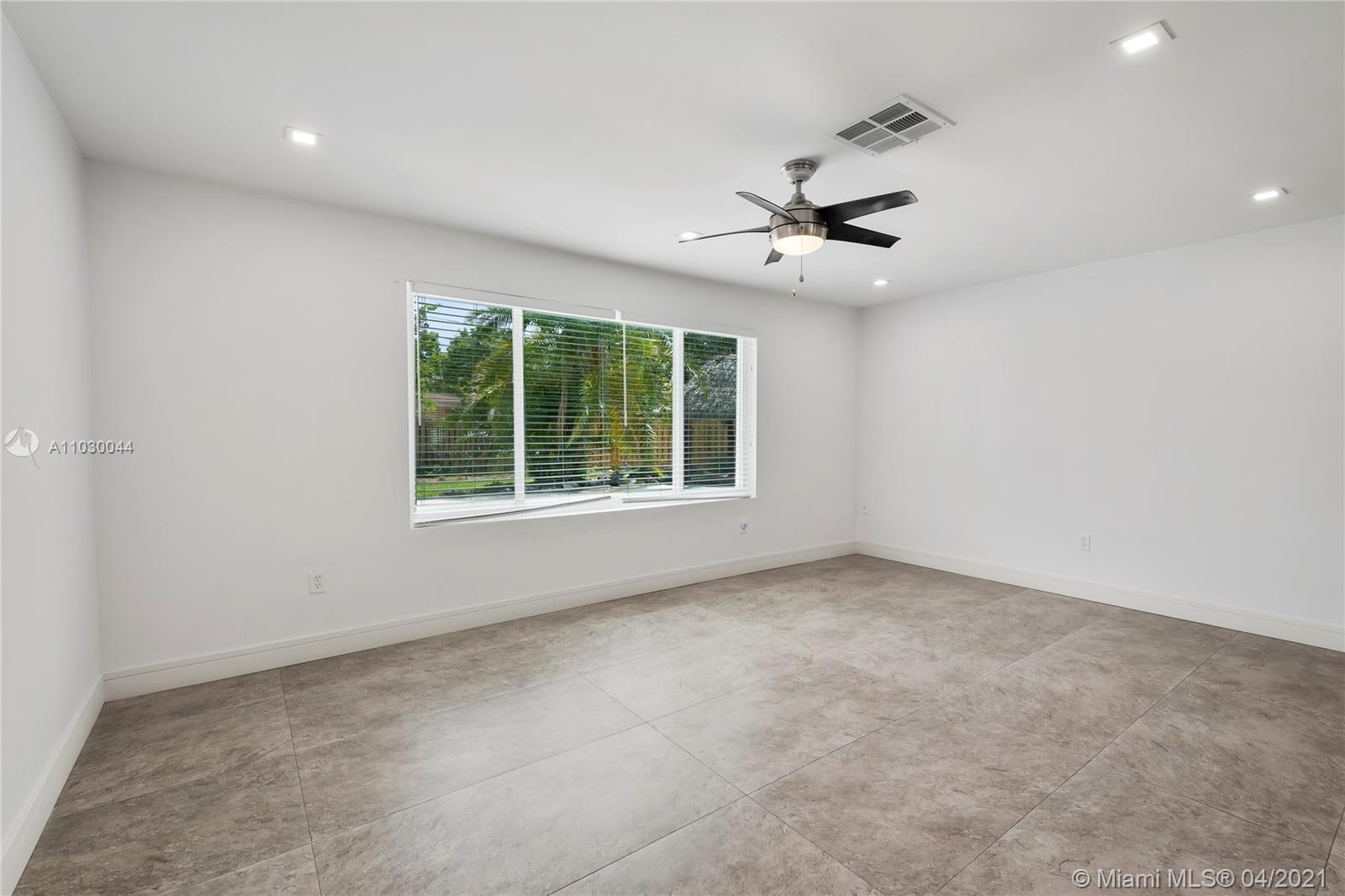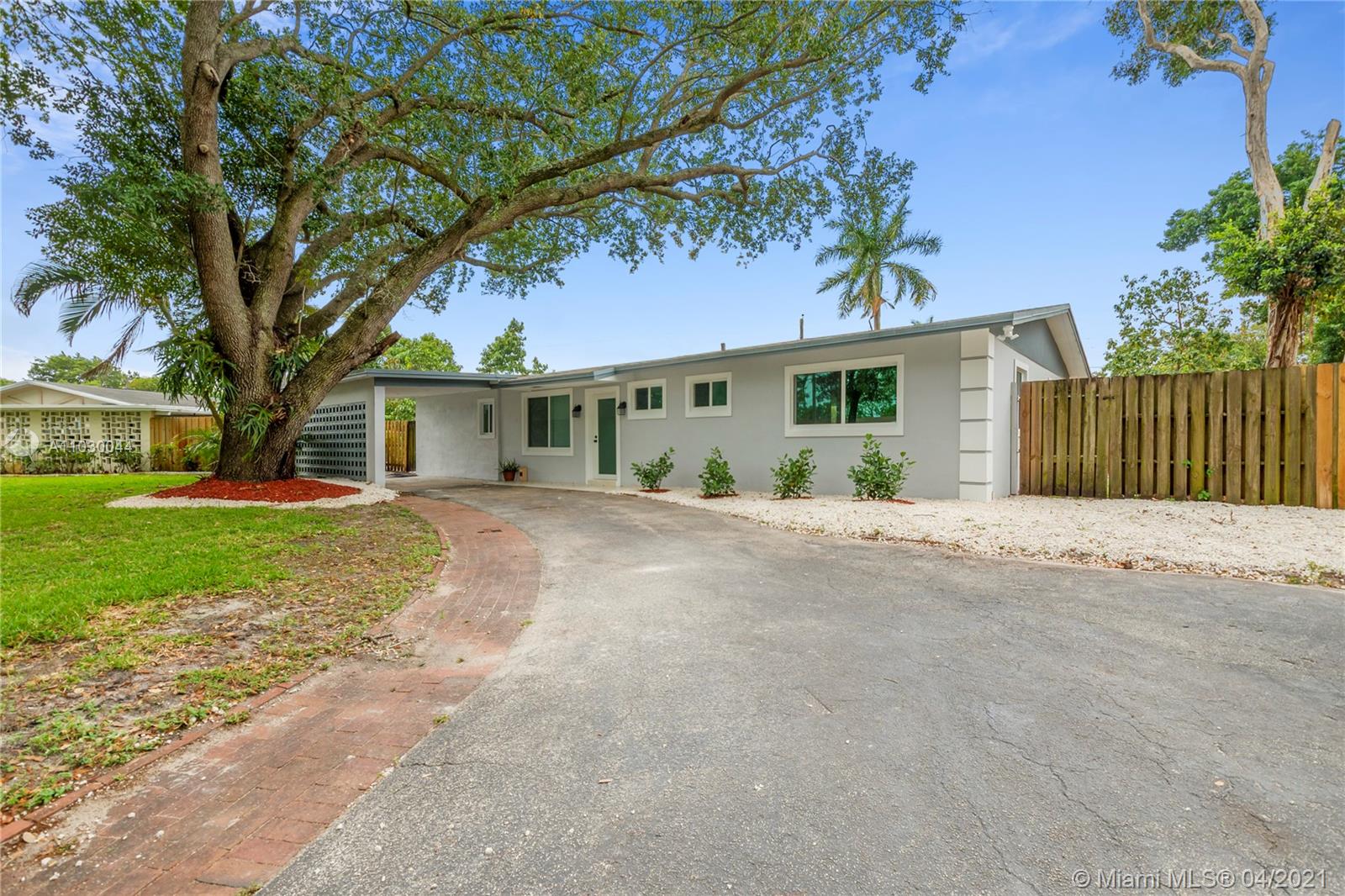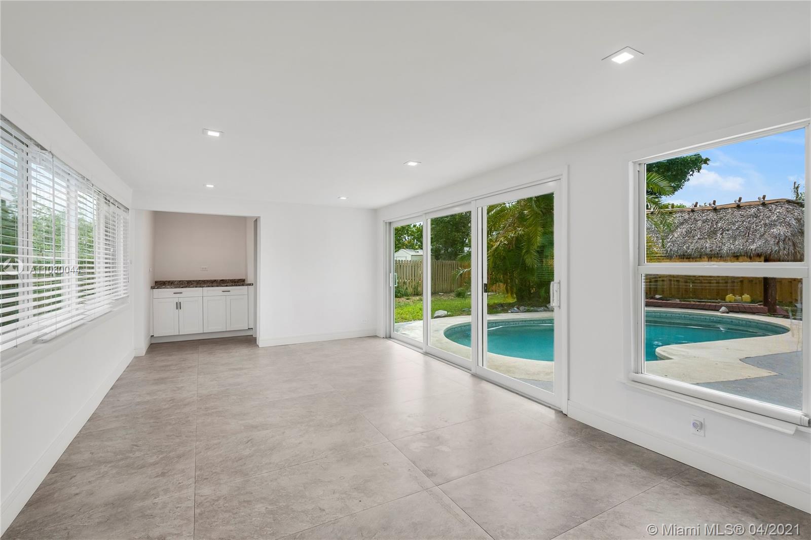 Contemporary 3/2.5 pool home! This home has been tastefully remodeled w/no expense spared. Newer roof, Hurricane impact doors & windows. Freshly painted inside & outside. recess lights throughout the home. New floors 24x48 inch rectangle porcelain tiles in all living areas. New kitchen with high end cabinets, granite counters, matching back splash new appliances. Smart refrigerator, washer & dryer*** New bathrooms offering modern high end tiles fixtures & vanities, w/blue tooth stereo speakers, perfect for long showers. Back yard oasis with a large pool & cabana bath, & a tikki hut prefect to entertain! Fantastic curb appeal. True move in ready must see!