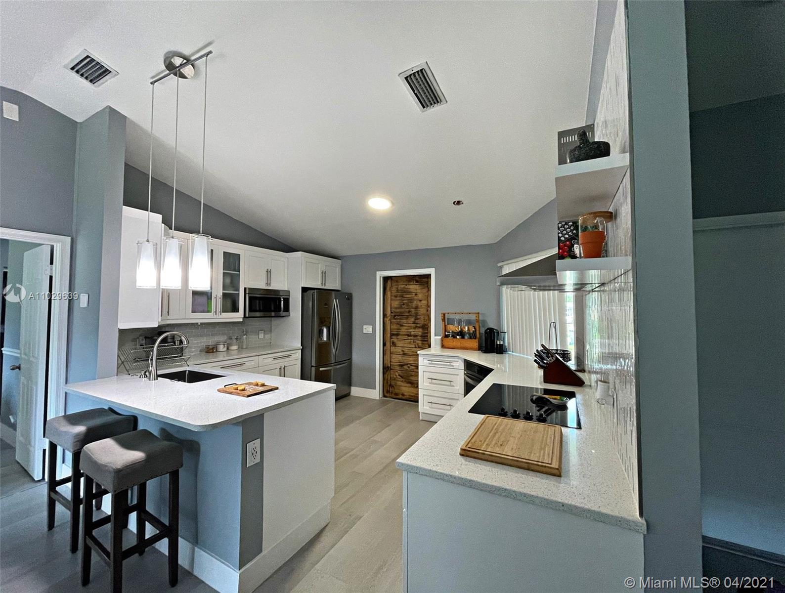 Beautiful spacious 4 bed 2 full bath single family home with a split floor plan. New Laminate floor and fresh paint throughout the home. Beautifully updated 4 BR/2 BA home with no HOA. Added impact glass throughout the home. Master bath updated with custom tile shower and rainfall showerhead w/separate handheld unit. Bright and open updated Kitchen, new oven, cooktop, sink, and dishwasher. Separate big entertainment space/family room and spacious backyard.