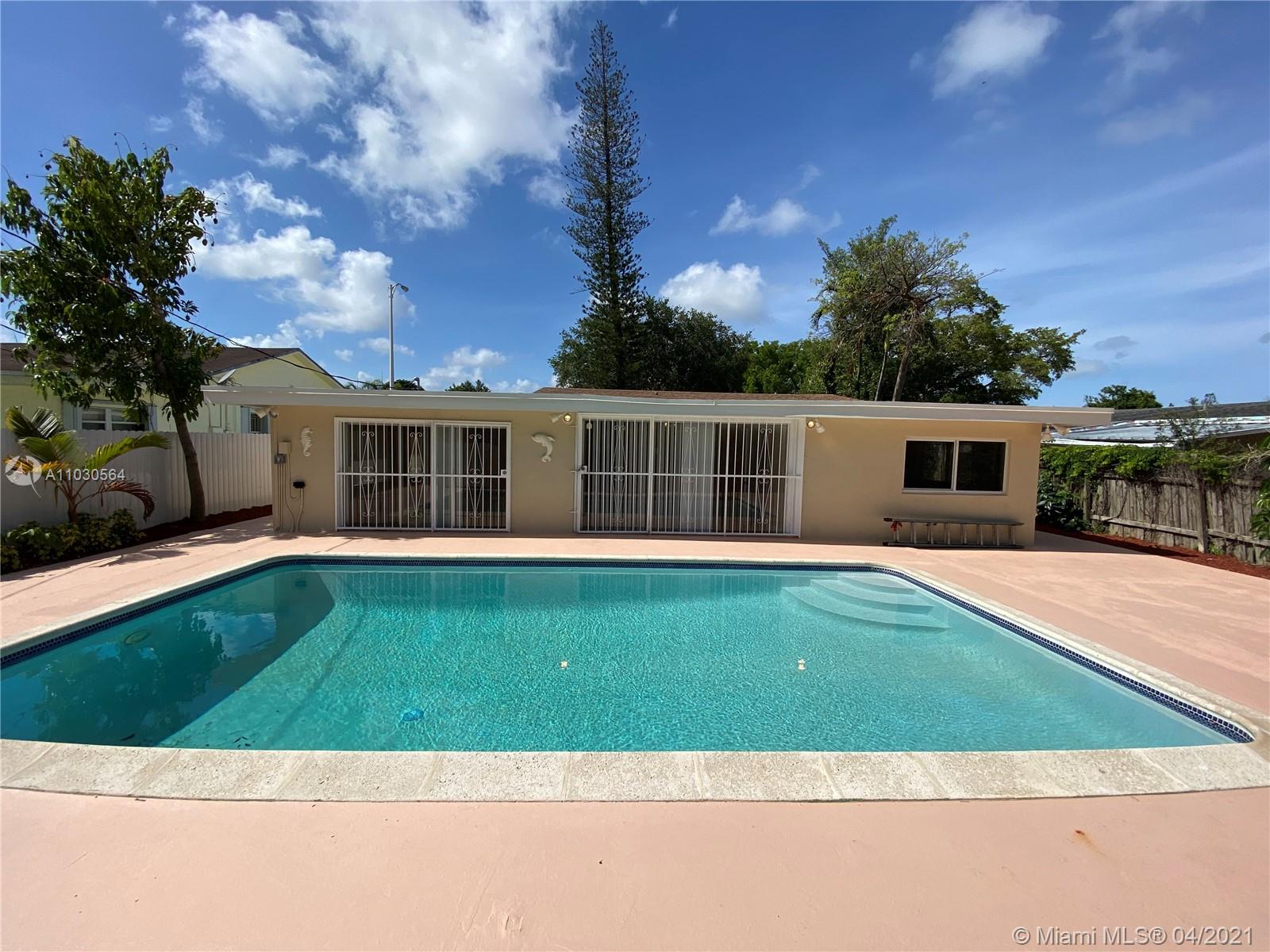 4 BEDROOMS, 2 BATHROOMS, WITH POOL, INCLUDES IN-LAW-QUARTERS WITH BEDROOM AND SEATING AREA AND NEWLY CONSTRUCTED BATHROOM. NEW ROOF IN 2021. NEW KITCHEN CABINETS WITH GRANITE COUNTER TOPS AND STAILESS STEEL APPLIANCES, CENTRAL A/C, IMPACT FRONT WINDOWS AND FRONT DOOR. ALL IMPROVEMENTS ARE REFLECTED IN THE CLOSED MASTER PERMIT. AWAITING UPDATE BY COUNTY APPRAISERS OFFICE TO REFLECT > ACTUAL LIVING AREA 1,788 SQ.FT.<, 4 BEDROOMS, 2 BATHROOMS. CIRCULAR DRIVEWAY, FENCED.