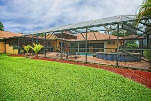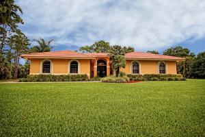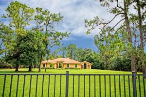 In Palm Beach Farms, this stunning estate home is on 3+ dry acres yet close to everything. Easy access to Turnpike, I-95 and PBI airport, and only 9 miles from CityPlace. On a corner lot with a beautiful ornate metal electric gate in the front entrance, and a separate side utility entrance; ideal for equestrian and/or agricultural use. Beautiful wood & iron double doors compliment the classic Mediterranean architecture with high ceilings throughout. With 4 bedrooms (2 of which are Master Suites) plus a den/office & 3 full baths, there is an abundance of space. The kitchen is fully appointed with custom wood cabinets, granite counters, stainless steel appliances and plenty of storage space. There is a convenient breakfast area as well as formal dining room.