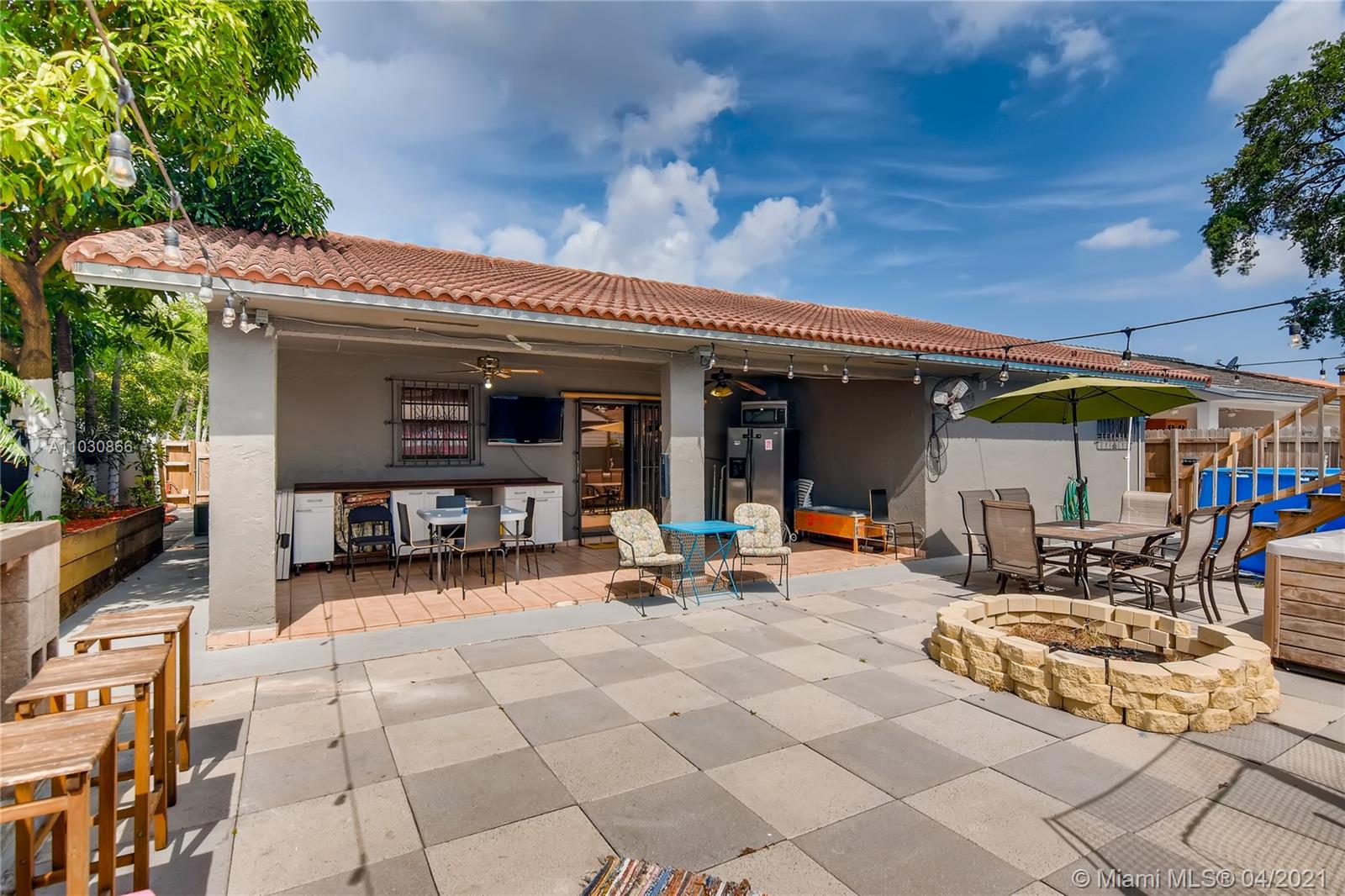 Wonderfully maintained home featuring 3 bedrooms plus Den (can be turned into a 4th bedroom) & 2 baths. Great backyard has it all for entertaining! Covered terrace, above ground pool, jacuzzi, Bar & fire pit Garage has side door for private entrance through the patio, currently being used as office. Owner can remove wall if buyer wants to use as a garage or it can likely easily be turned into an efficiency (washer and dryer located inside garage). Lots of space for parking & located on a quiet dead-end street. Minutes away from the Gratigny Parkway, 826, walking distance to shops & near Miami Lakes. Great school district! Roof is 12 years old