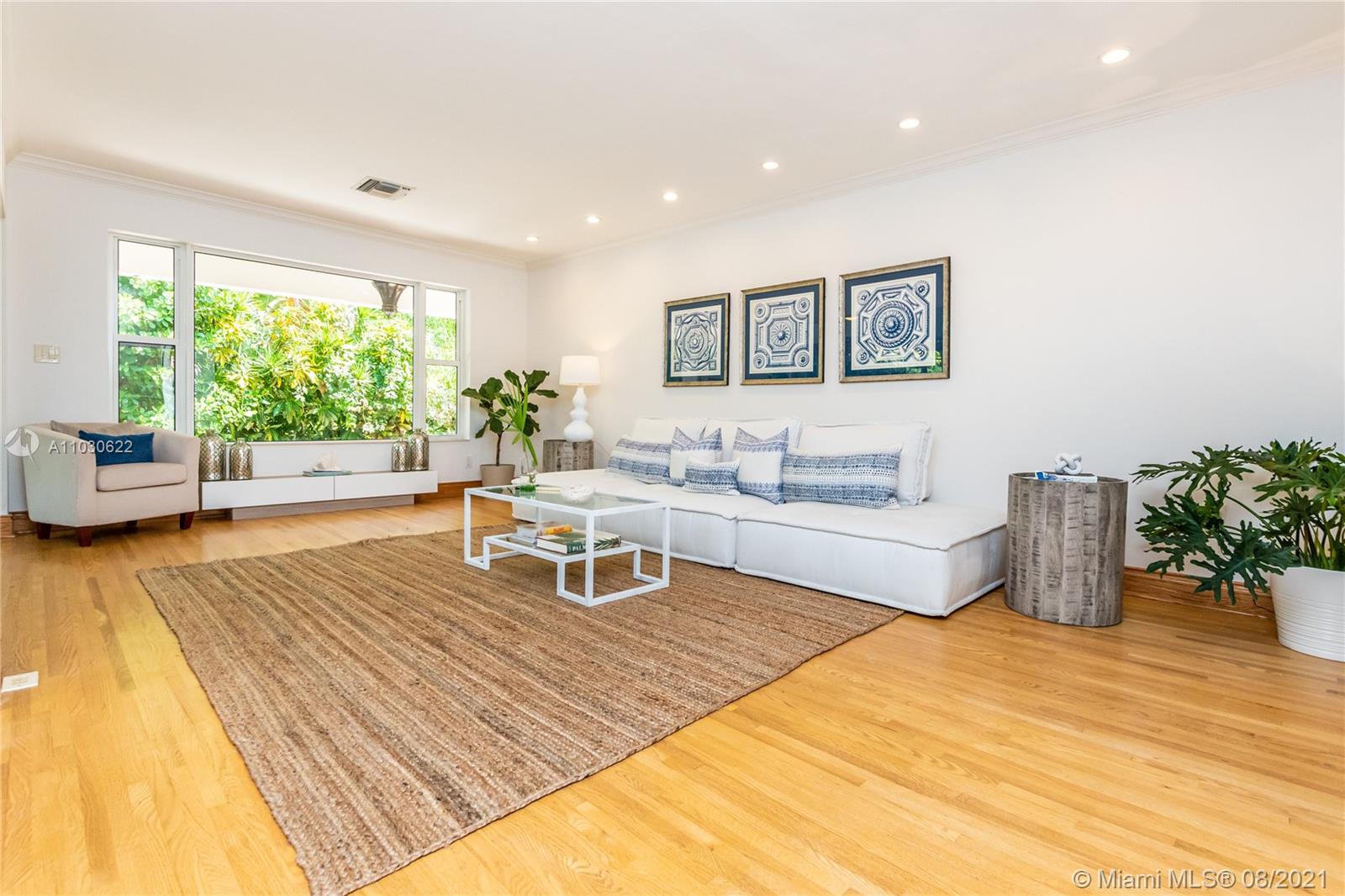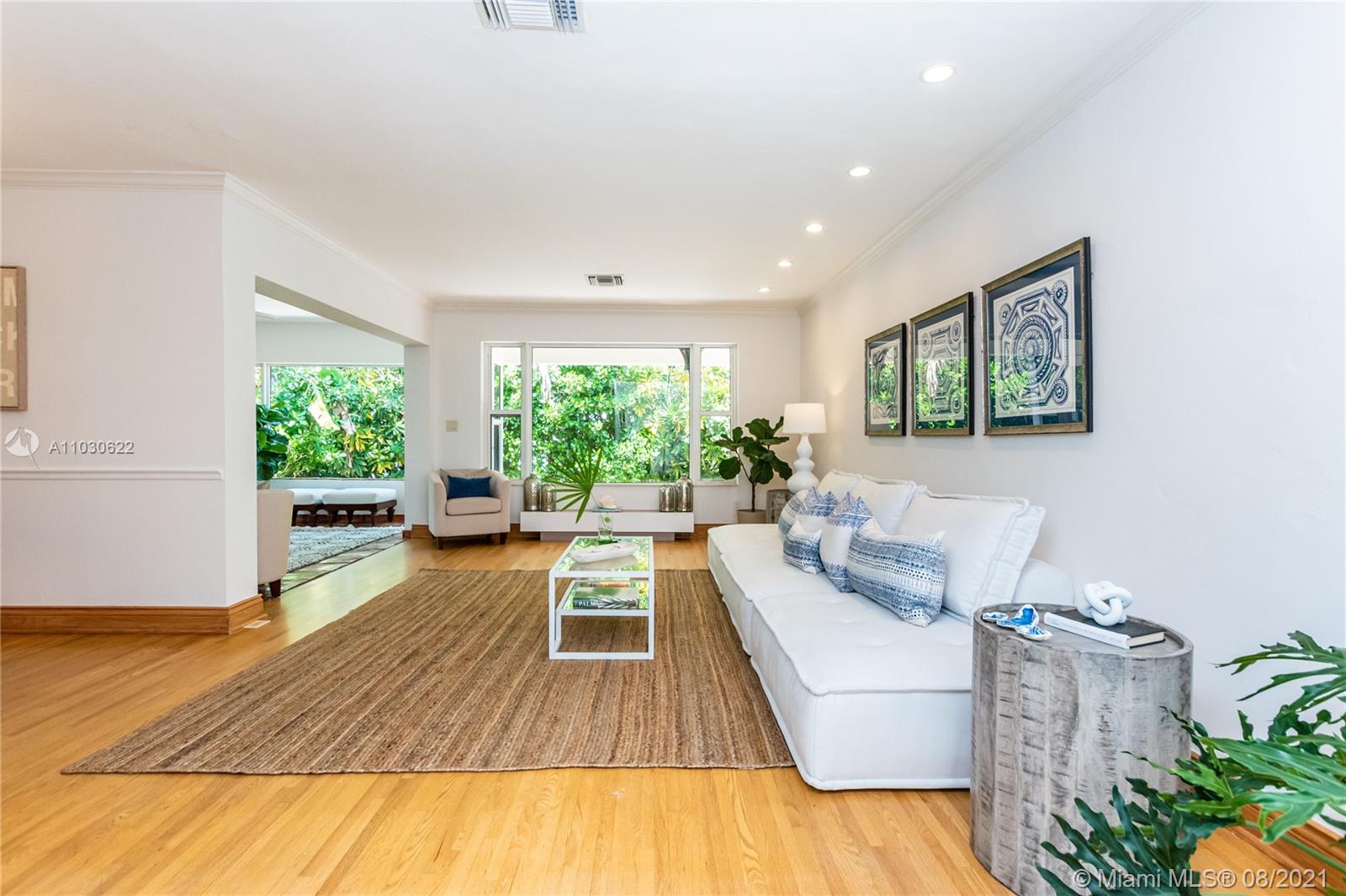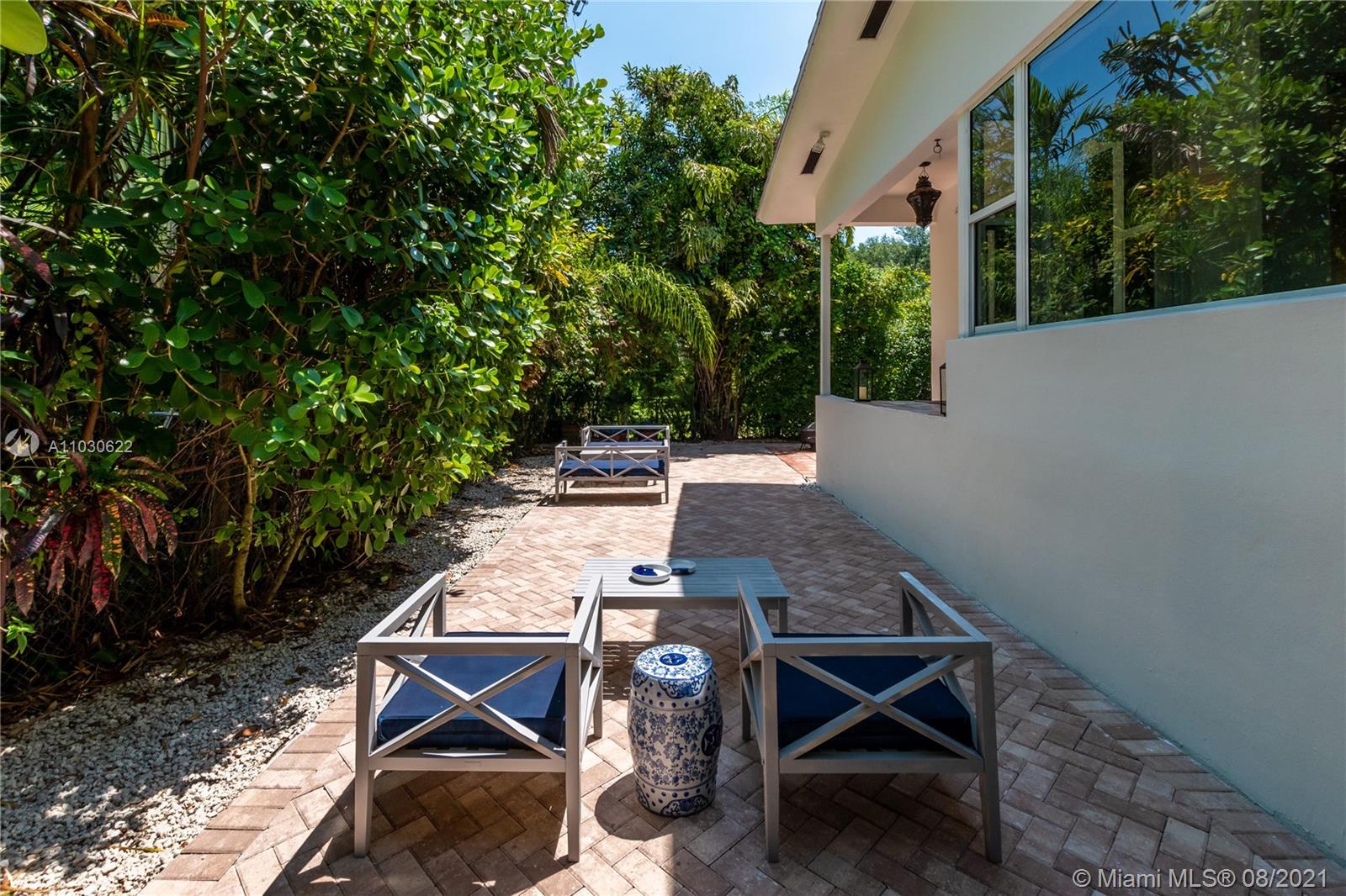 Southeast Gables Gem on Quiet, Tree-Canopied Street. This updated home has a lovely setting in a prime location, centered in a half-moon formed by South Miami, Coral Gables & Coconut Grove. The bi-level layout houses 2 bedrooms + 1 bath on the upper level, w/2 additional bedrooms & 2 baths on the lower level. The open concept creates a space that feels much larger than the floorplan suggests. Sunshine pours thru wall-to-wall & floor-to-ceiling windows. The bright, renovated kitchen w/a breakfast nook gleams w/stainless steel appliances and a crisp, white & aqua color palette. Recessed lighting, pristine light wood & creamy marble floors, a wrought-iron design stairway bannister, and terracotta patio tiles fashion warm decorative touches flowing from the interior to outdoor living spaces.