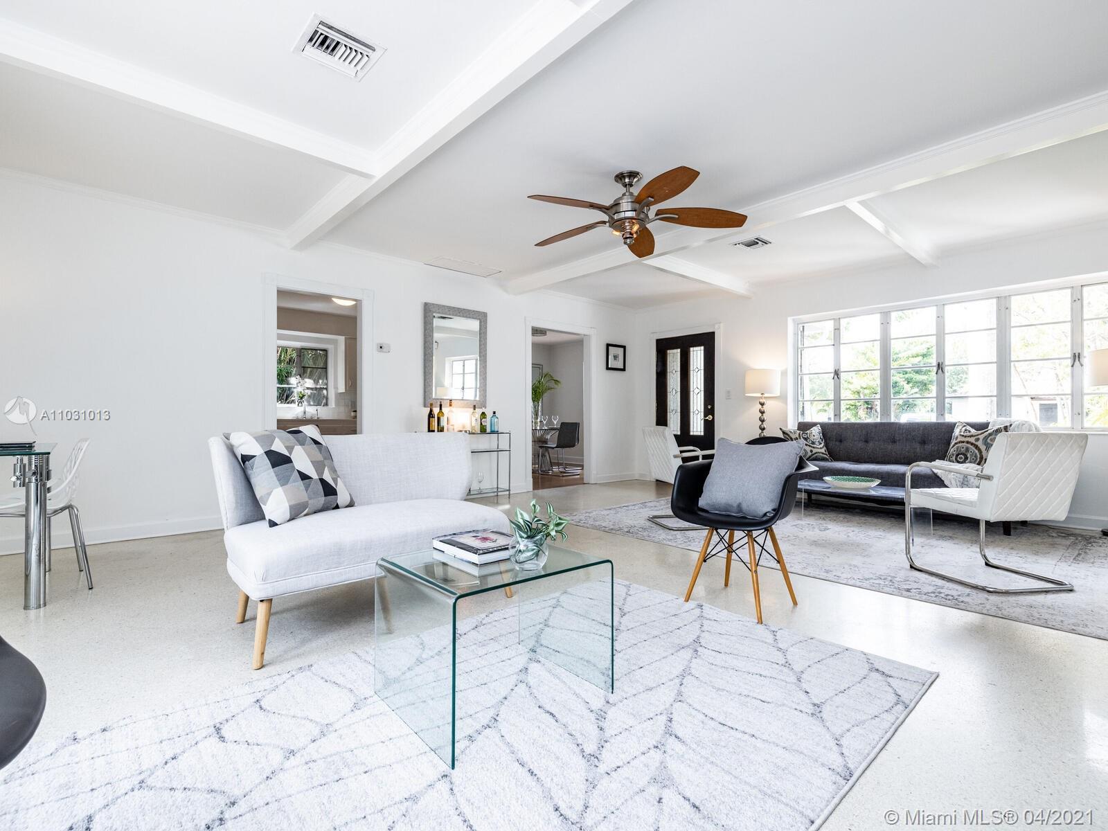 Welcome to Casa Royal Palm! Enjoy bright happy living in this spacious Mid-Century Modern home nestled on a lushly landscaped lot with tons of backyard space to entertain, relax and play! Inside, appreciate wide open living with lots of flexibility to set up how you want to live—including media and office plus a separate dining room and large and well-lit bedrooms. So much potential to make this home your own with a convertible one-car garage, plenty of space to expand and room for a pool. Fire up the barbecue and gather on the massive tiered rear patio where you can spread out among a variety of mature trees including mango, avocado, royal palm and pine. Close to Miami Shores restaurants and retail, yet you’ll feel like you’re in your own private sanctuary, all at an amazing price!