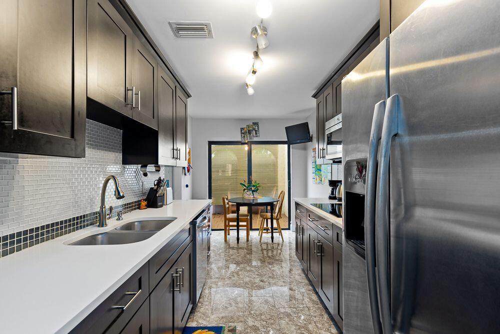 Stunning upgraded 2 Bedroom-2 1/2 Bath Townhome in Boca Lago. This home offers spacious living area with hardwood floors, a large kitchen with quartz countertop, new cabinets, stove and microwave. New washer and dryer. IMPACT doors and windows. Relaxing screen patio overlooking a quite large green area. On the second floor find a huge master bedroom with 3 closets, balcony and Second bedroom with in-suite bathroom. Enjoy this ALL AGES GOLF COMMUNITY without mandatory membership located close to restaurants, shopping areas and major roads! Cable and Internet included in maintenance fee.