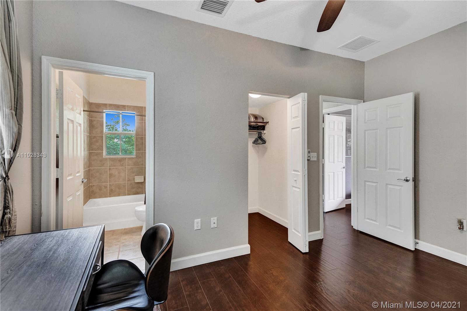 This 2 Bedroom and 2.5 baths townhouse has a 2 car garage and is located in a Gated community. Wood floors throughout both levels and immaculate condition. 2 Separate garage doors and laundry room on ground floor. Main Living area is on the second floor. Guest bath & small balcony for grilling. Master Bedroom has private balcony and substantial walk-in closet. Impact glass throughout. This Corner unit has more light and is conveniently located near pool, front entrance and guest parking. Close to the Ft. Laud Int'l Airport, Highways, Restaurants, shopping, Beaches and more. NEW Assoc. rules require 700+ CREDIT SCORE required. Rentals allowed after owning for two years with a 3 month minimum. 2 Pets allowed up to 50lbs are welcome non-vicious breeds for owners.