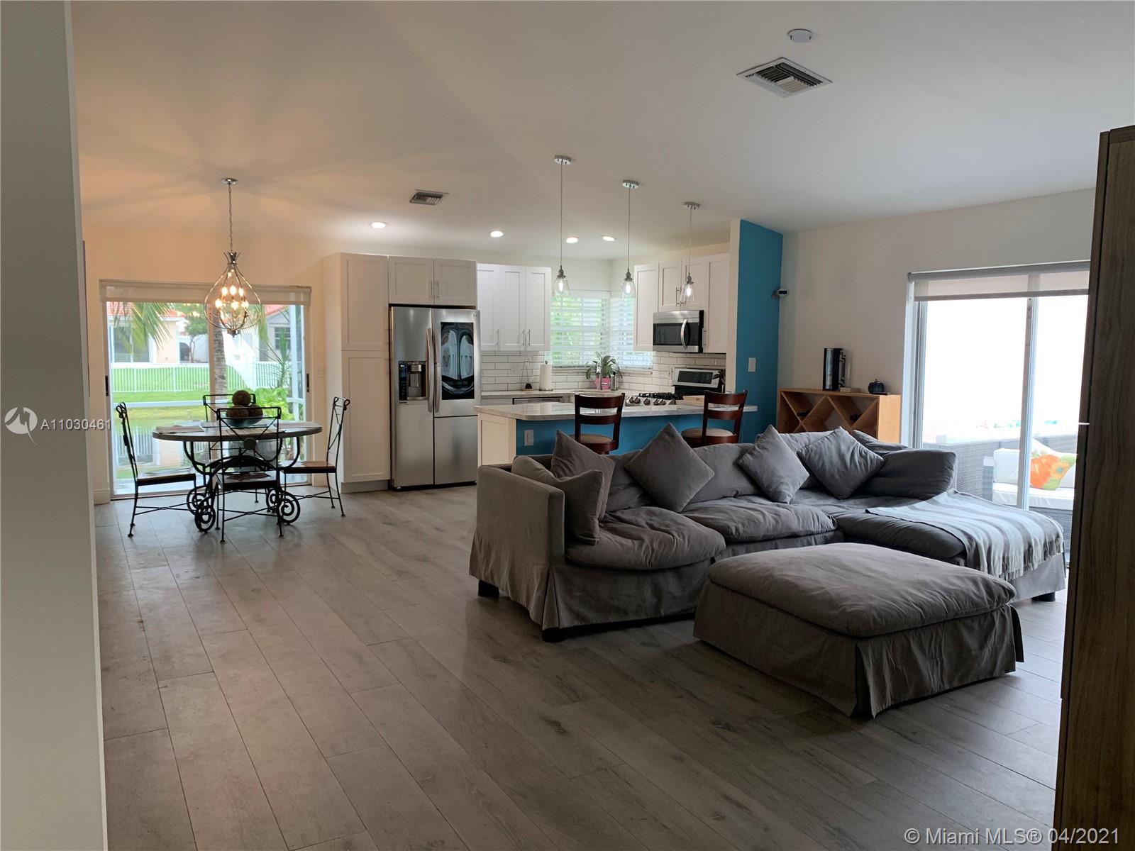 HIGH IN DEMAND! Waterfront! This beautiful totally remodeled contemporary 3 bedroom 2 bath single family home shows just like a model!!! Open floorplan with vaulted ceilings!! Quartz countertops in kitchen and main bathroom! high end modern LG appliances. subway tiles in bathrooms. Gorgeous tile floors throughout! Smooth ceilings, interior door wood casing! Modern roller shades in main bedroom and family room!!Screened in back patio as well as a side patio connected to the family room makes this home perfect for entertaining! Enjoy the tropical oasis backyard with swaying coconut trees!! Location could not be any better!!! Just down the street from the Sawgrass Mall. Minutes from expressways 595 and I75 to take you anywhere you need to go!!! Hurry this one wont last!!!