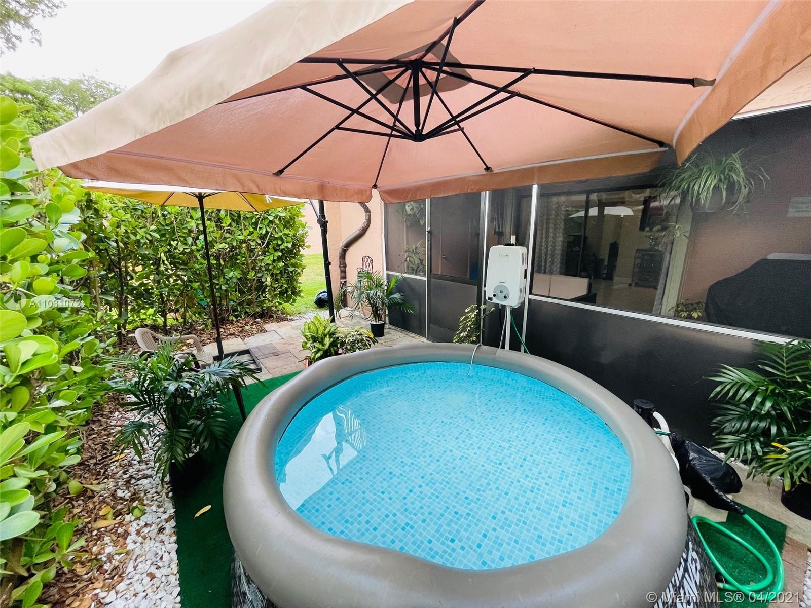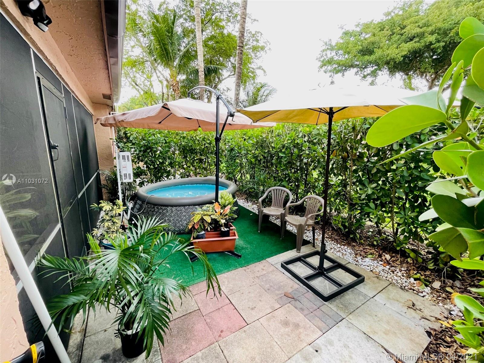Beautiful 2 bedroom, 2.5 bath private corner townhome in great Davie location near restaurants, major highways and university/colleges. Largest 2/2.5 unit in Valencia and features spacious rooms with walk-in closets. The master bedroom french doors lead to a second floor patio area. Unit is steps away from the pool and playground. Back private patio includes small heated pool, screened in area and laundry room. Large spacious kitchen with beautiful, countertops, cabinets and stainless steel appliances.