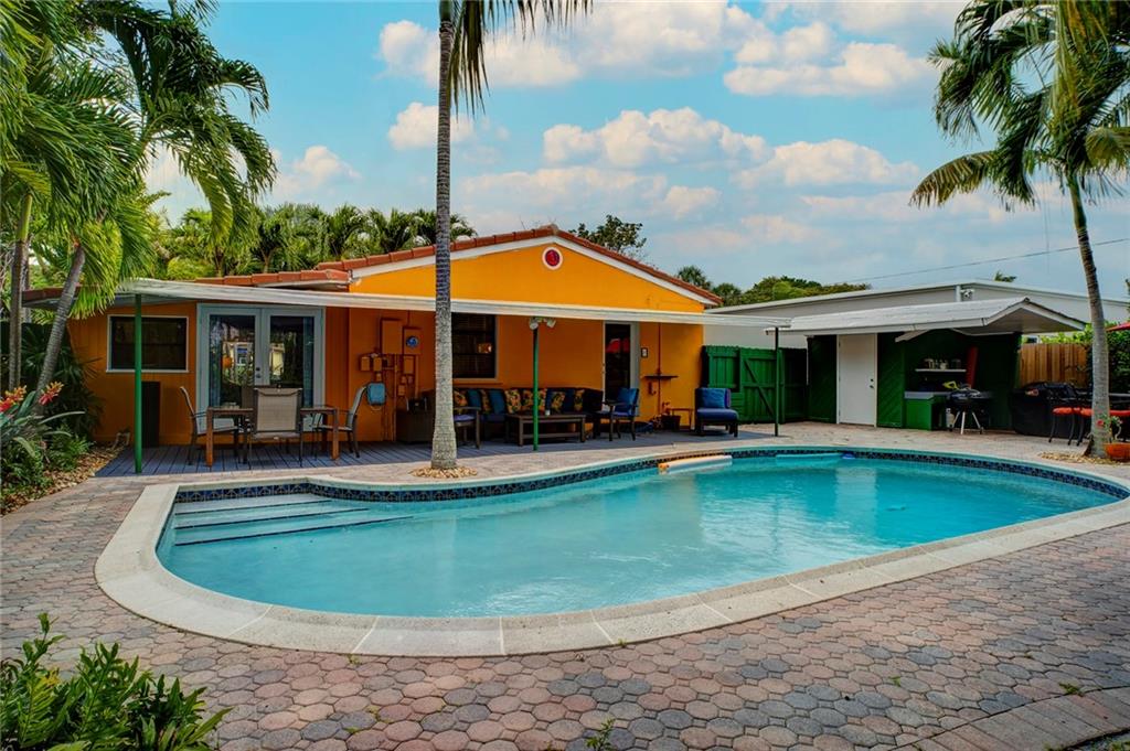 WELCOME TO THE MANGO BUNGALOW!! 3 BEDROOMS ~ 1 BATHROOM POOL HOME LOCATED IN DESIRABLE POINSETTIA HEIGHTS! LOTS OF UPDATES WITH A MID CENTURY VIBE! SLEEK UPDATED KITCHEN AND BATHROOM! TV ROOM PLUS ADDITIONAL SITTING ROOM! TILE FLOORS THROUGHOUT! TROPICAL RESORT LIKE FENCED IN YARD WITH LUSH LANDSCAPING AND FREEFORM HEATED POOL! SOME UPDATES INCLUDE - NEW ROOF (2021) - NEW AC (2020) - NEW POOL HEATER (2020) - NEWER WINDOWS (NONE ARE IMPACT, BUT THERE ARE SHUTTERS FOR EVERYTHING). THIS IS TRULY A MUST SEE!