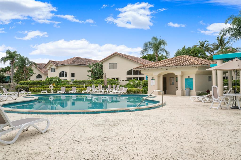 This is a well maintained and updated home located in Broken Sound Country Club. 4 beds ( 4th used as den ) and 3 full baths. 2 baths were recently renovated. Black and white Kitchen with spacious breakfast area. Large great room with LR and DR has 25 Ft Ceilings. ALL NEW ROOF, PAINTING, LIGHTING,AC,GARAGE DOOR, APPLIANCES AND WATER HEATER. It is a 2 level home with 1 attached wall. HOA takes care of everything on the outside. There is a large screened in patio with a hot tub-pump 1 year old.Lovely landscaping. Great family home.Master is UP.HOME IS PRICED TO SELL! WILL NOT LAST.