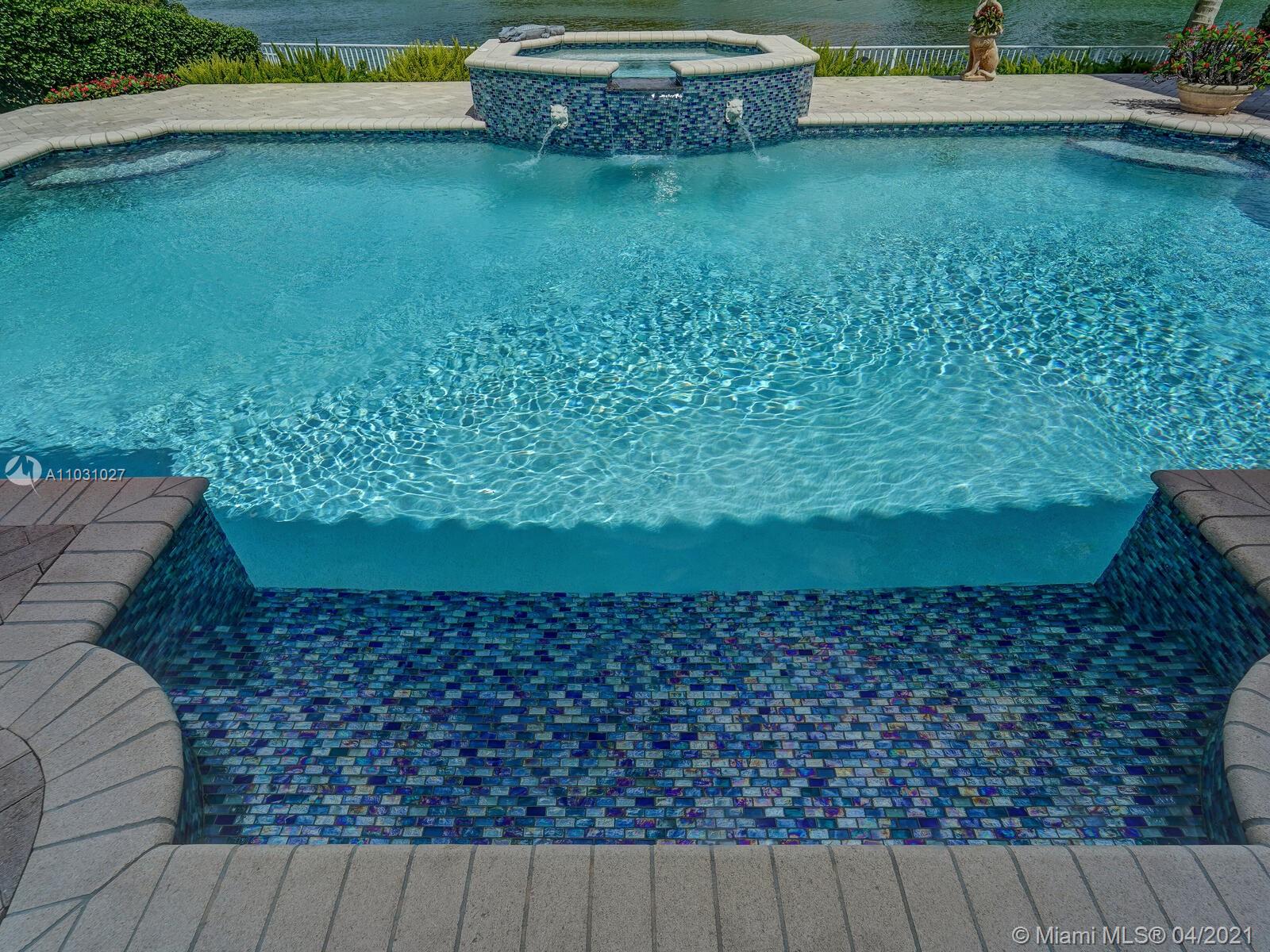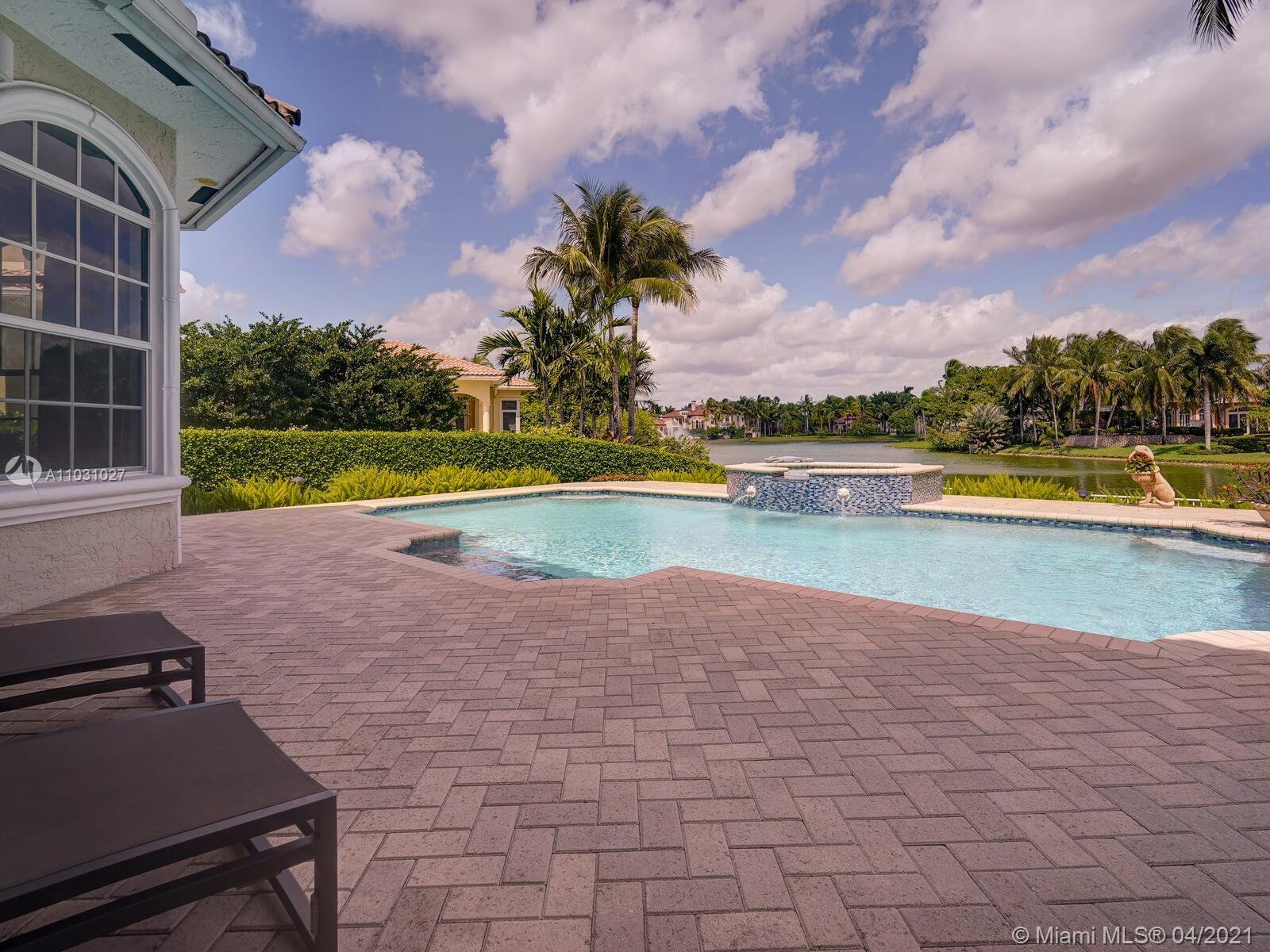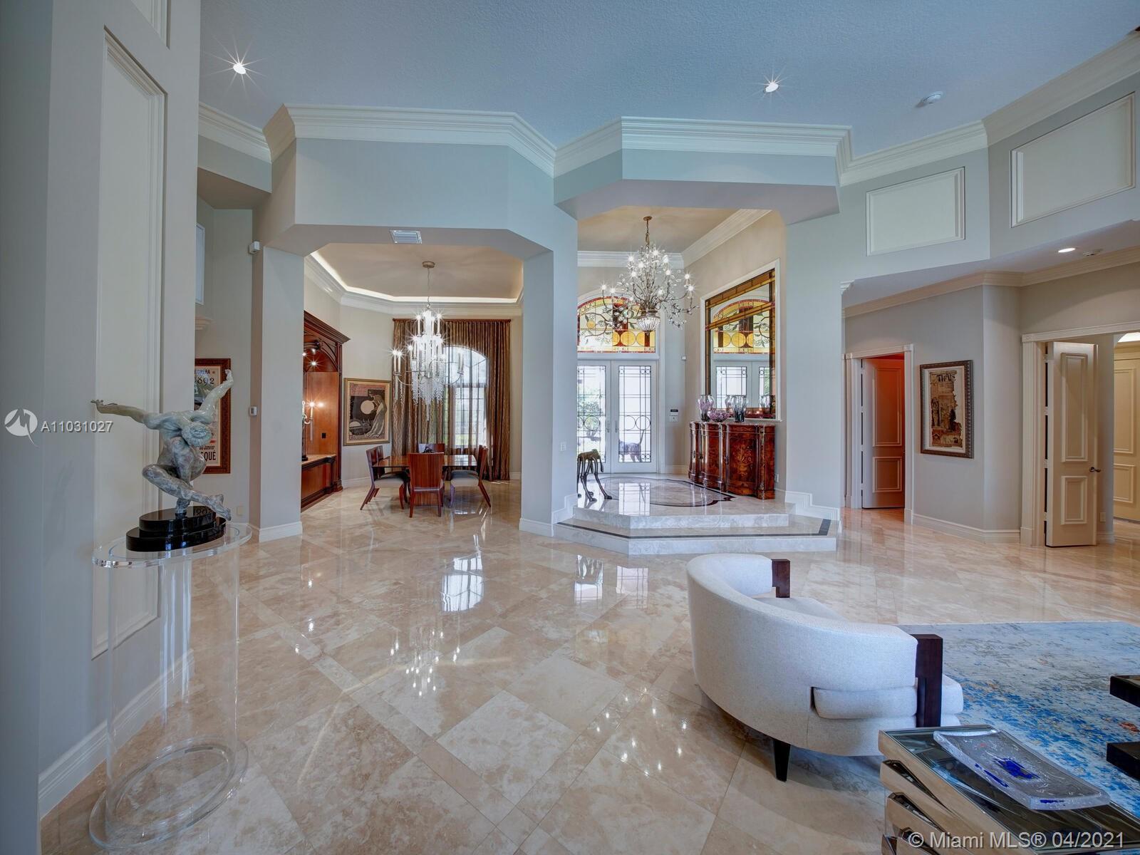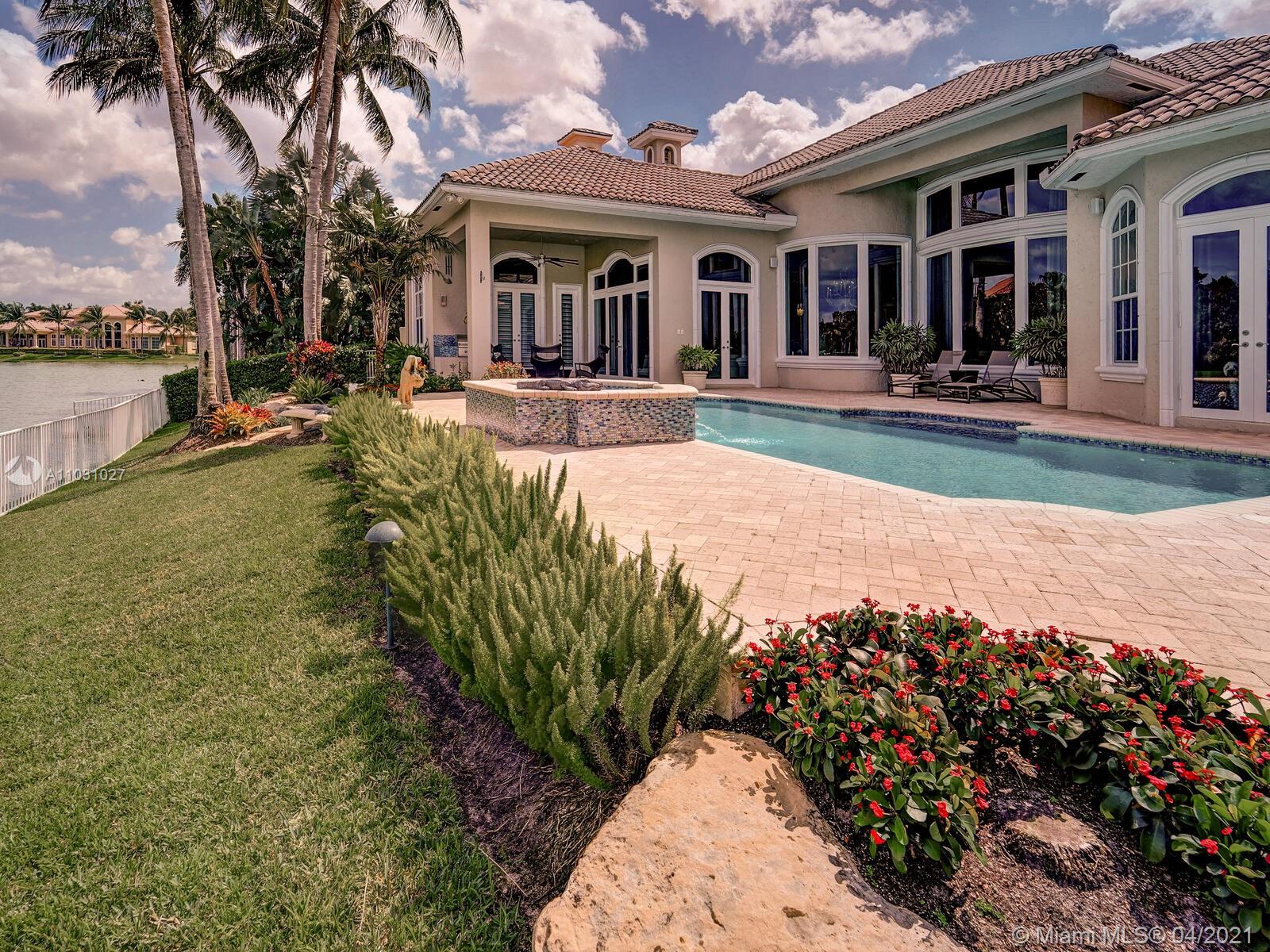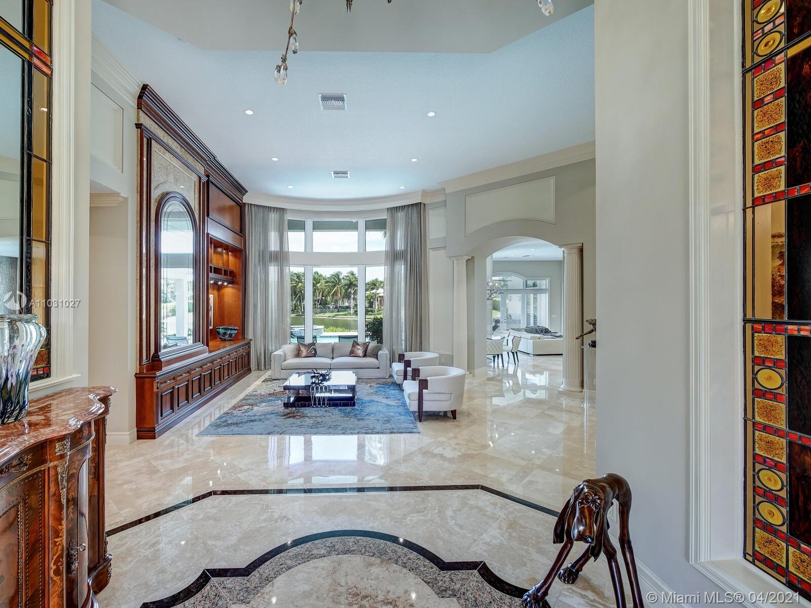 Discover a new kind of luxury brought together by the best of design. Beautiful 4 bds, 3.5 bth + office and 3 CG. Full impact glass. Remodeled kitchen w/ double stacked Italian olive wood cabinetry ,new quartzite counters, island and new appliances. High volume ceilings 16', real wood burning fireplace. The main suite features a completely separate lounge with huge double closets and built-in + a marble spa bath. Custom built ins are featured in the dining room, living room and complete custom library. Marble floors in the main areas, master bedroom and office. Wood flooring in all other bedrooms. Gorgeous recently new diamond bright heated pool and spa. Large covered lanai w/ built in summer kitchen. All designed lighting fixtures by Fine Arts. This is a special custom home.