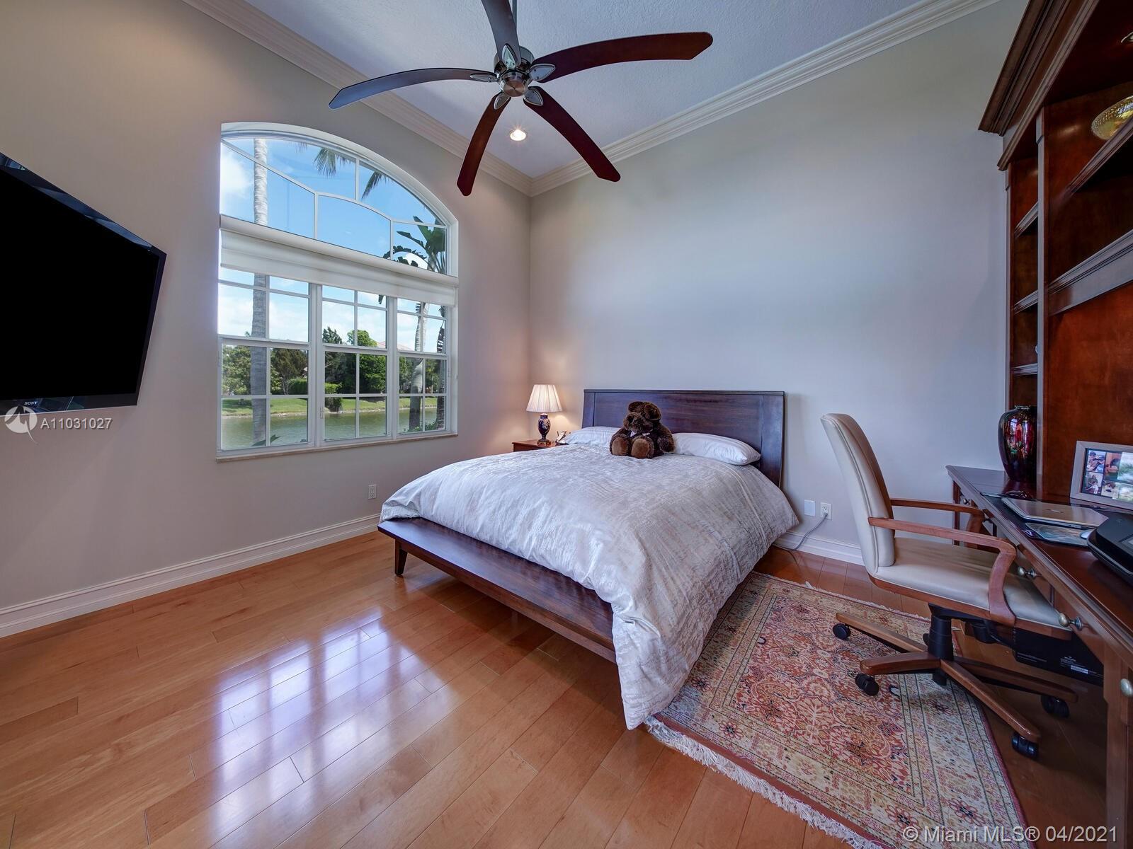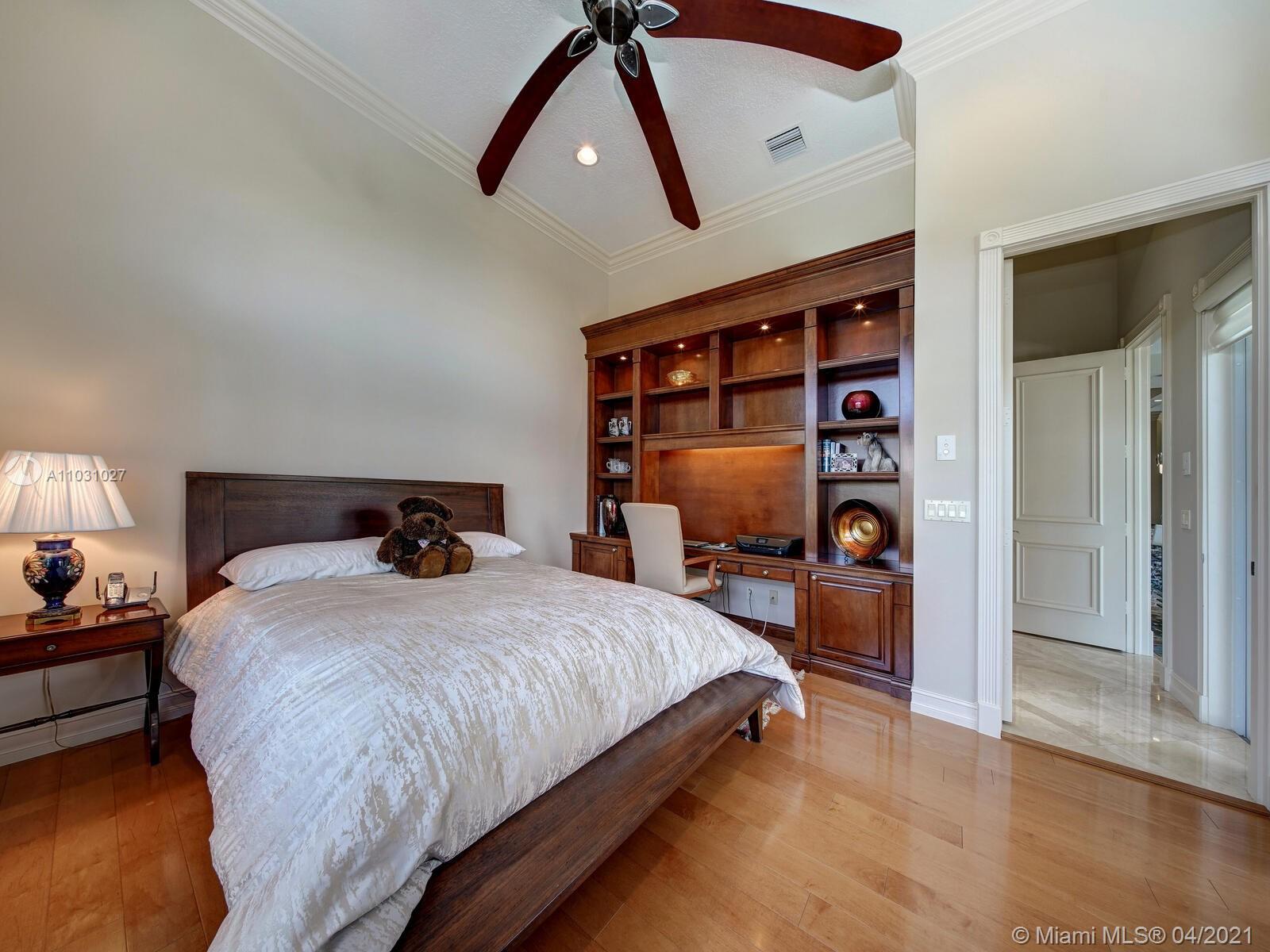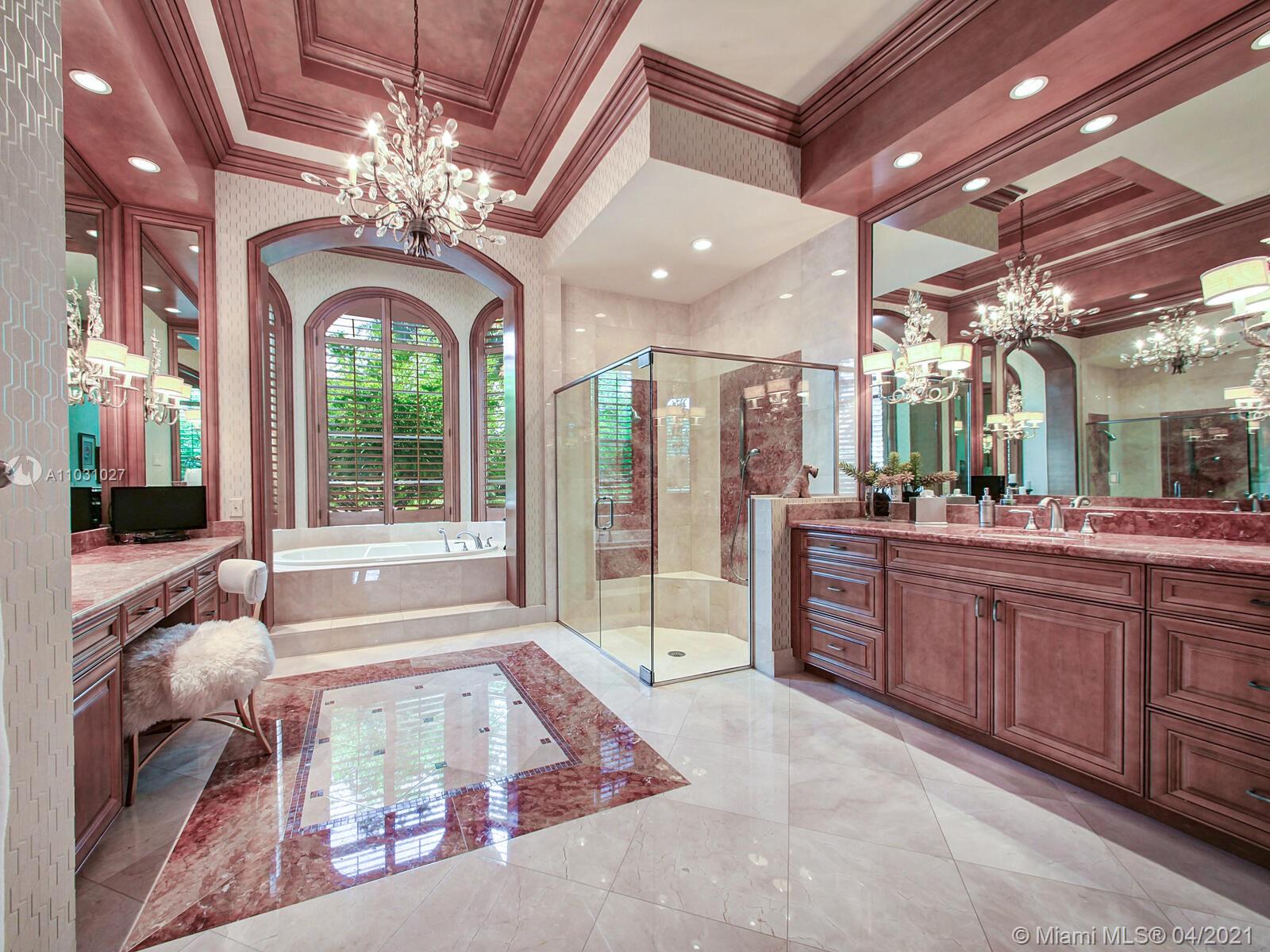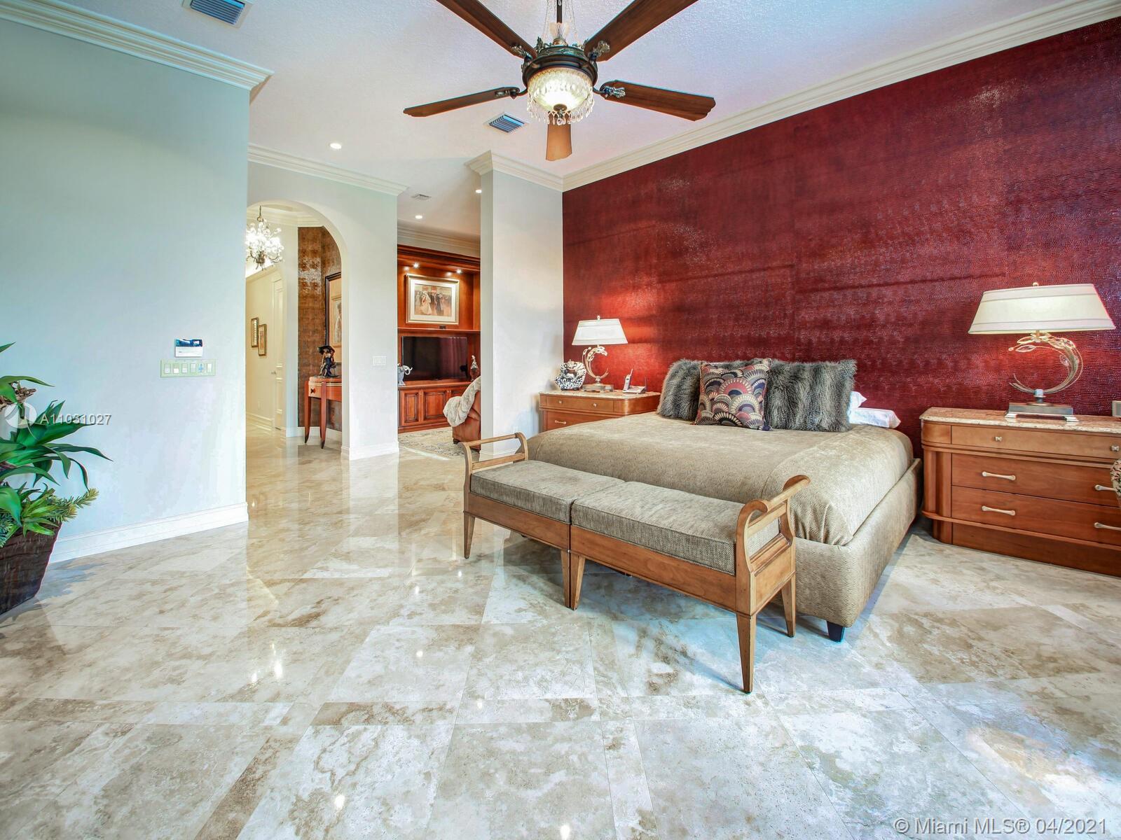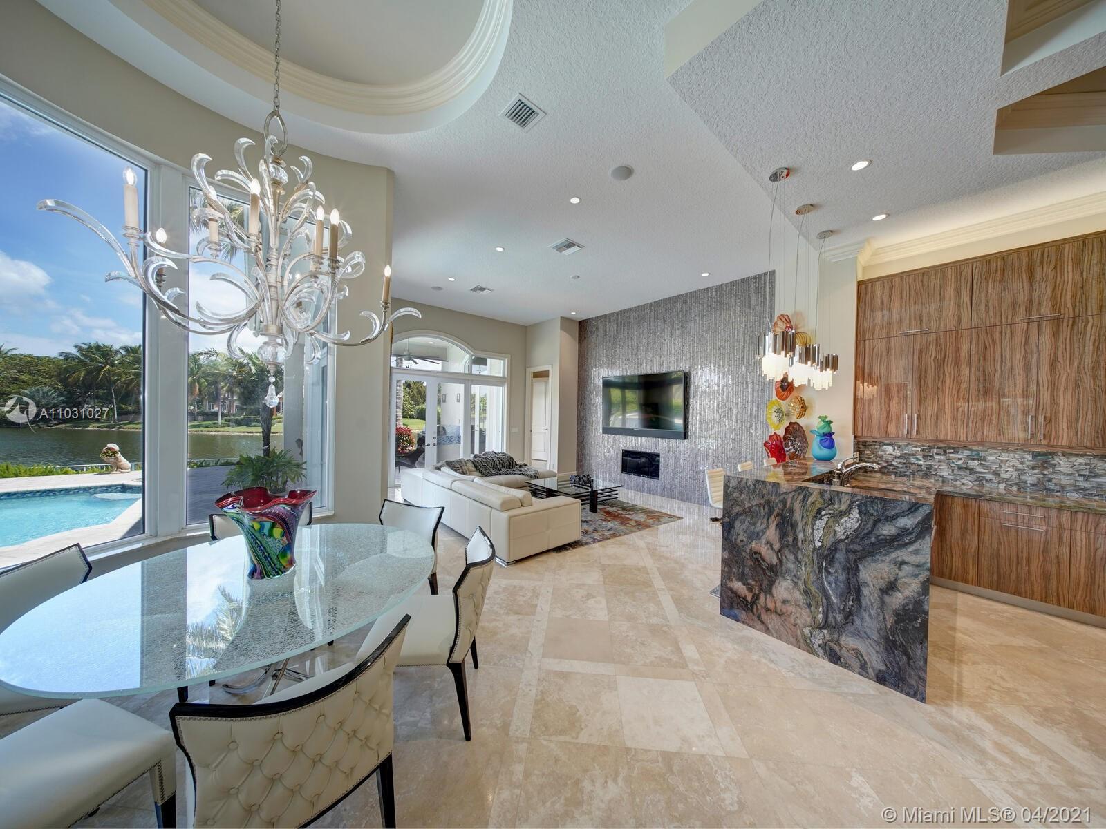 Discover a new kind of luxury brought together by the best of design. Beautiful 4 bds, 3.5 bth + office and 3 CG. Full impact glass. Remodeled kitchen w/ double stacked Italian olive wood cabinetry ,new quartzite counters, island and new appliances. High volume ceilings 16', real wood burning fireplace. The main suite features a completely separate lounge with huge double closets and built-in + a marble spa bath. Custom built ins are featured in the dining room, living room and complete custom library. Marble floors in the main areas, master bedroom and office. Wood flooring in all other bedrooms. Gorgeous recently new diamond bright heated pool and spa. Large covered lanai w/ built in summer kitchen. All designed lighting fixtures by Fine Arts. This is a special custom home.