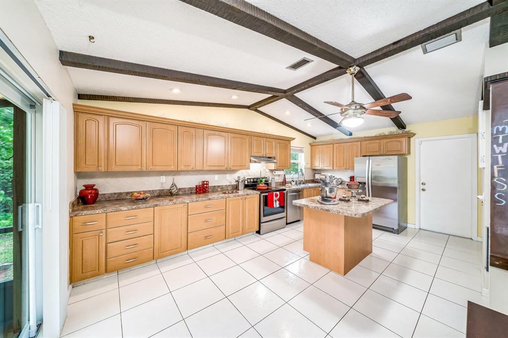 No more showings! Seller is in recite of multiple offers & beyond & he said no more showings. WOW!!! Almost a Half-Acre private lot w/double gate wide entry to the back yard, home features 3 bedrooms, 2 bath, 2 car garage w/a huge pool, fenced in enormous yard, + covered/screened in patio w/NO HOA! Brand new (2017) Impact windows & doors throughout! Open & spacious w/huge vaulted/cathedral ceilings w/beams in living-room & kitchen. Updated gourmet kitchen w/new all stainless matching whirlpool appliances, large center island, sunny breakfast area, lots of counter space/many cabinets, some w/pull out drawers, large pantry, + tile backsplash. Tile flooring in the living areas + patio & wood laminate flooring in all 3 bedrooms/NO carpet. All bedrooms have walk in closets.