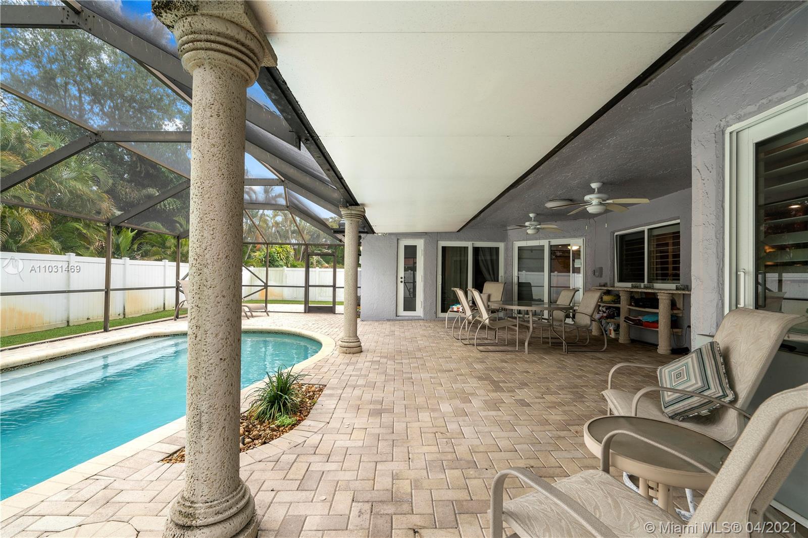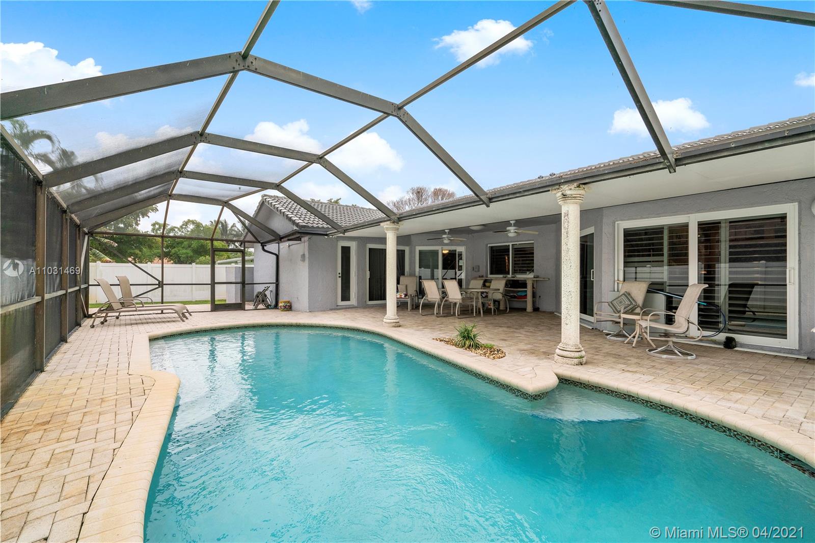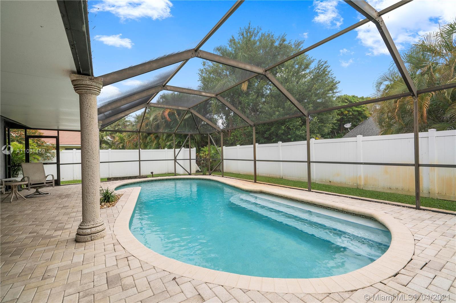 This sought after 4BR/2BA pool home in beautiful Jacaranda Lakes has been loved and well maintained by same family since it was built. Roof is only 11years old, all IMPACT windows and sliding glass doors, granite countertops, open family room and kitchen area, and large living room/dining room. Gorgeous plantation shutters across back of home. Newly fenced backyard with large screened in pool, including child safety gate & dusk to dawn lighting surrounding the entire house. Two car garage, tile and laminate flooring, laundry room inside the house, and great neighborhood. Located on a quiet street. Great location close to shopping, restaurants, hospitals, parks and all of the major highways. HOA is less than $500 a year.
